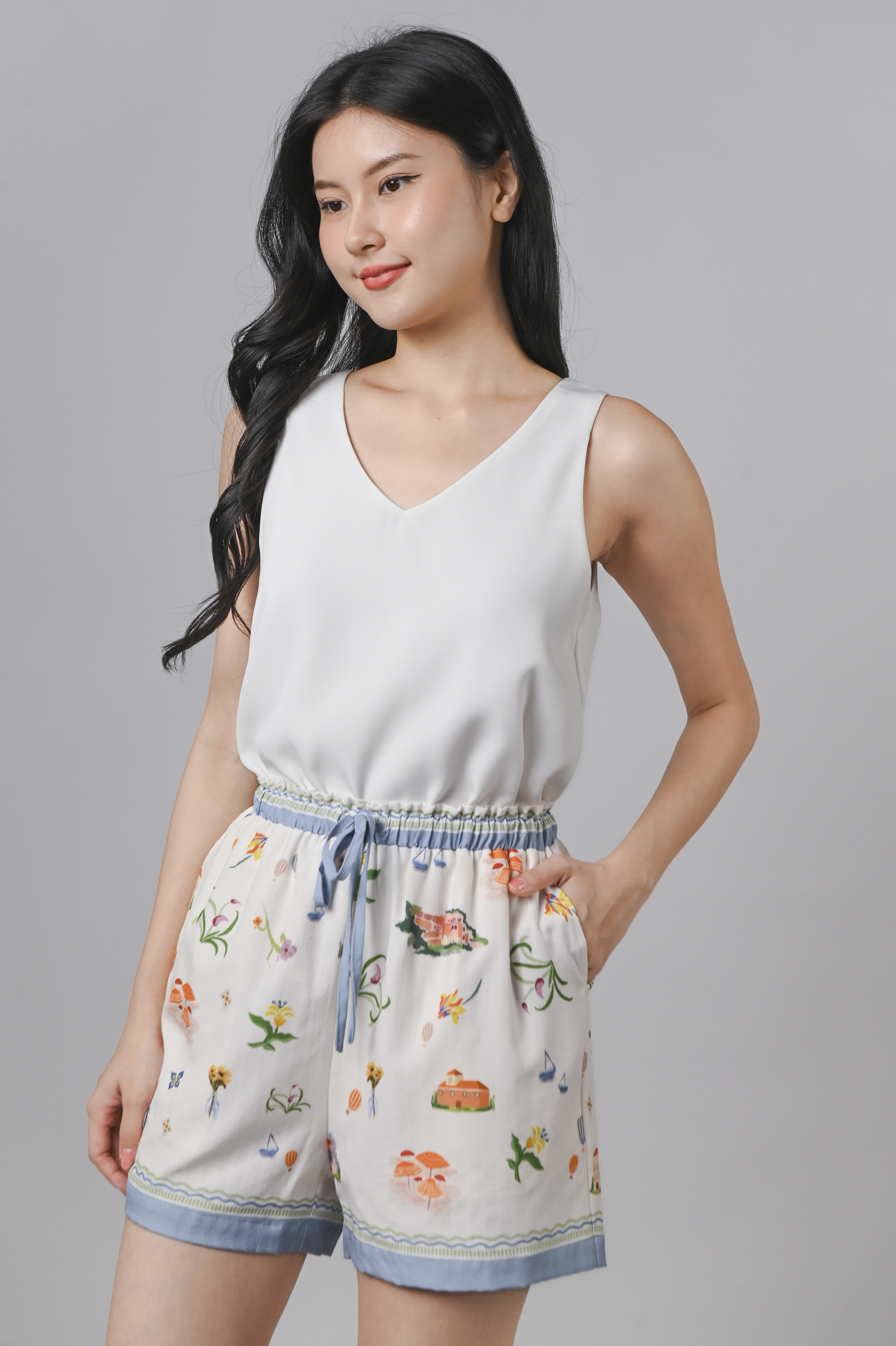 - Elastic waist with drawstring
