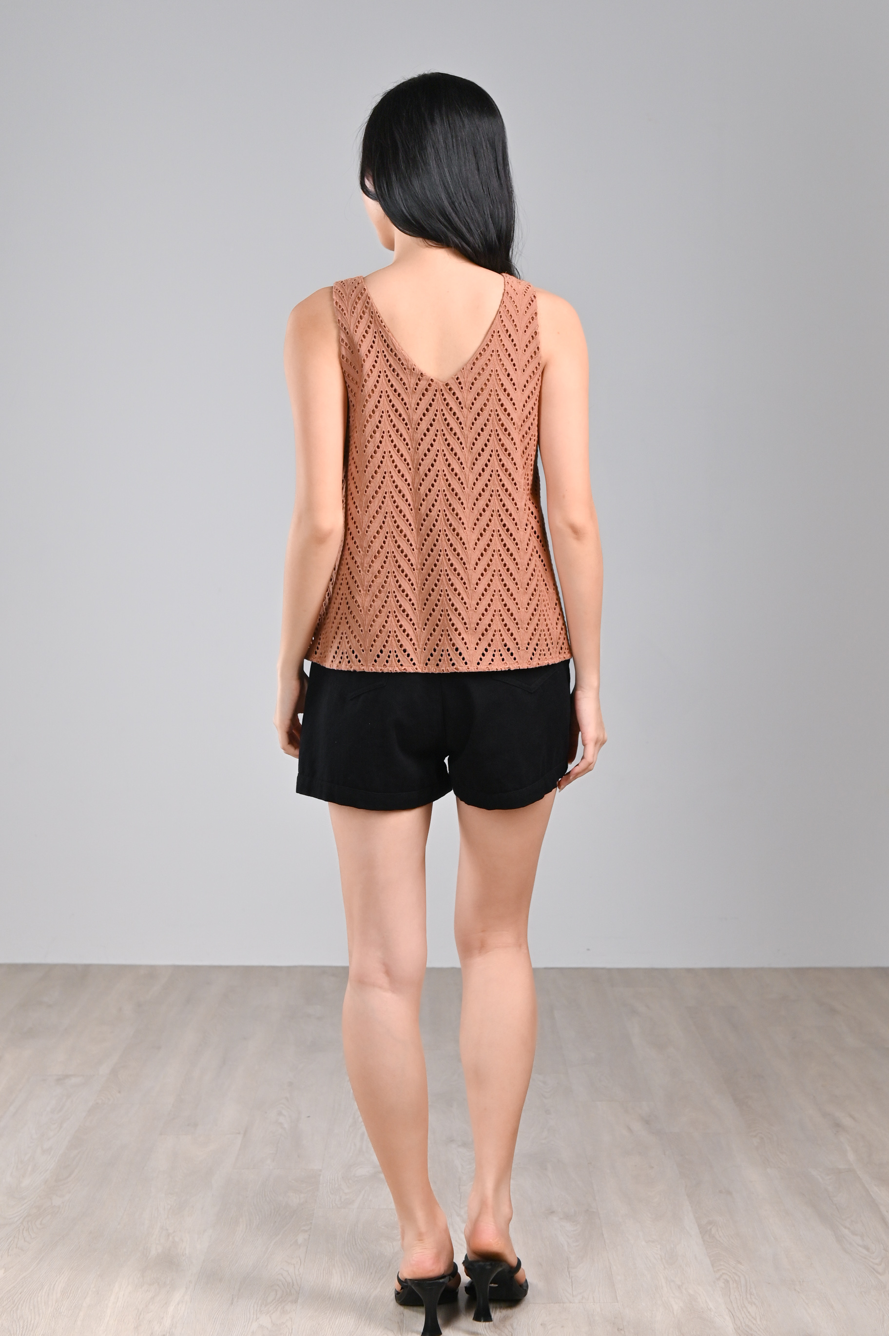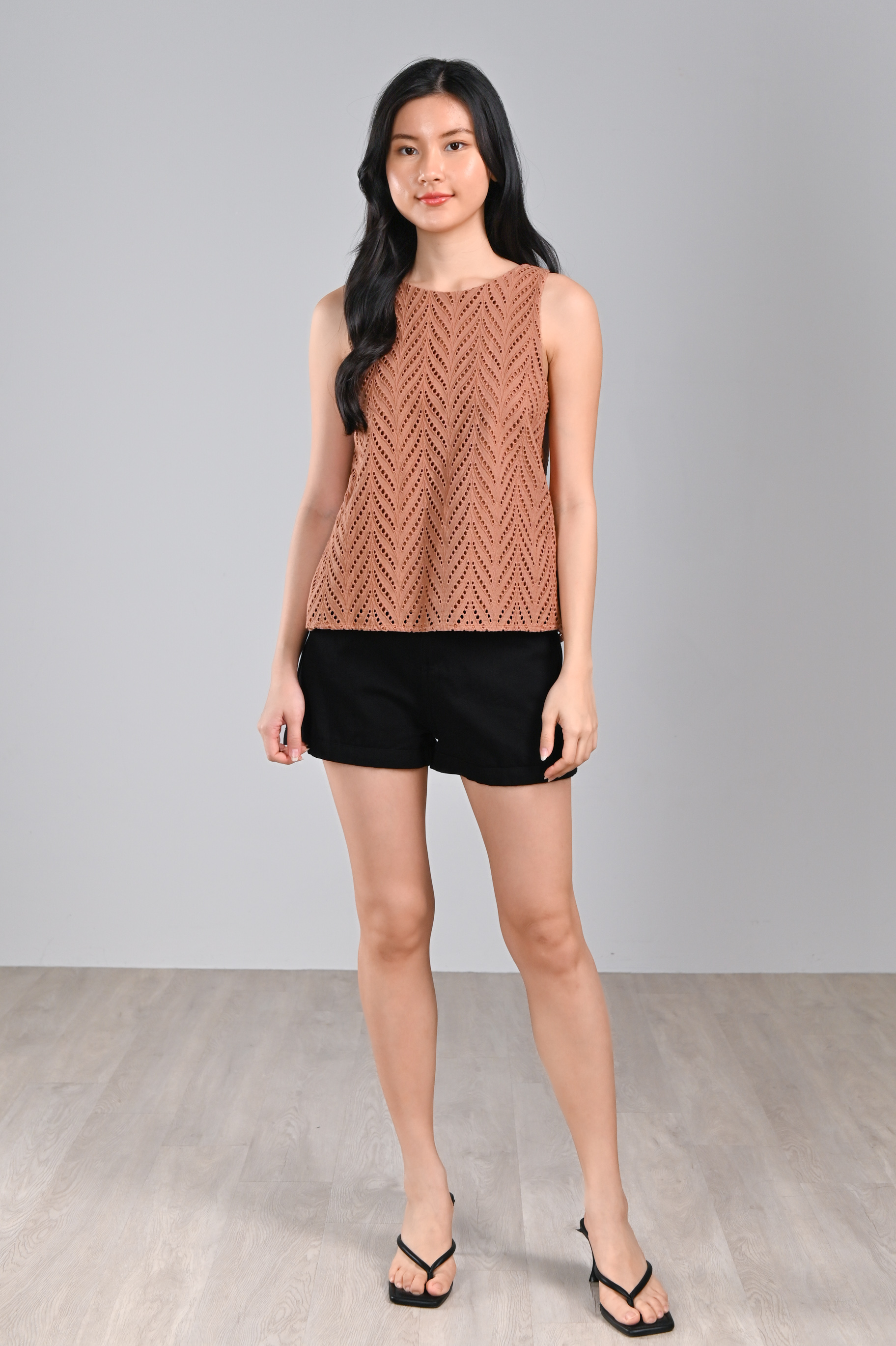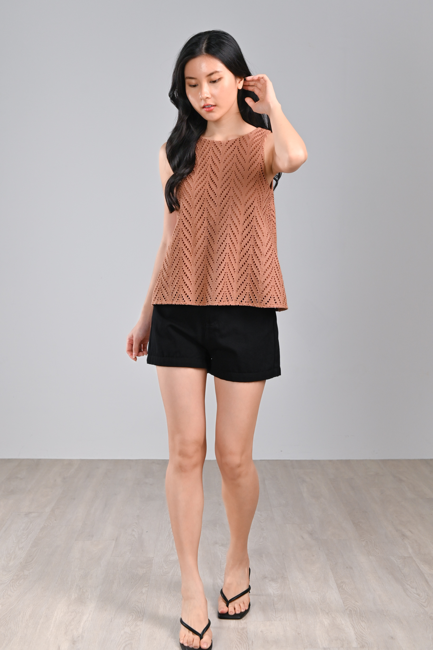 CATHIE EYELET TWO-WAY TOP IN NUDE-BROWN