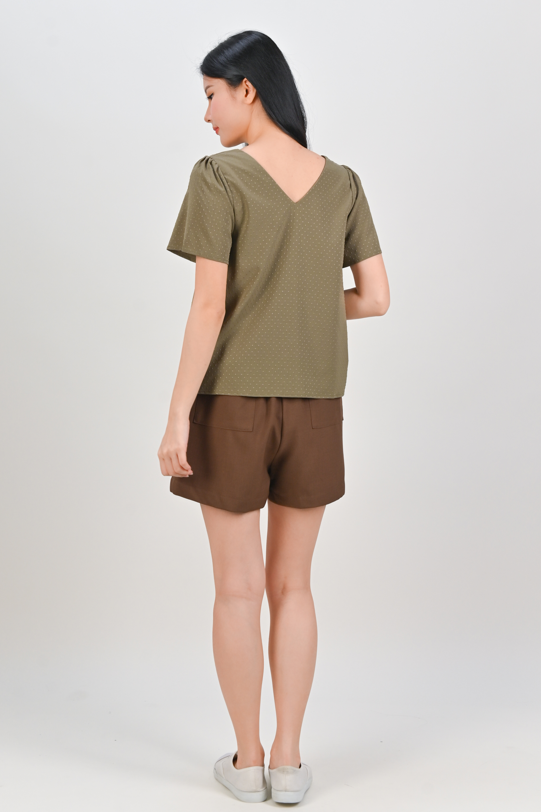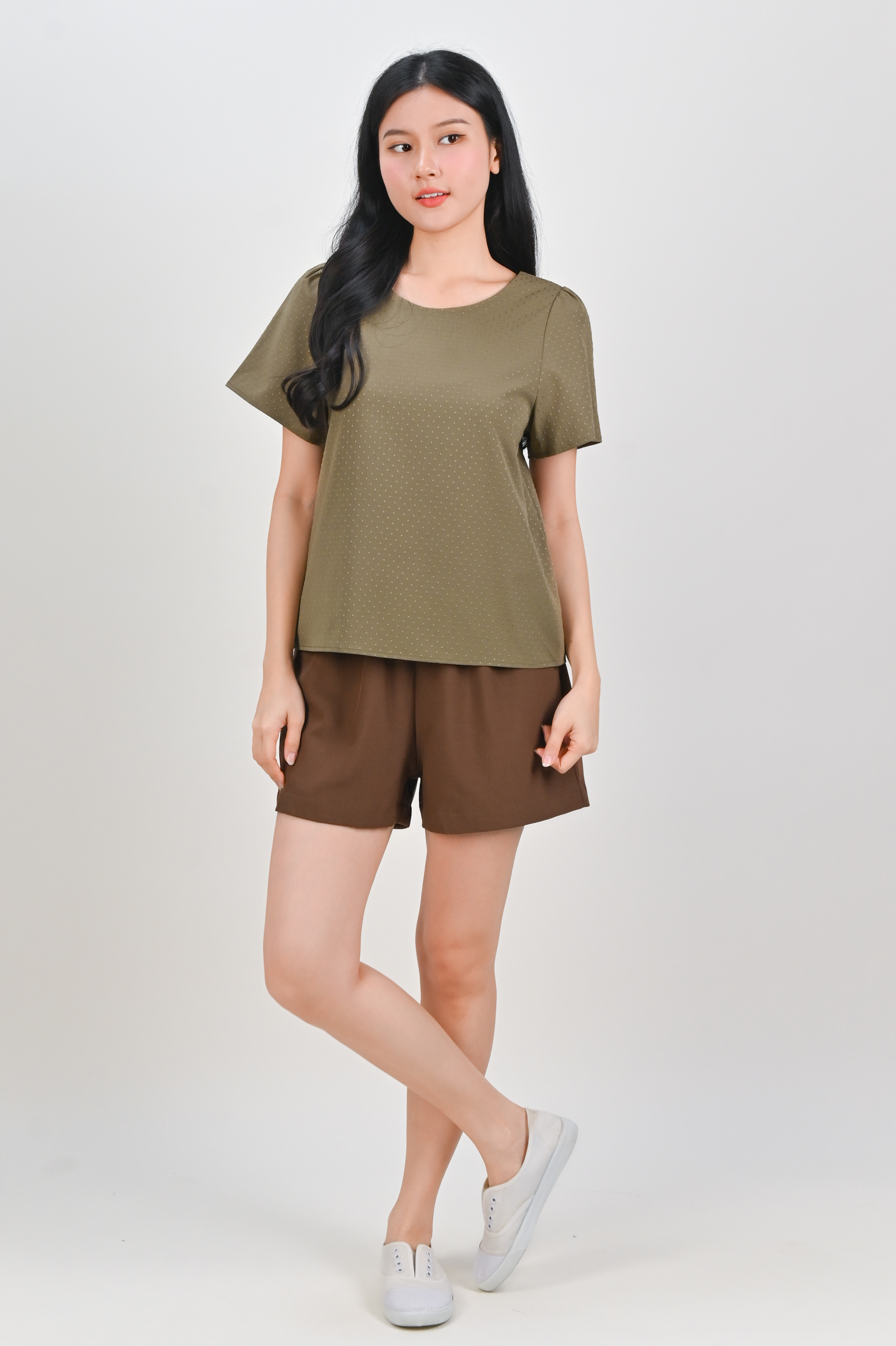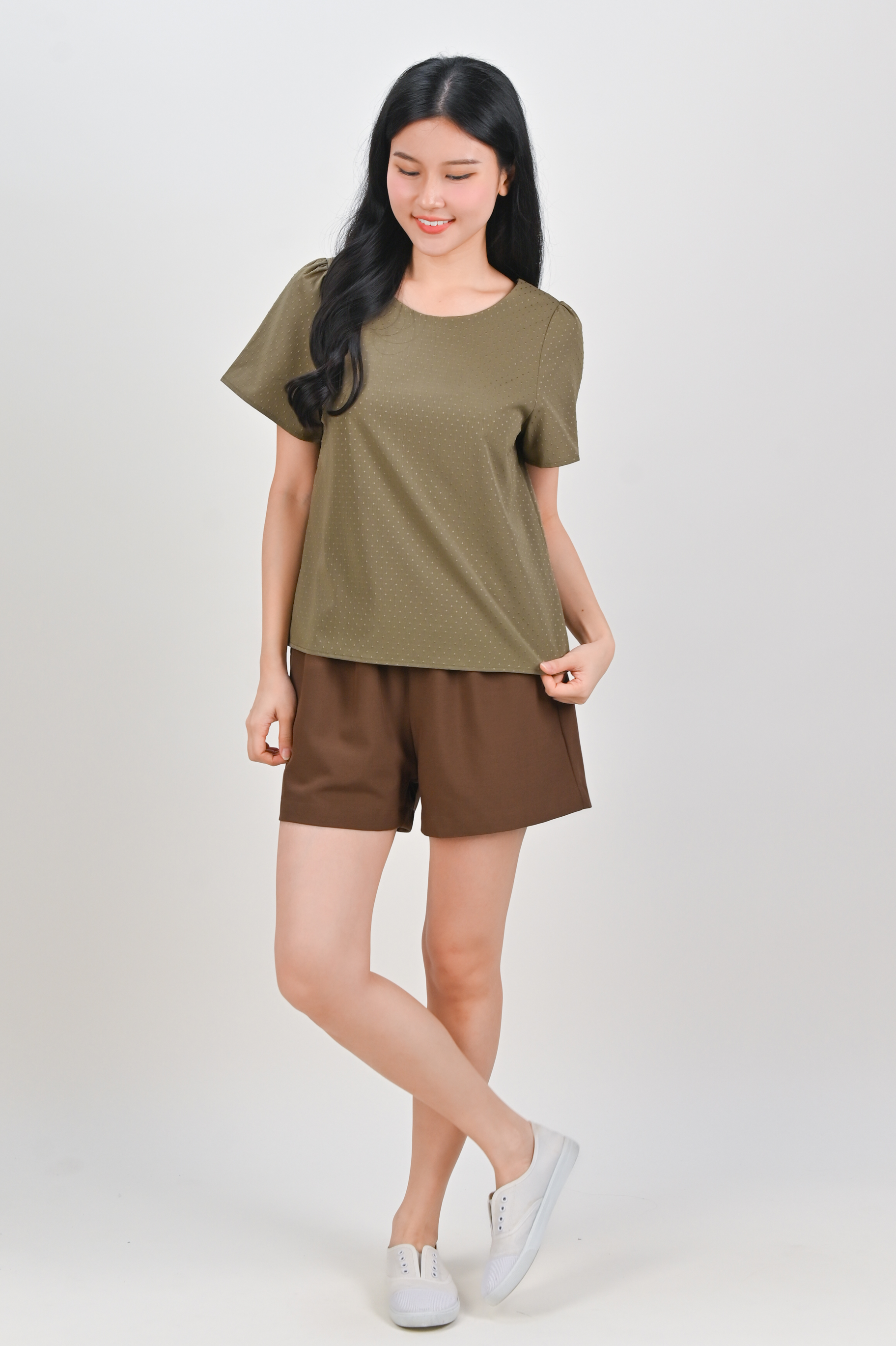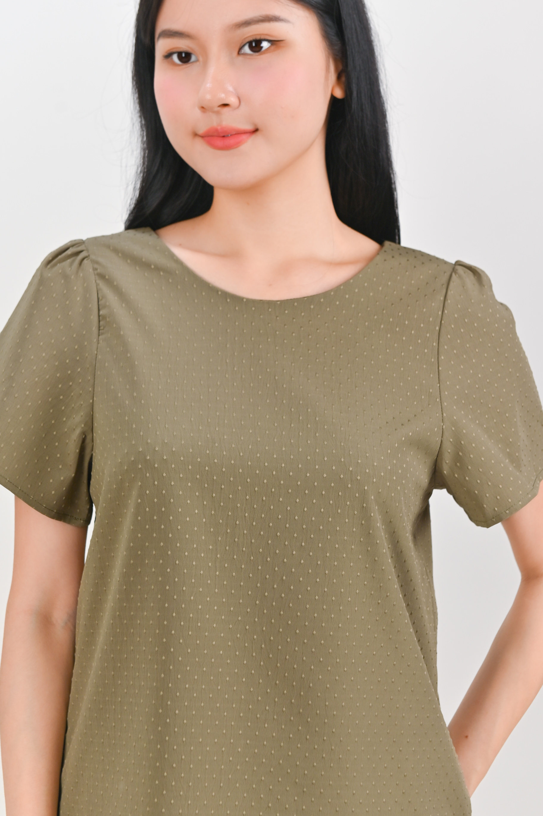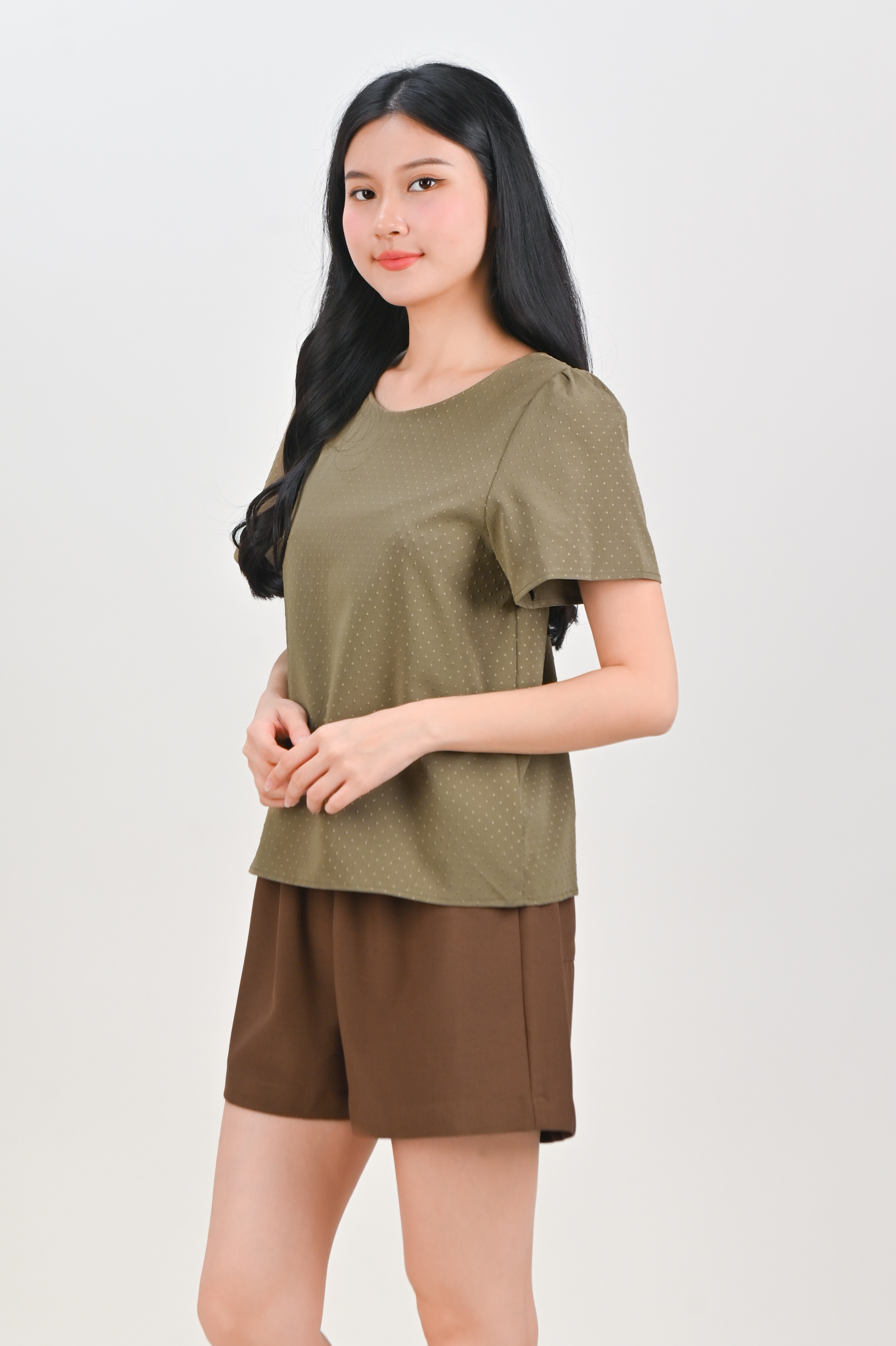 CIELA DOTTY SLEEVED TOP IN MATCHA