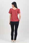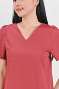CIELA DOTTY SLEEVED TOP IN STRAWBERRY