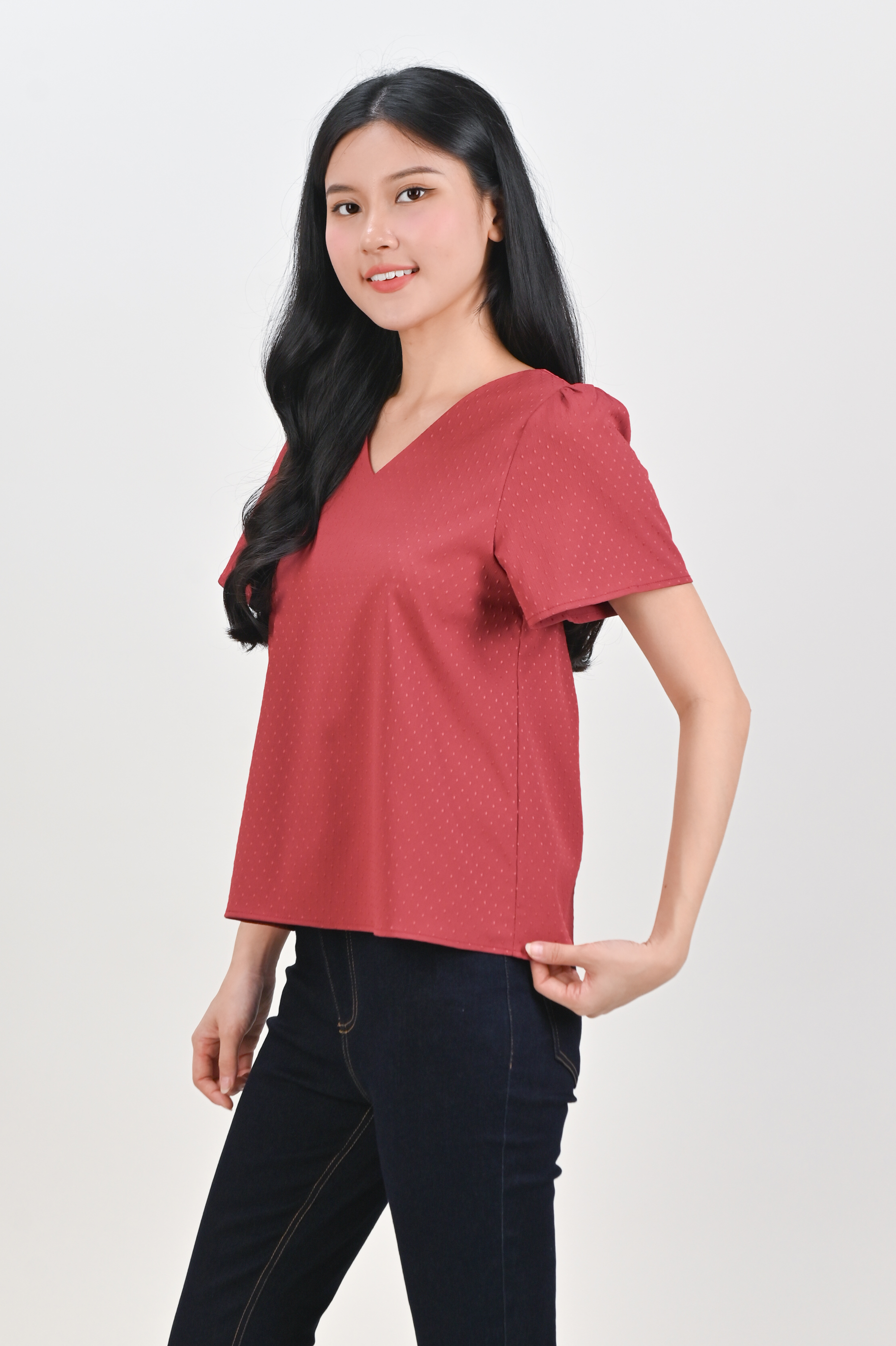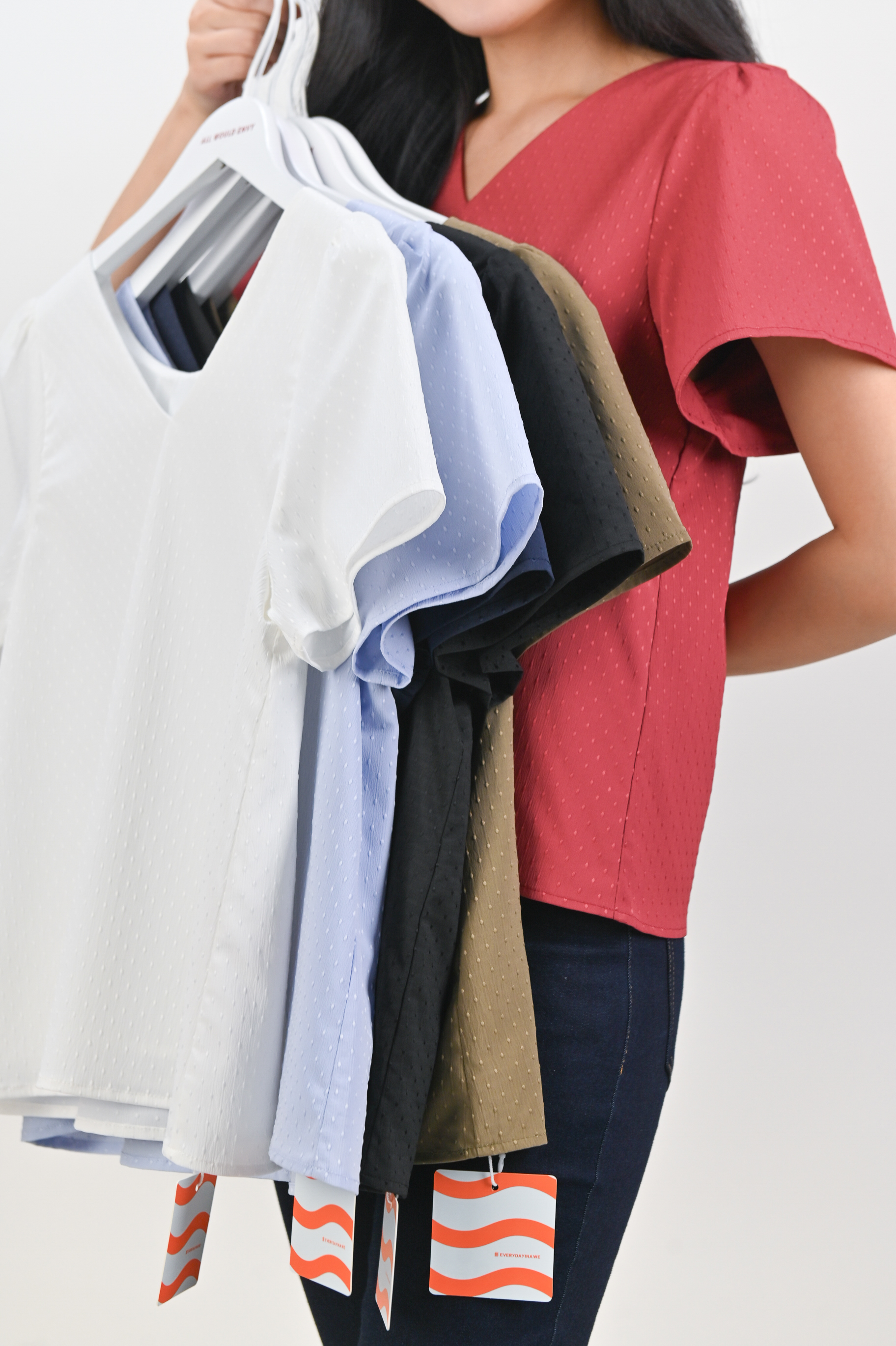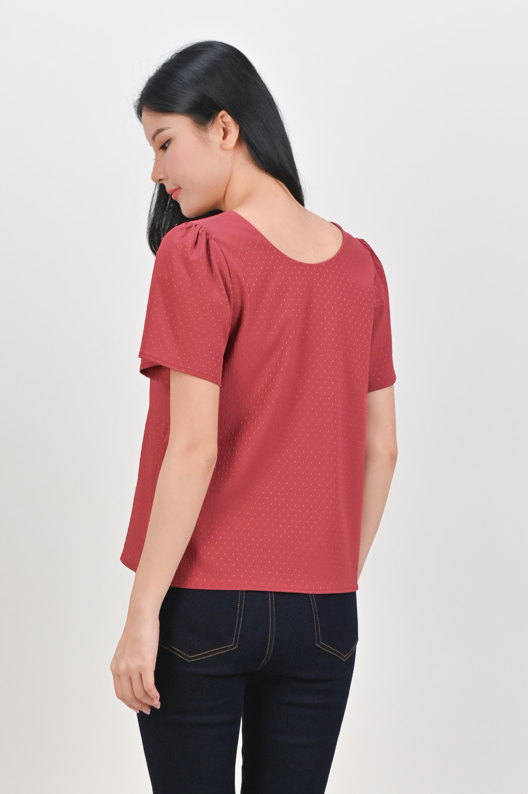 Actual stocks may varyDainty dots and all the colours your heart could want 🌸 Introducing your new fave elevated basic - our Ciela Dotted Sleeved Top is light, comfy, and ready to match with literally everything!