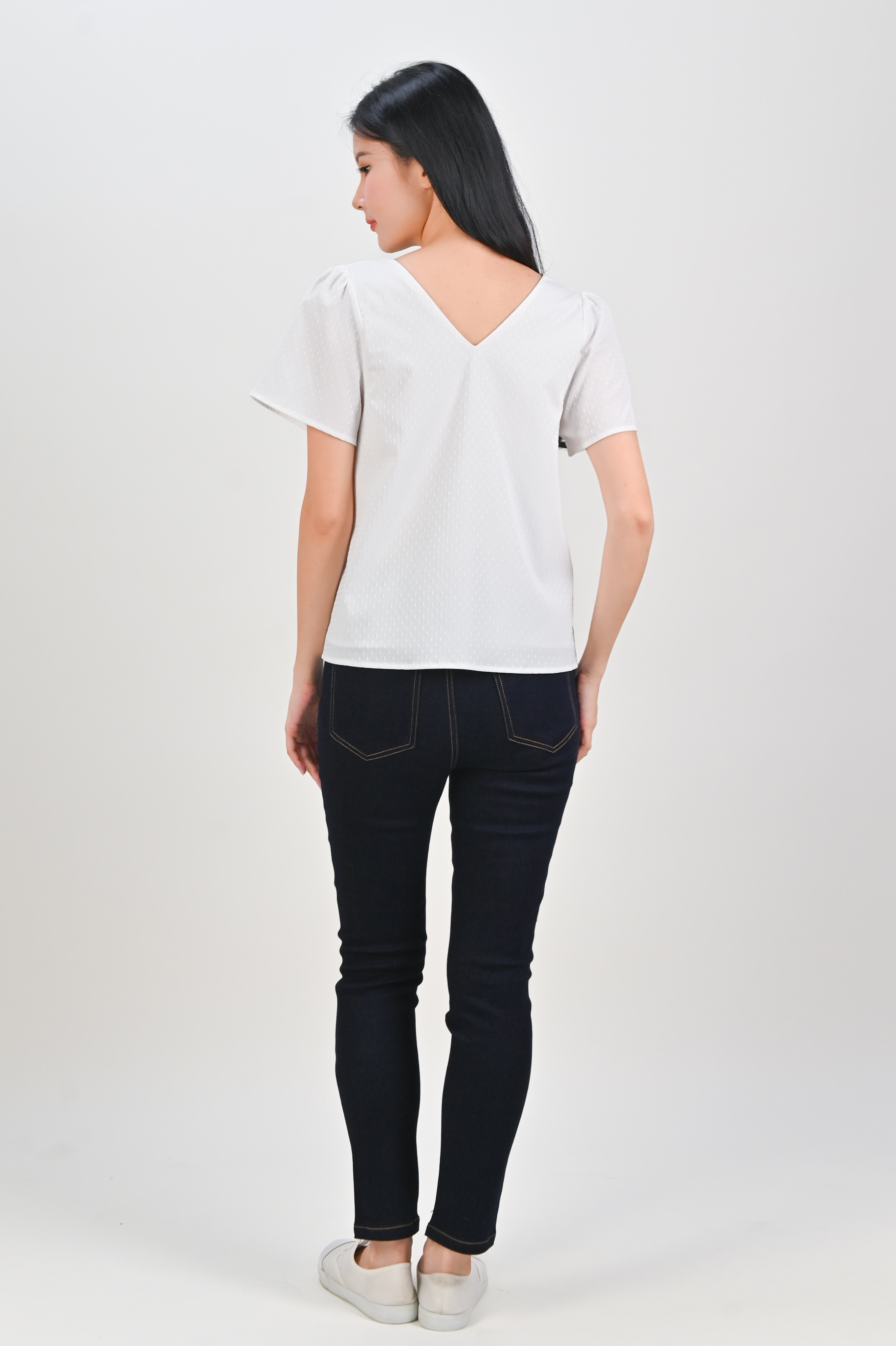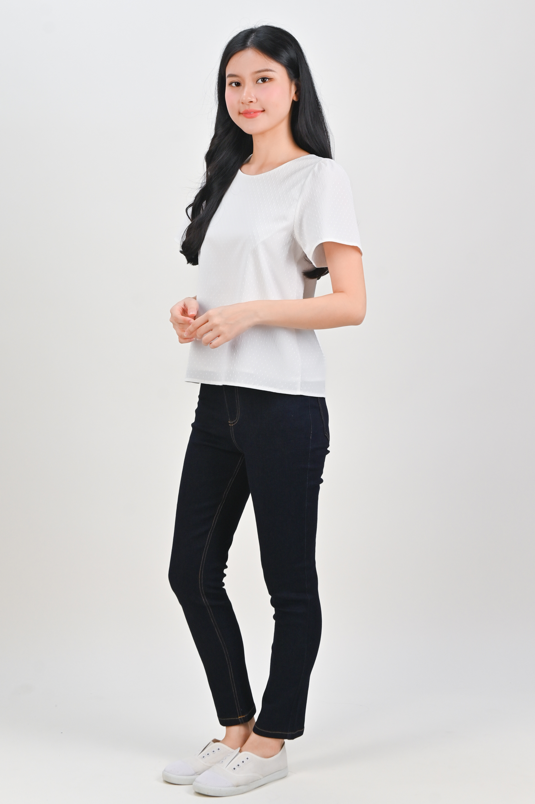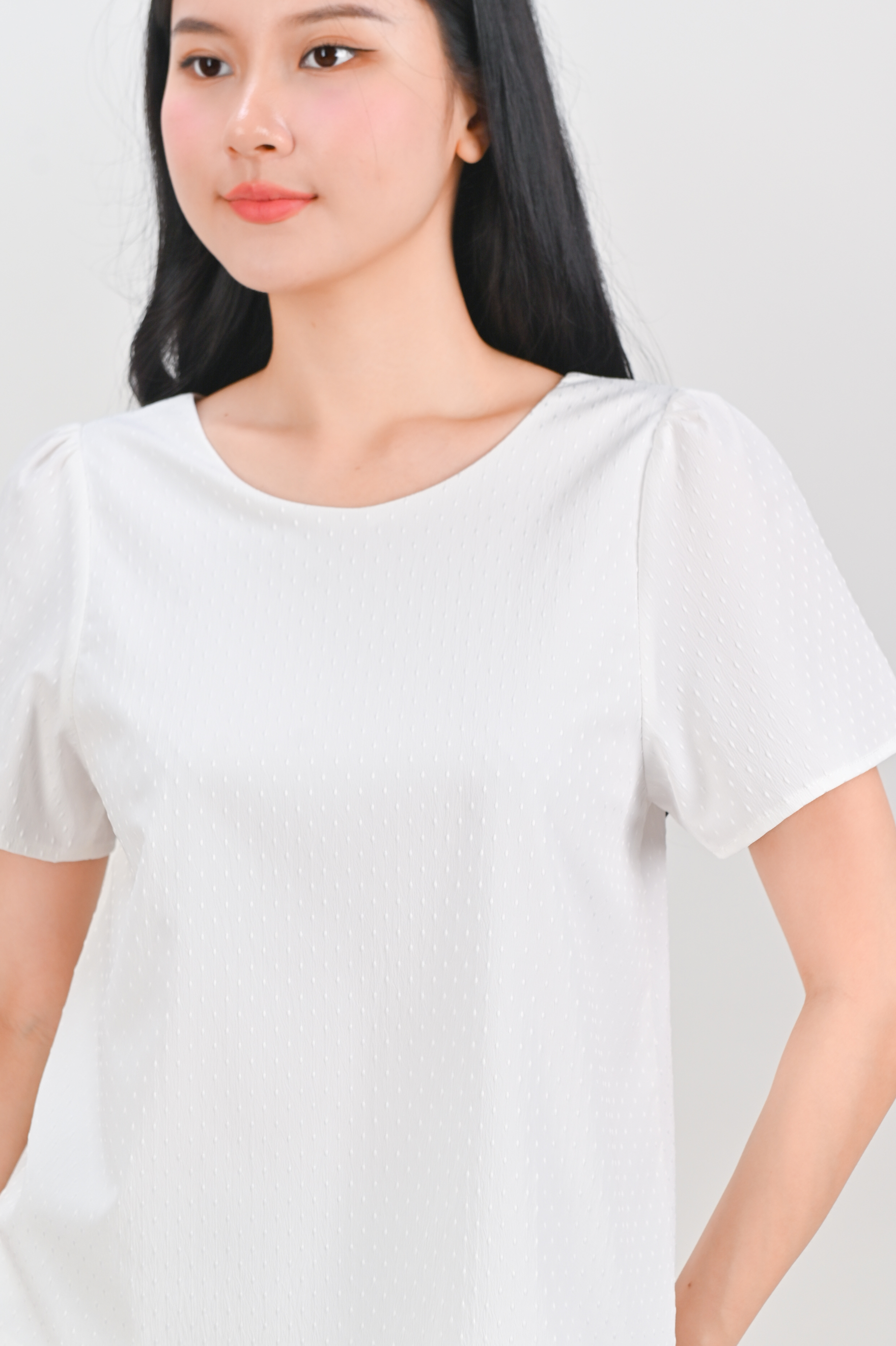 CIELA DOTTY SLEEVED TOP IN WHITE