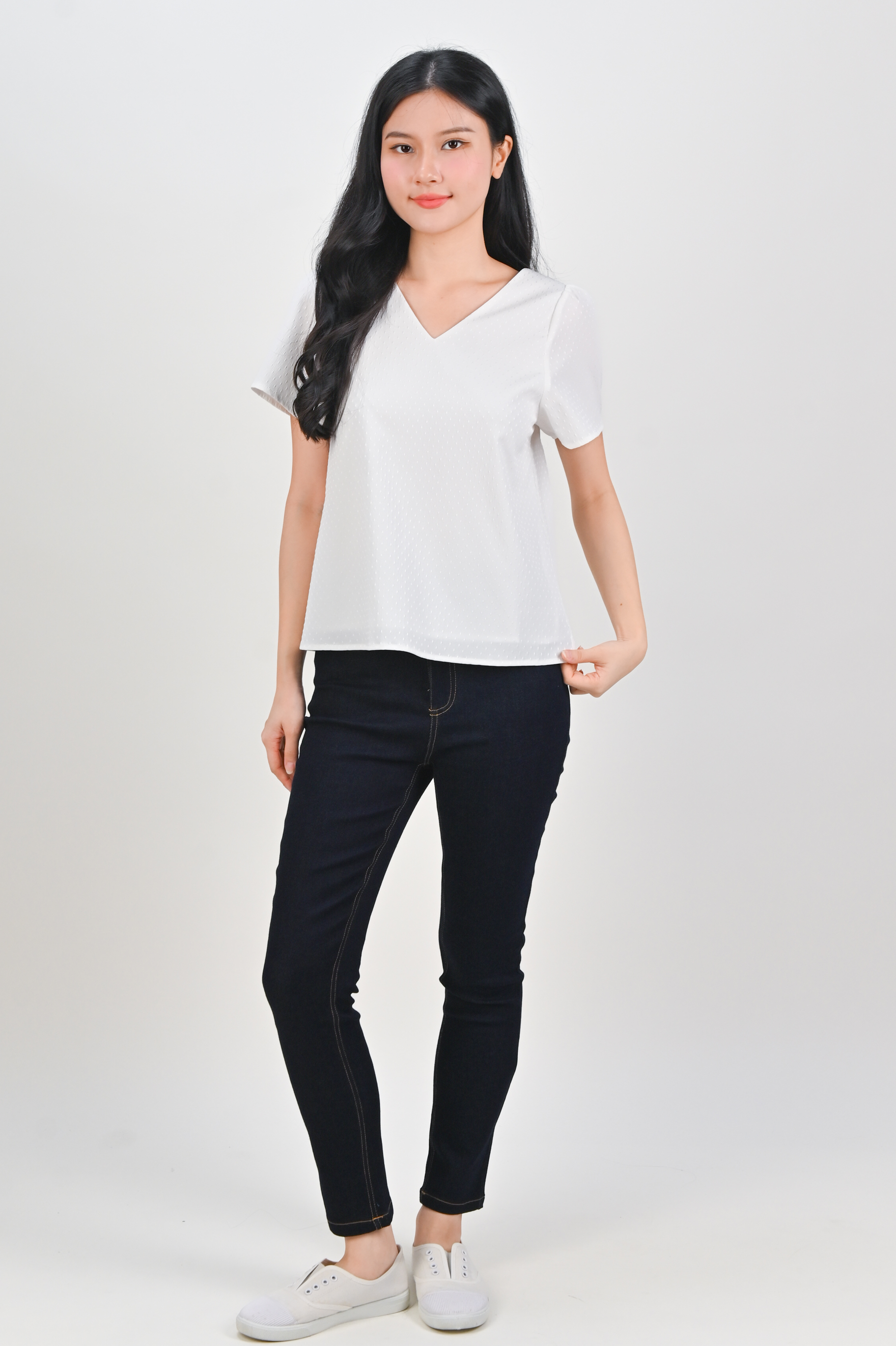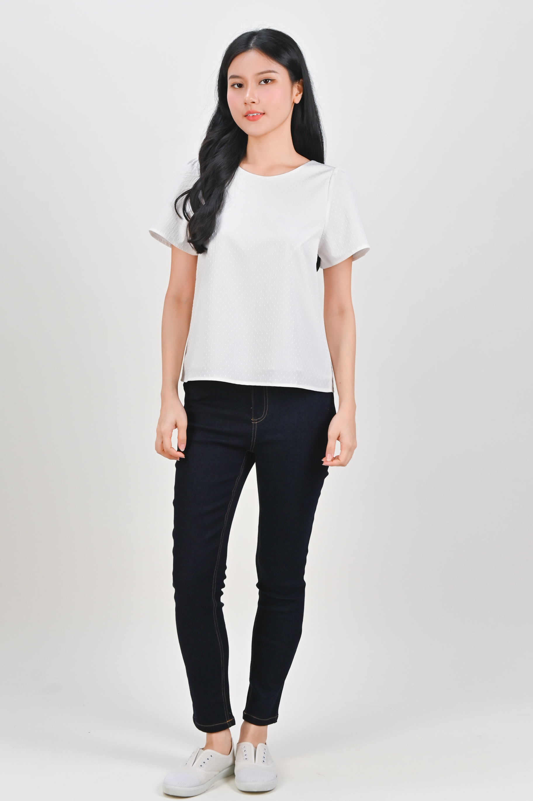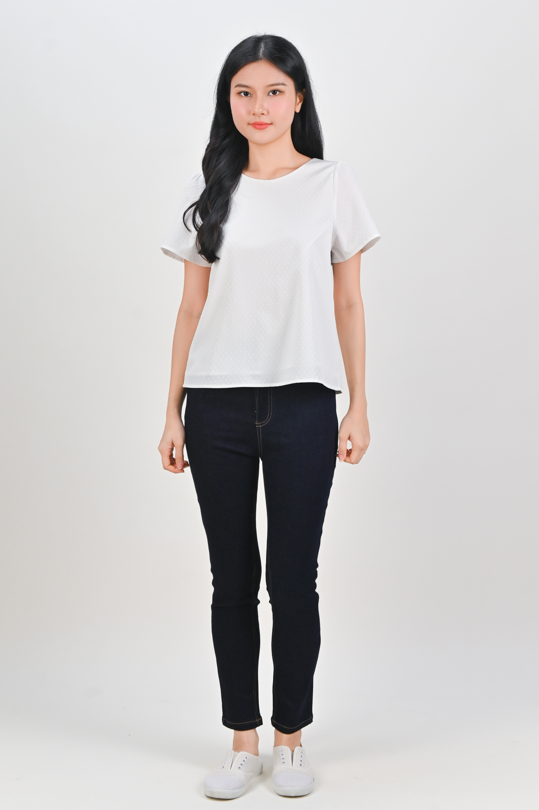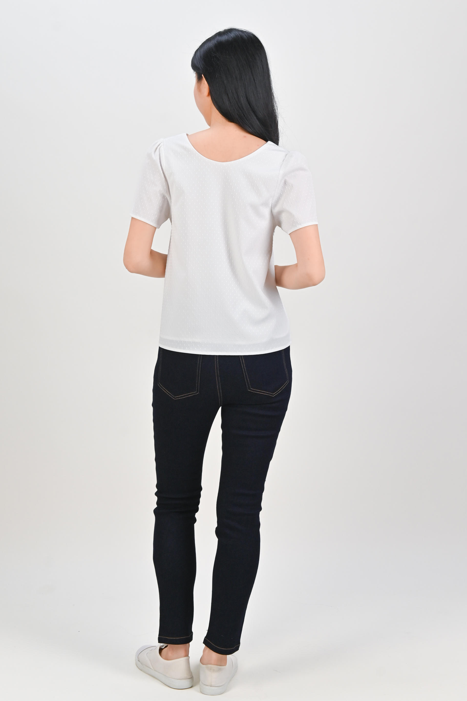 CIELA DOTTY SLEEVED TOP IN WHITE