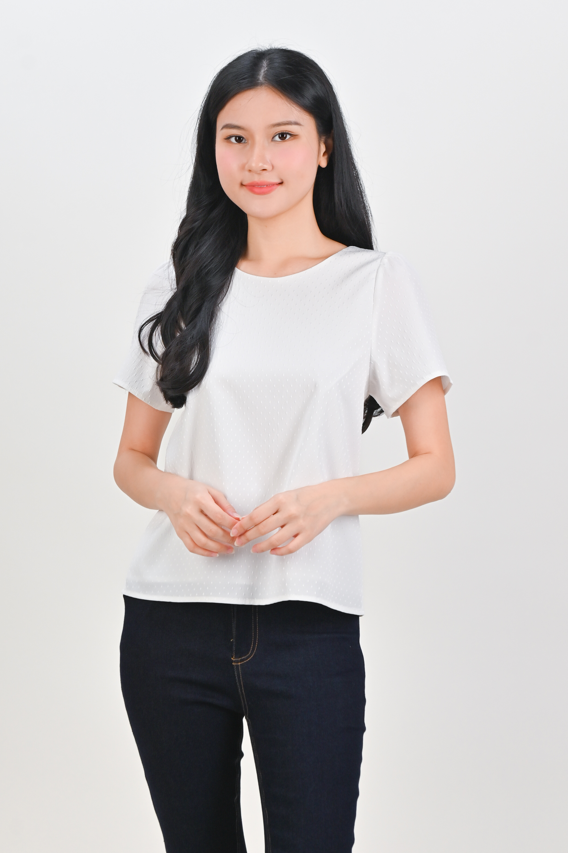 Actual stocks may varyDainty dots and all the colours your heart could want 🌸 Introducing your new fave elevated basic - our Ciela Dotted Sleeved Top is light, comfy, and ready to match with literally everything!