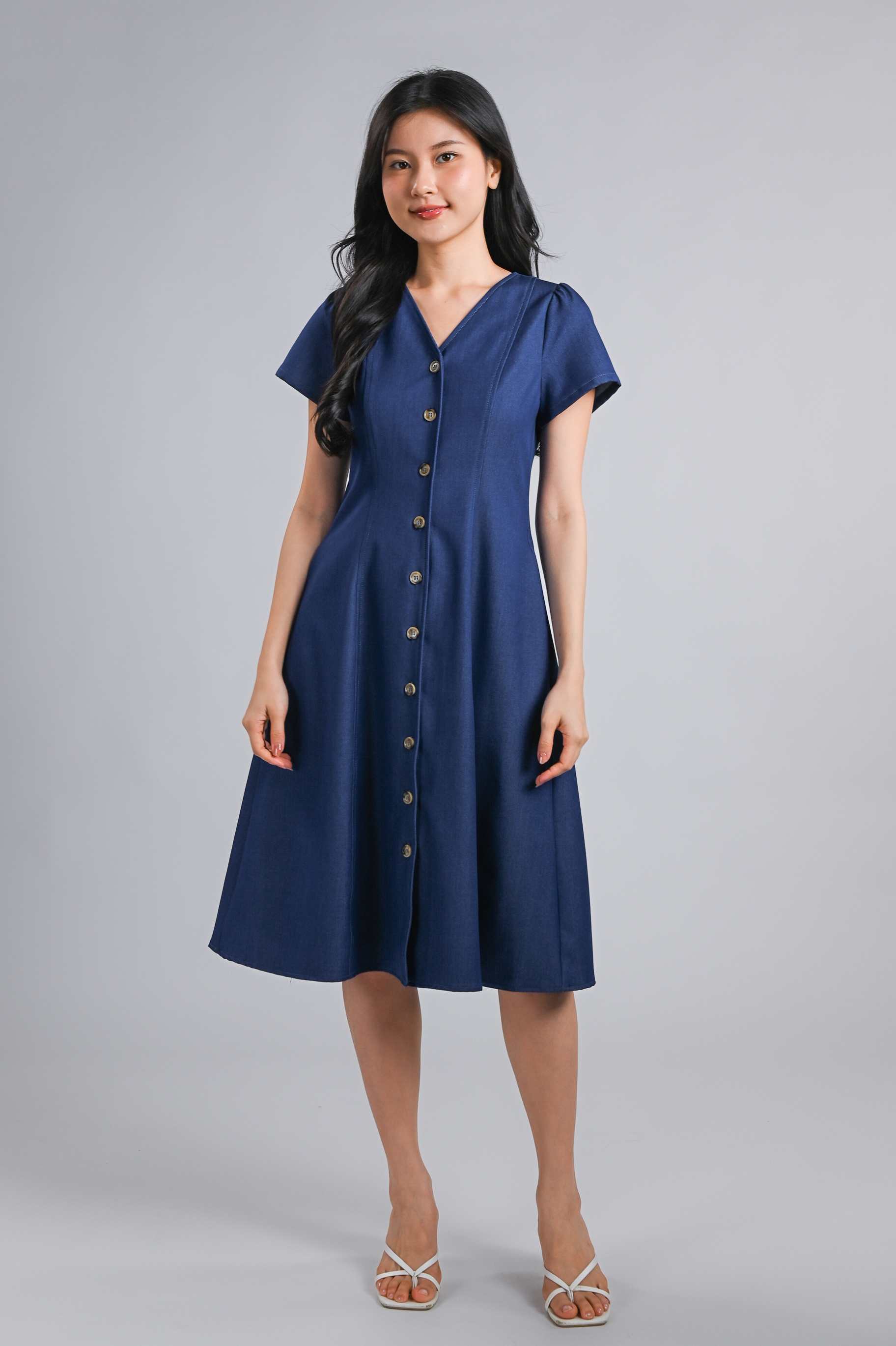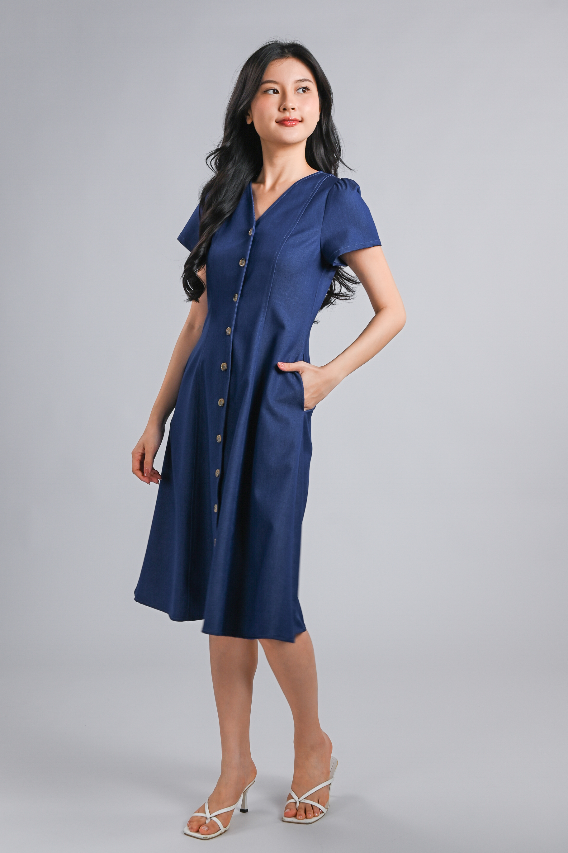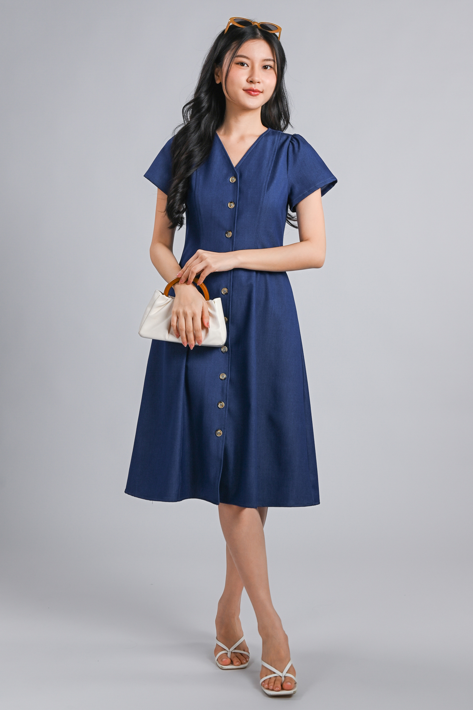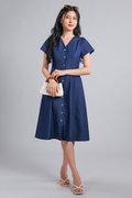 CLARISSA DENIM SLEEVED BUTTON-DOWN MIDI DRESS