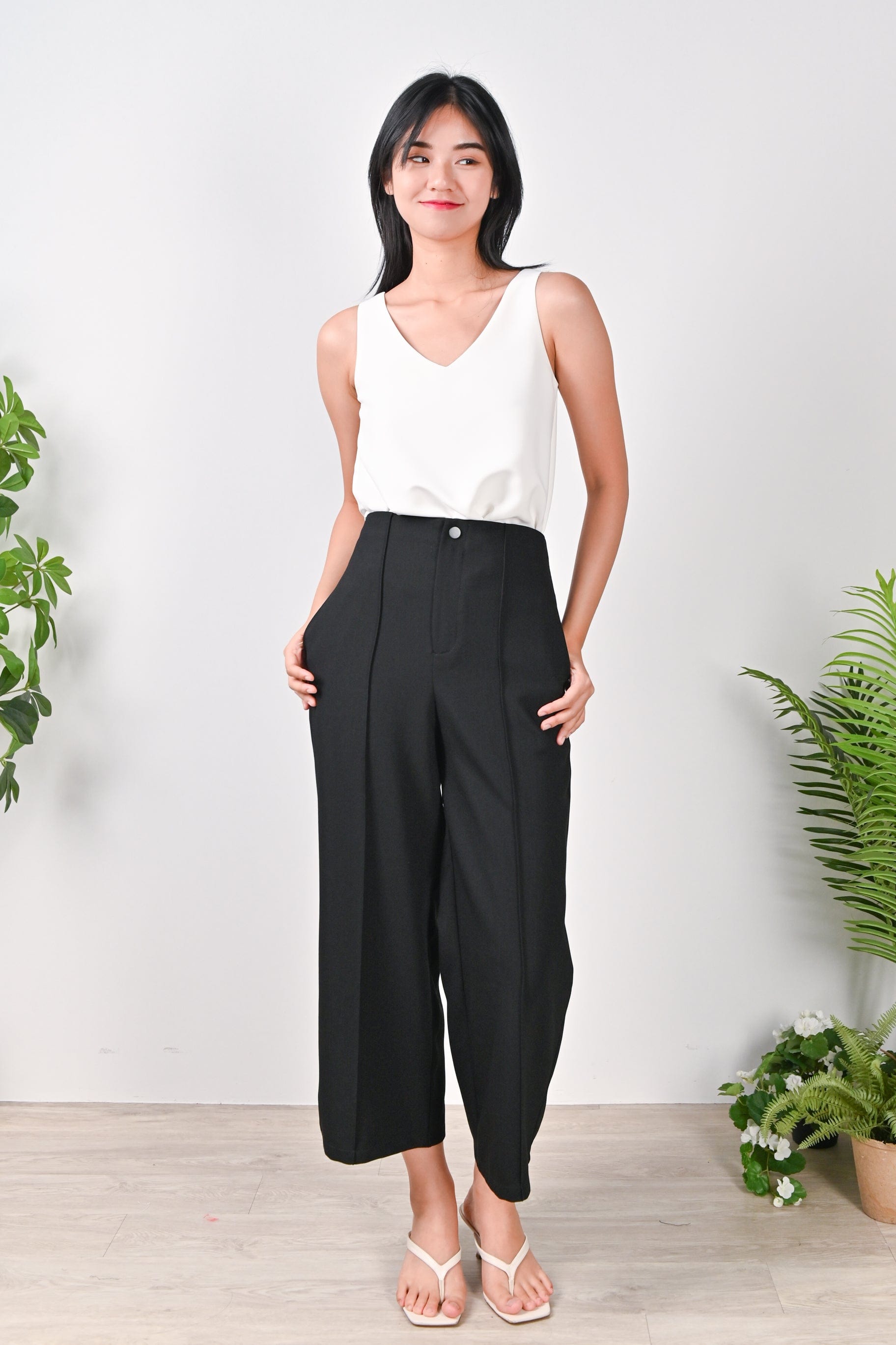 CHANA PINTUCK PANTS IN BLACK