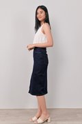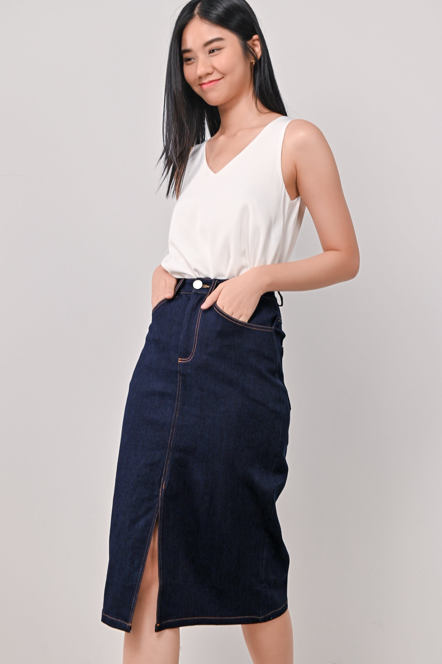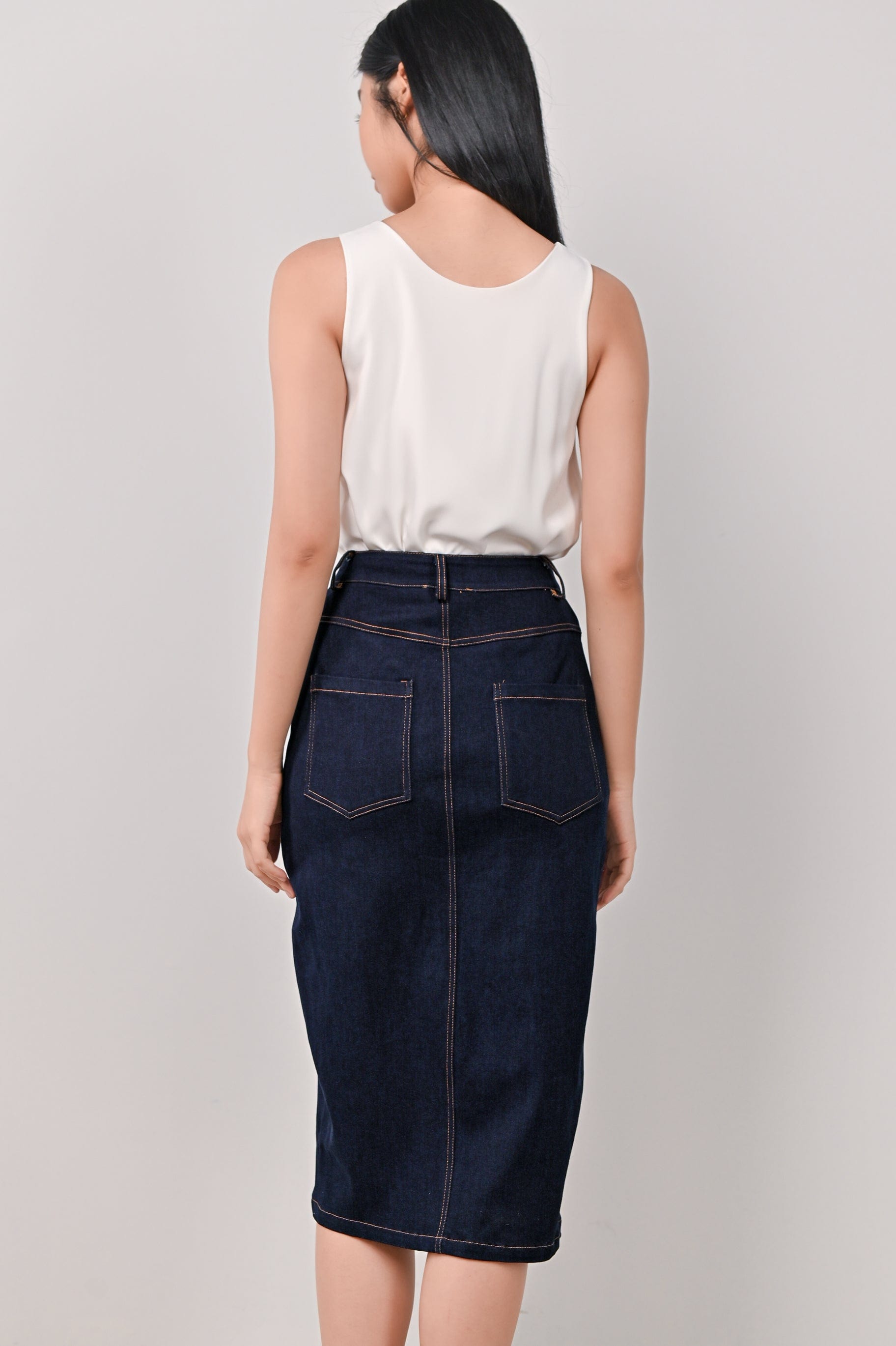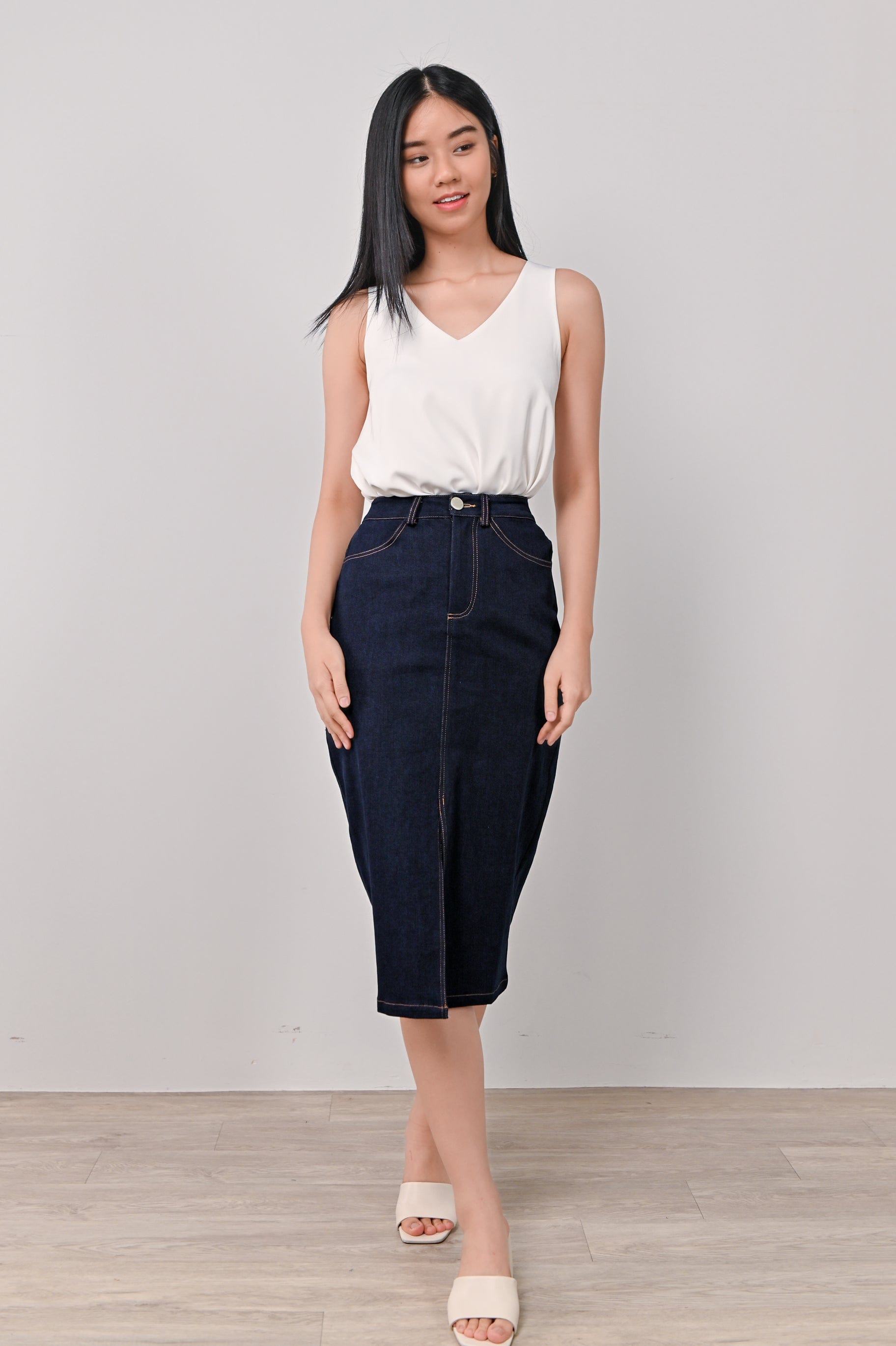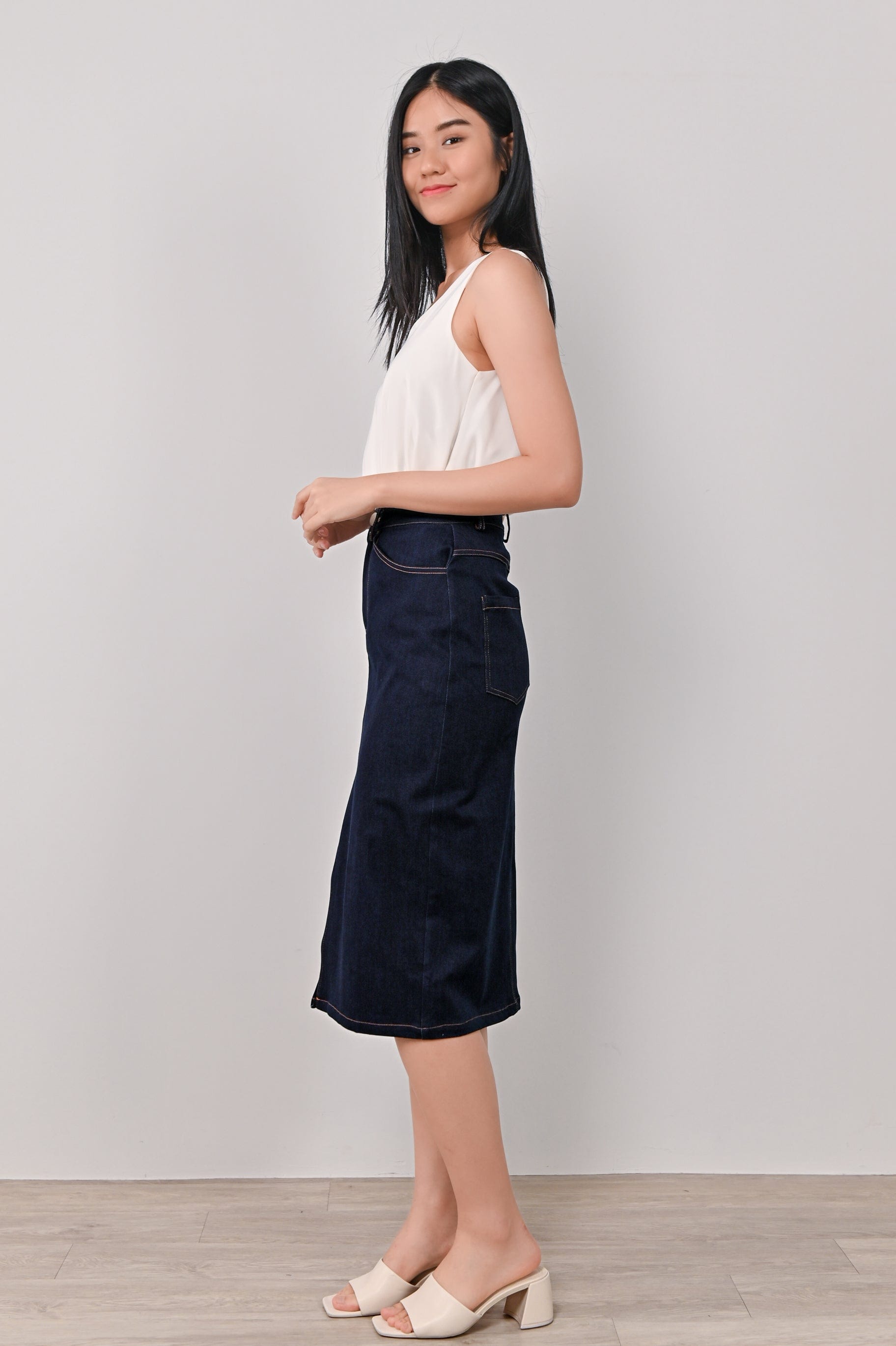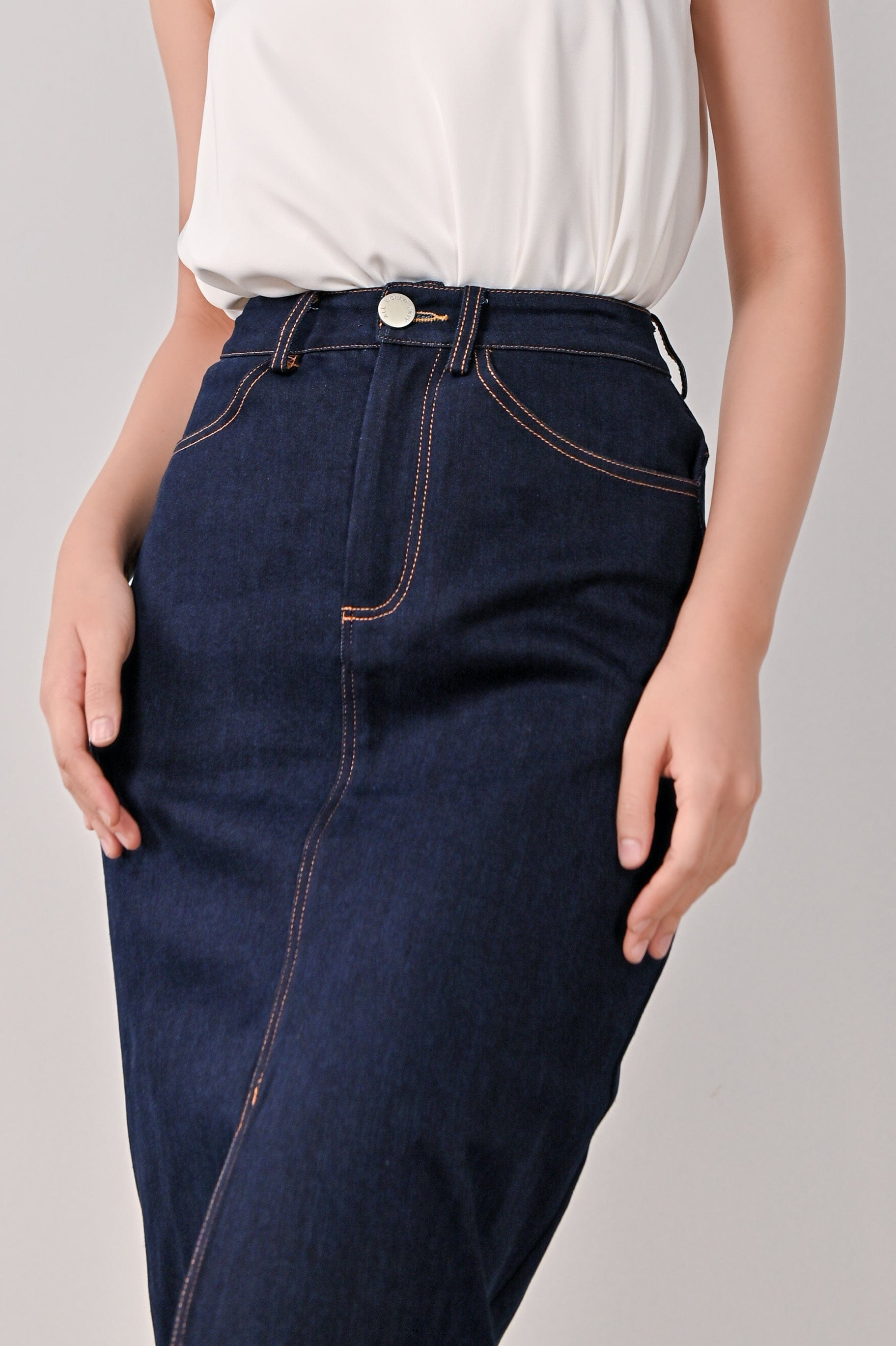 Please note that, unlike our previous Landy Denim Skirt, the waist band of this skirt has almost no stretch.