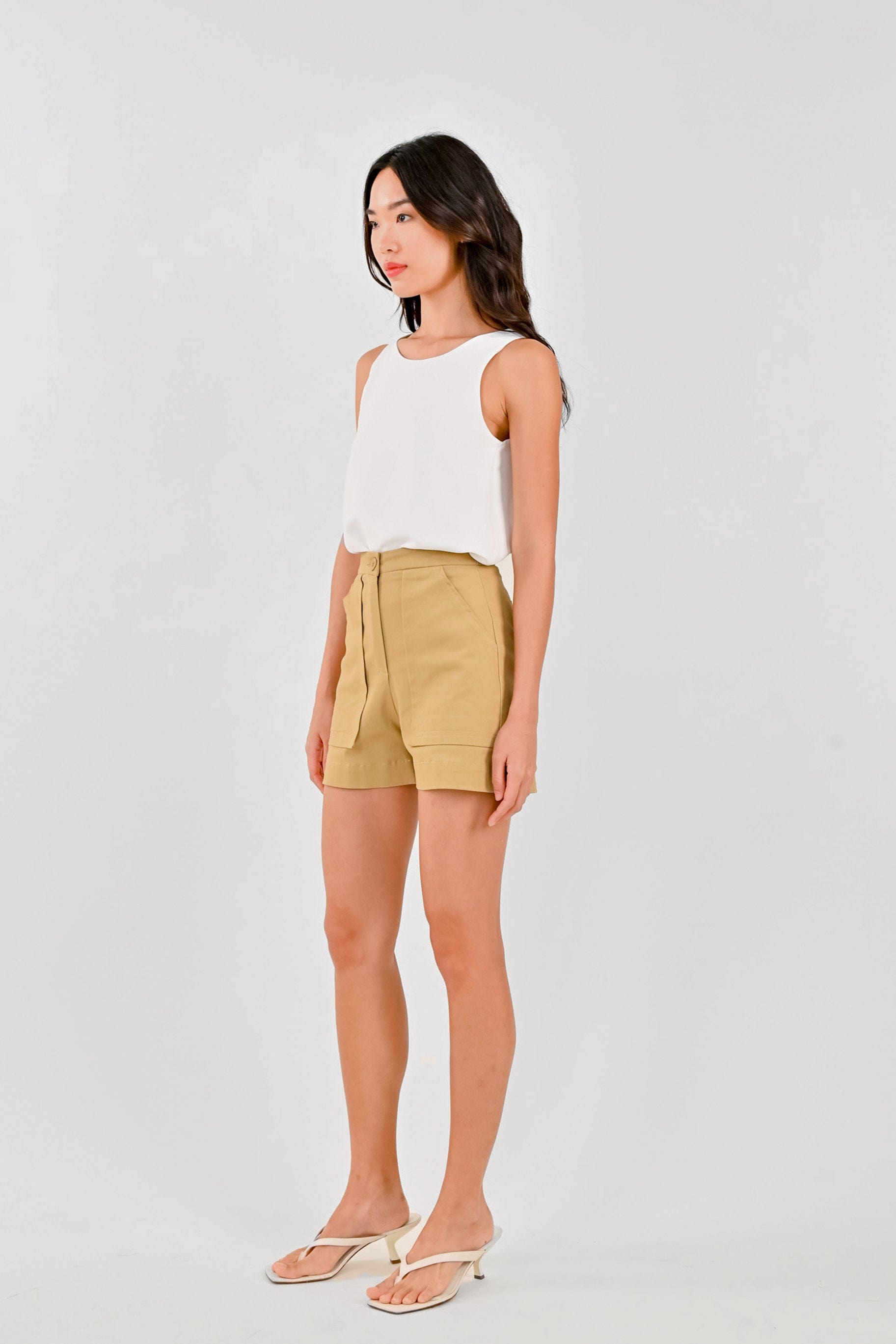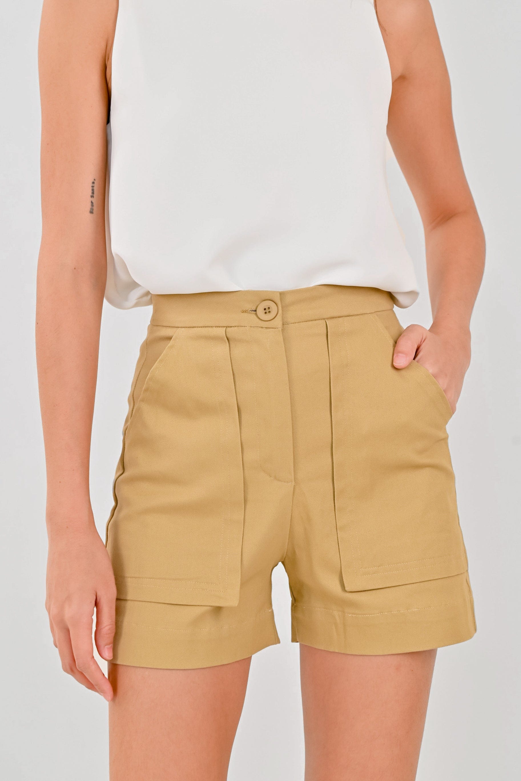 LOUISE PATCH-POCKET SHORTS IN KHAKI