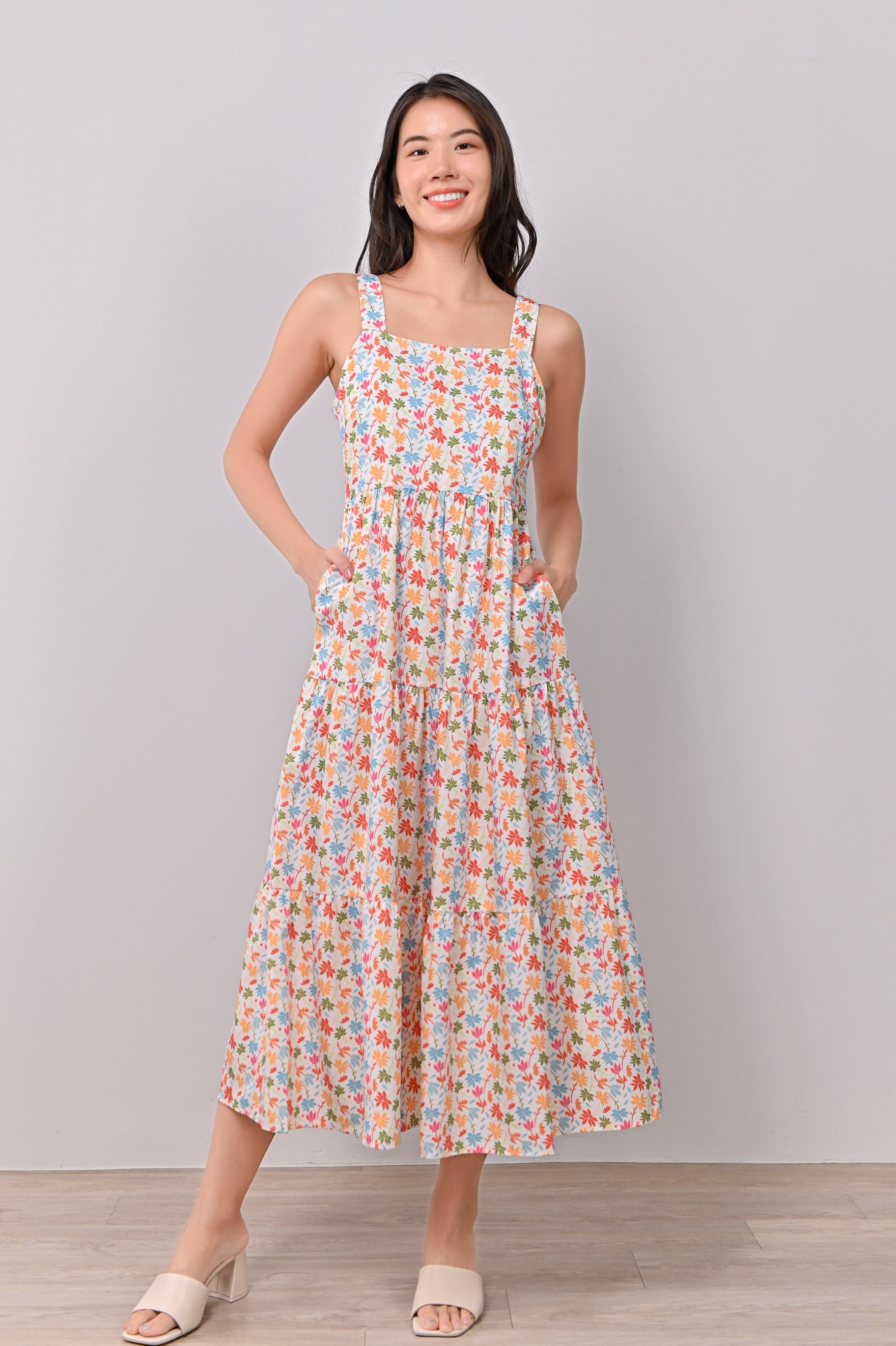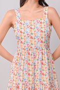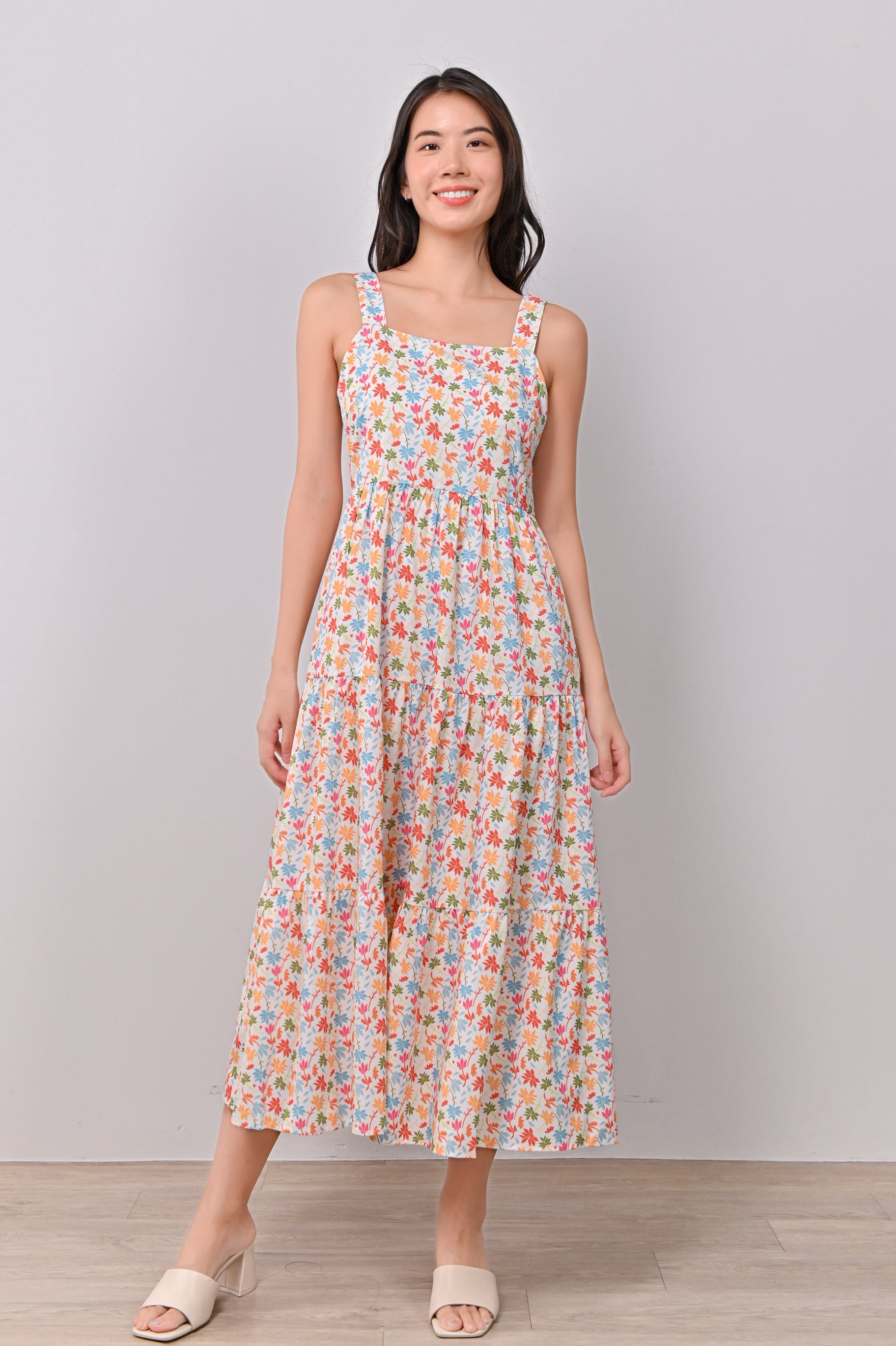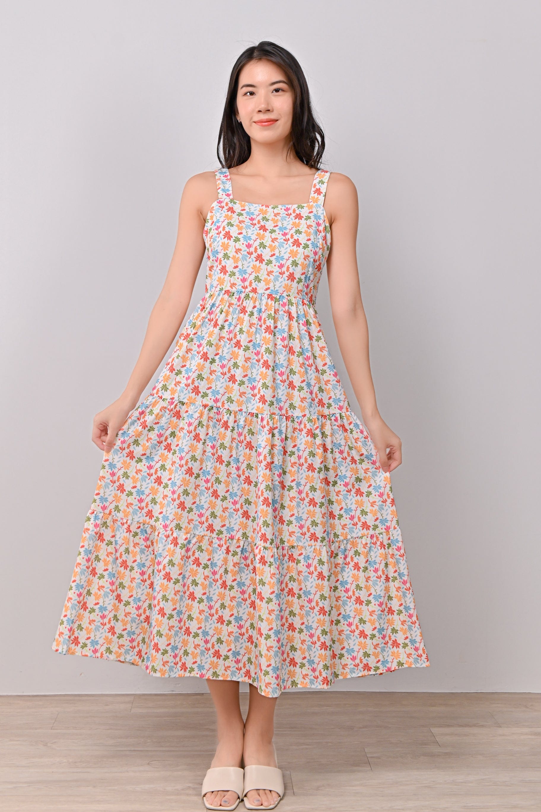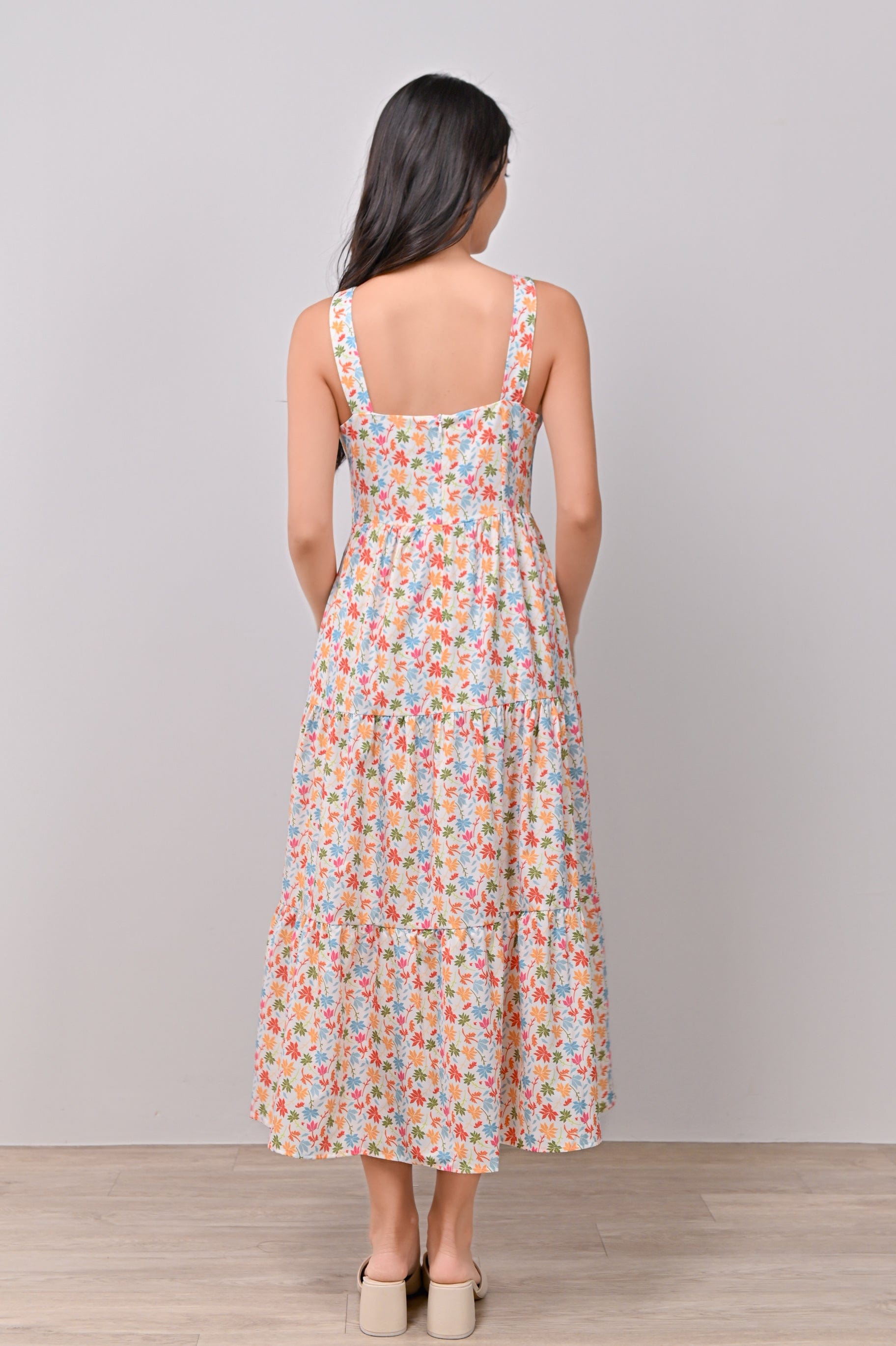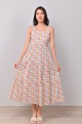 ATHOL LEAVES THICK-STRAP TIERED DRESS