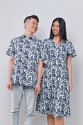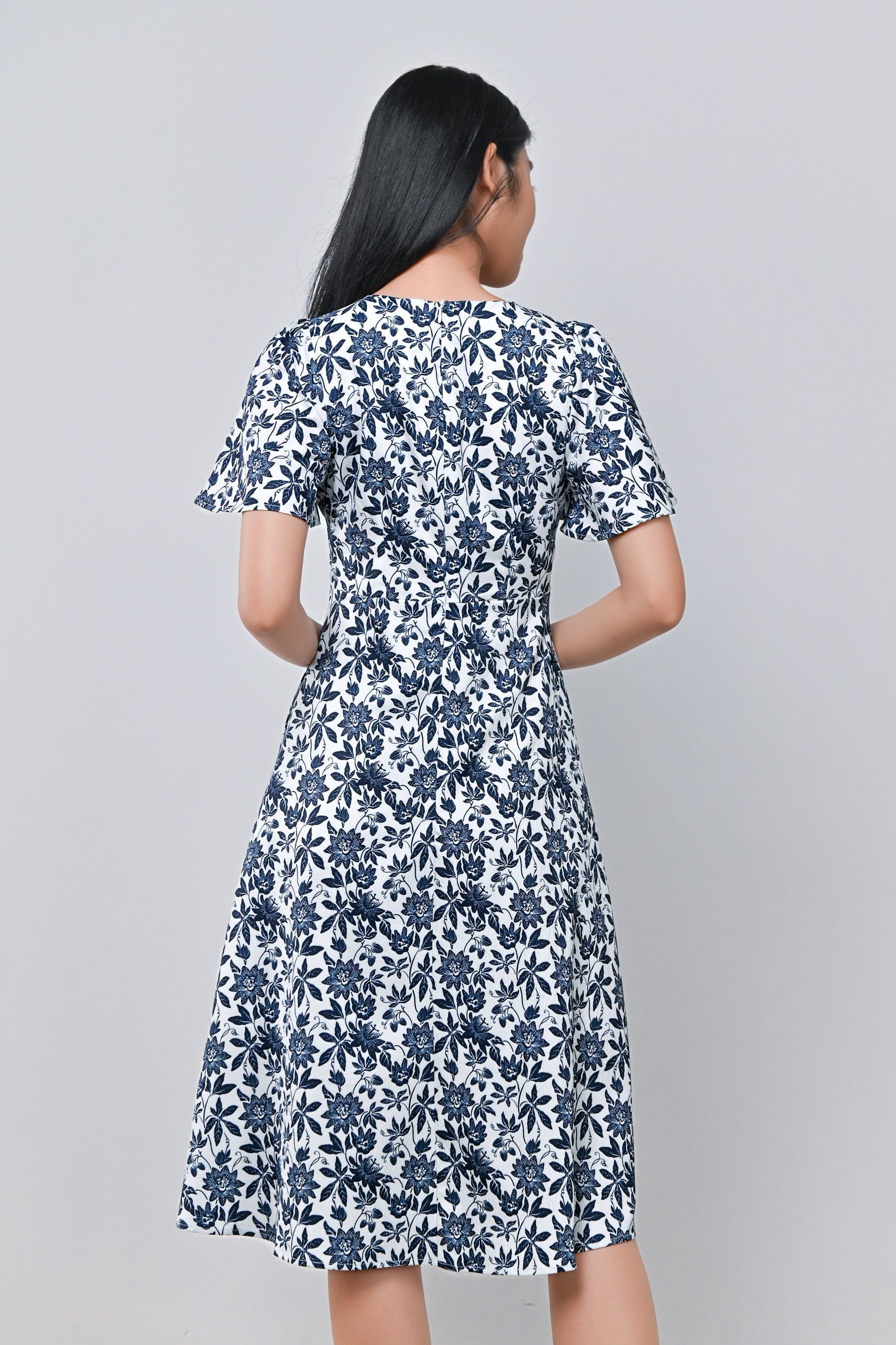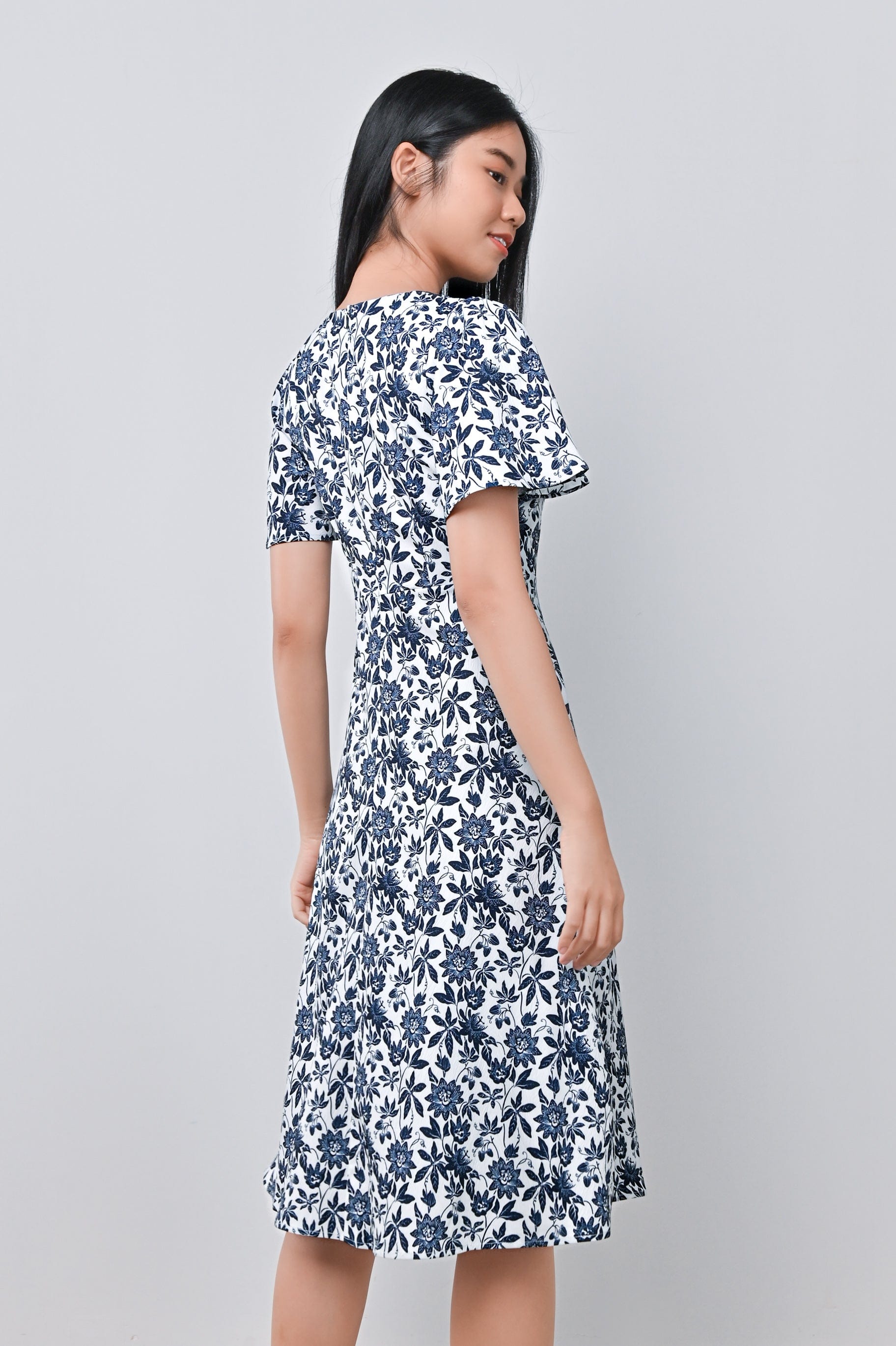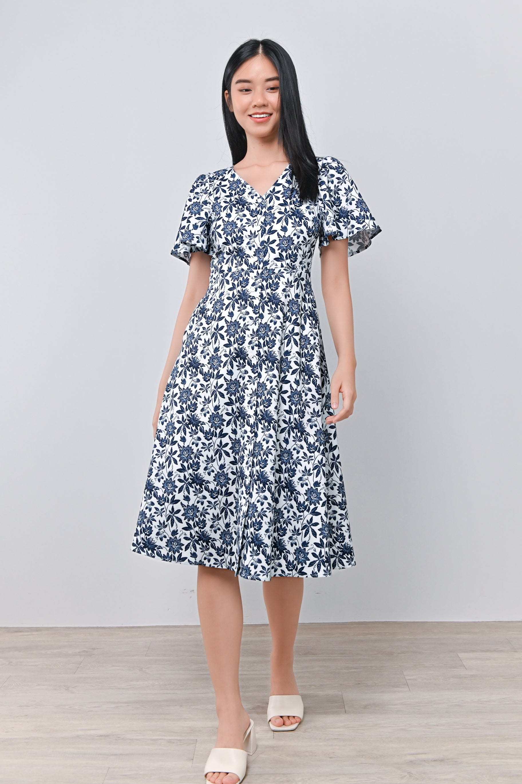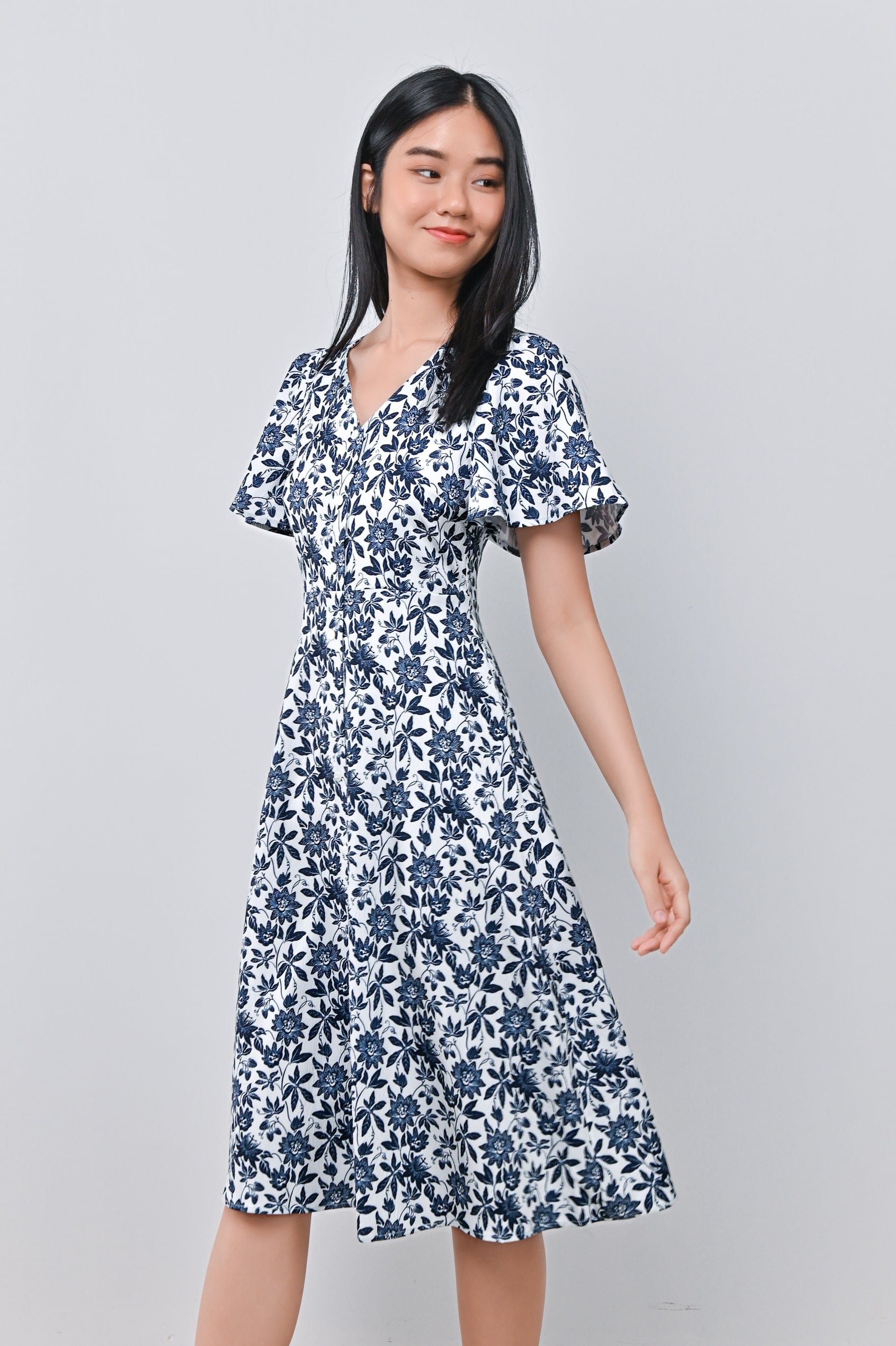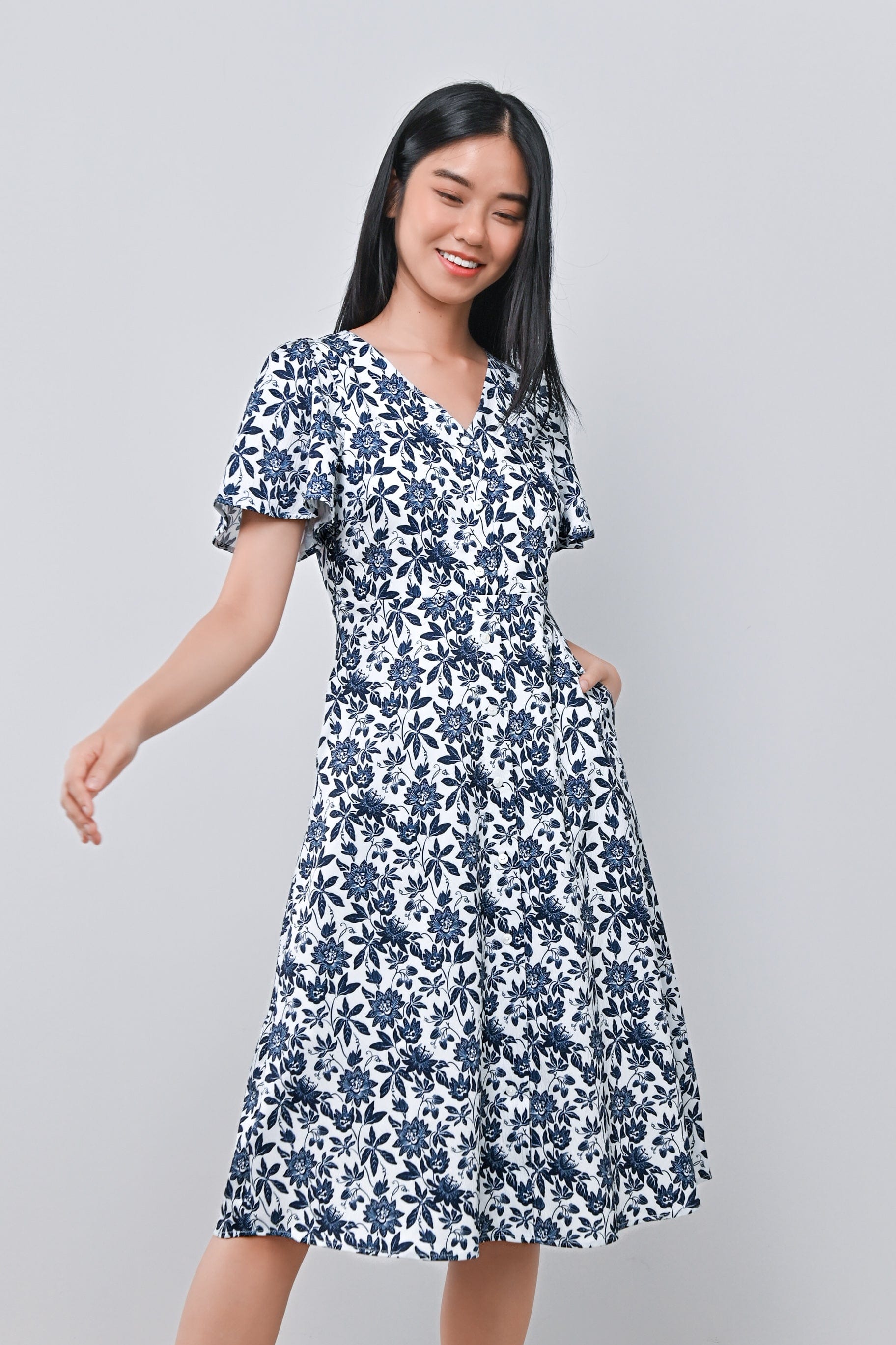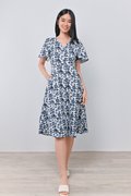 CAMY NAVY SLEEVED BUTTON DRESS