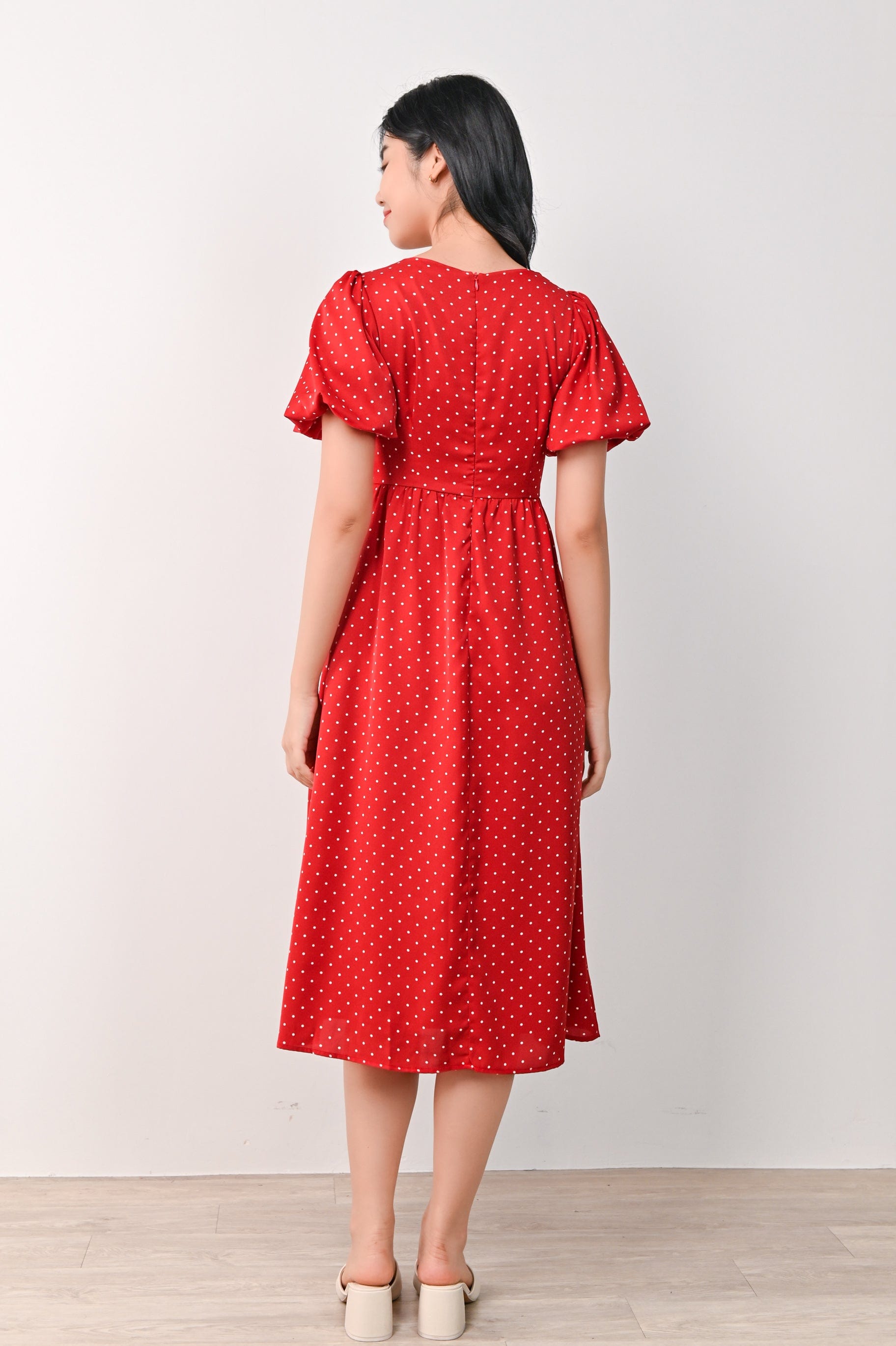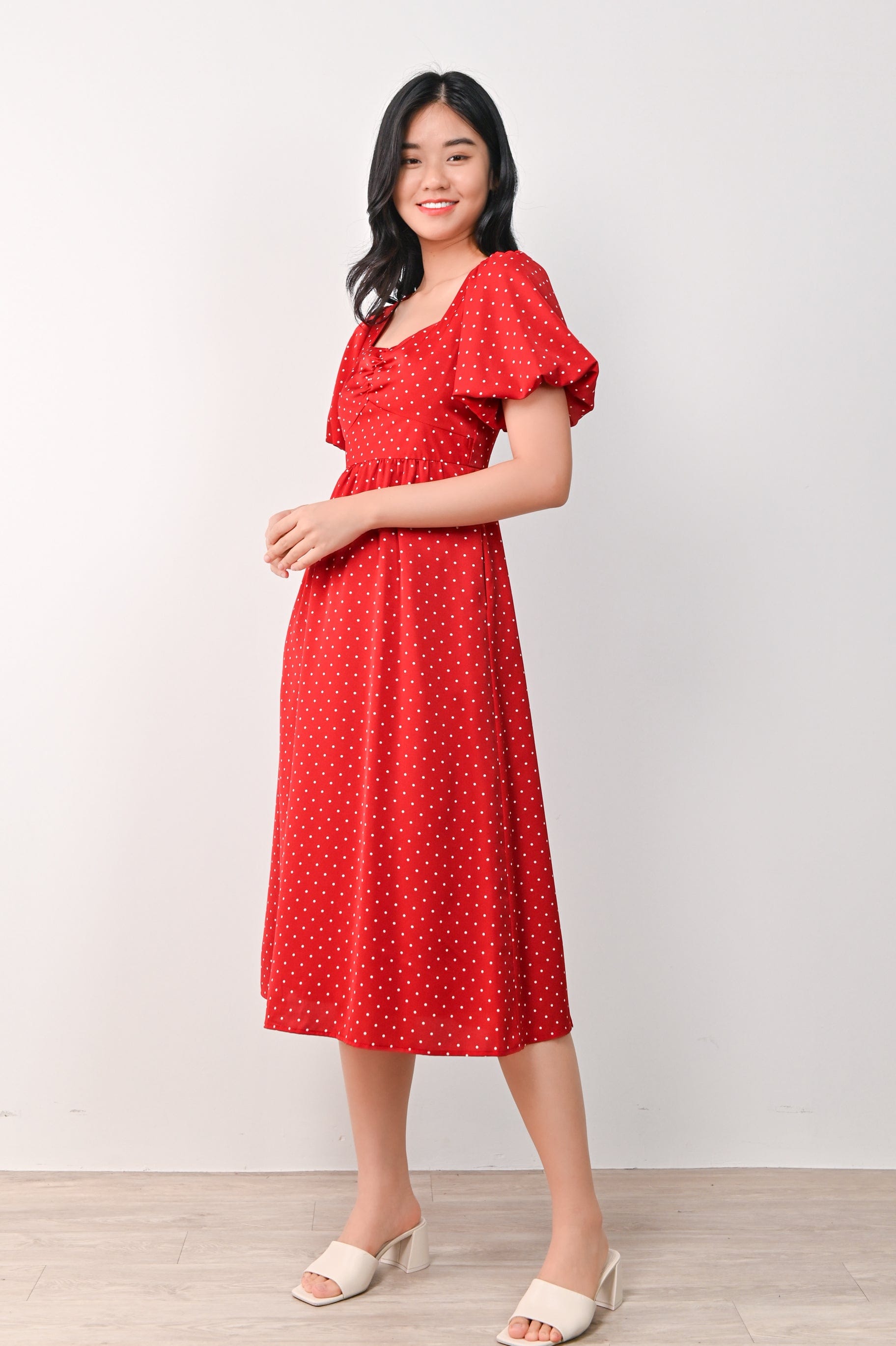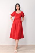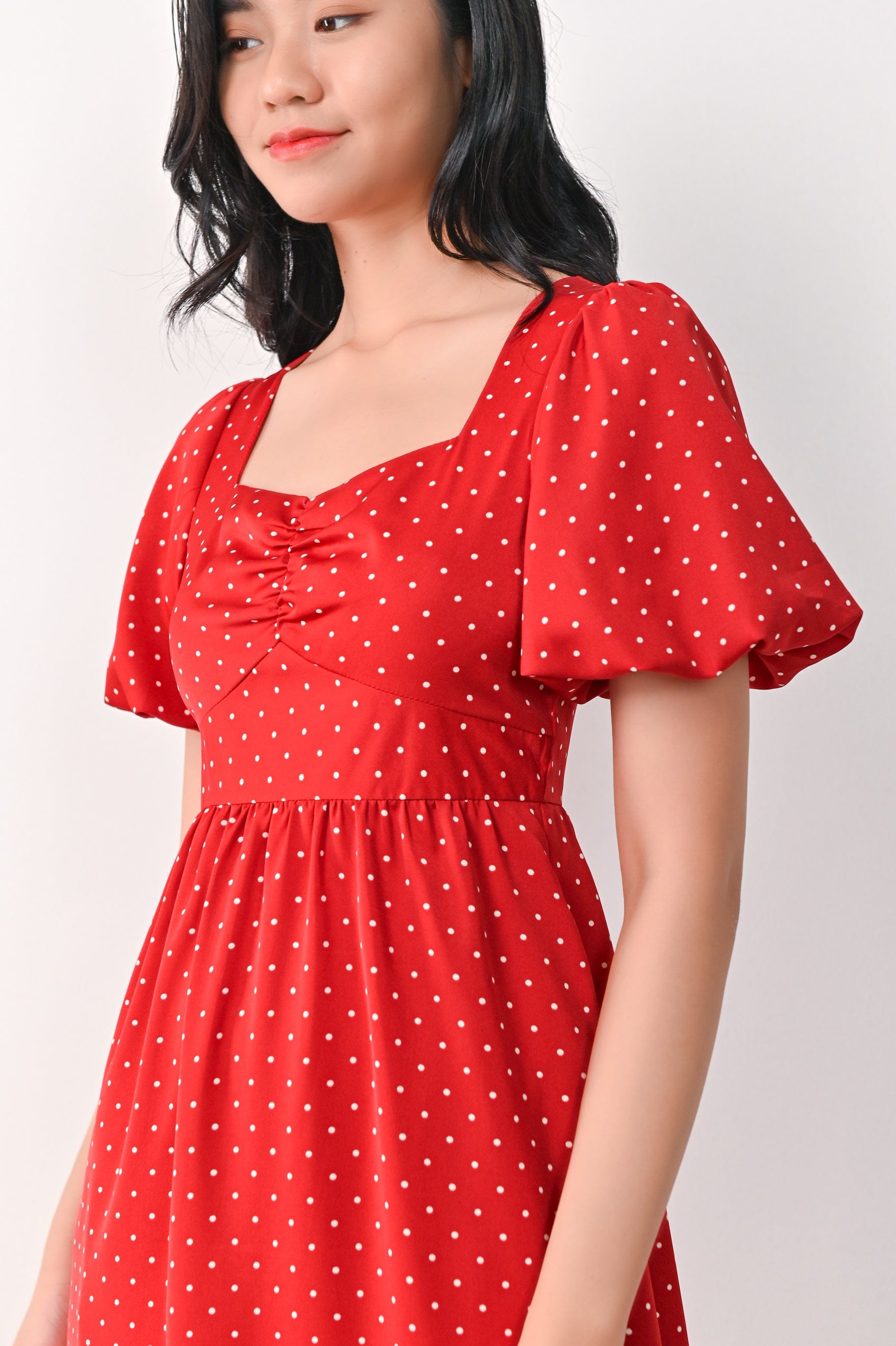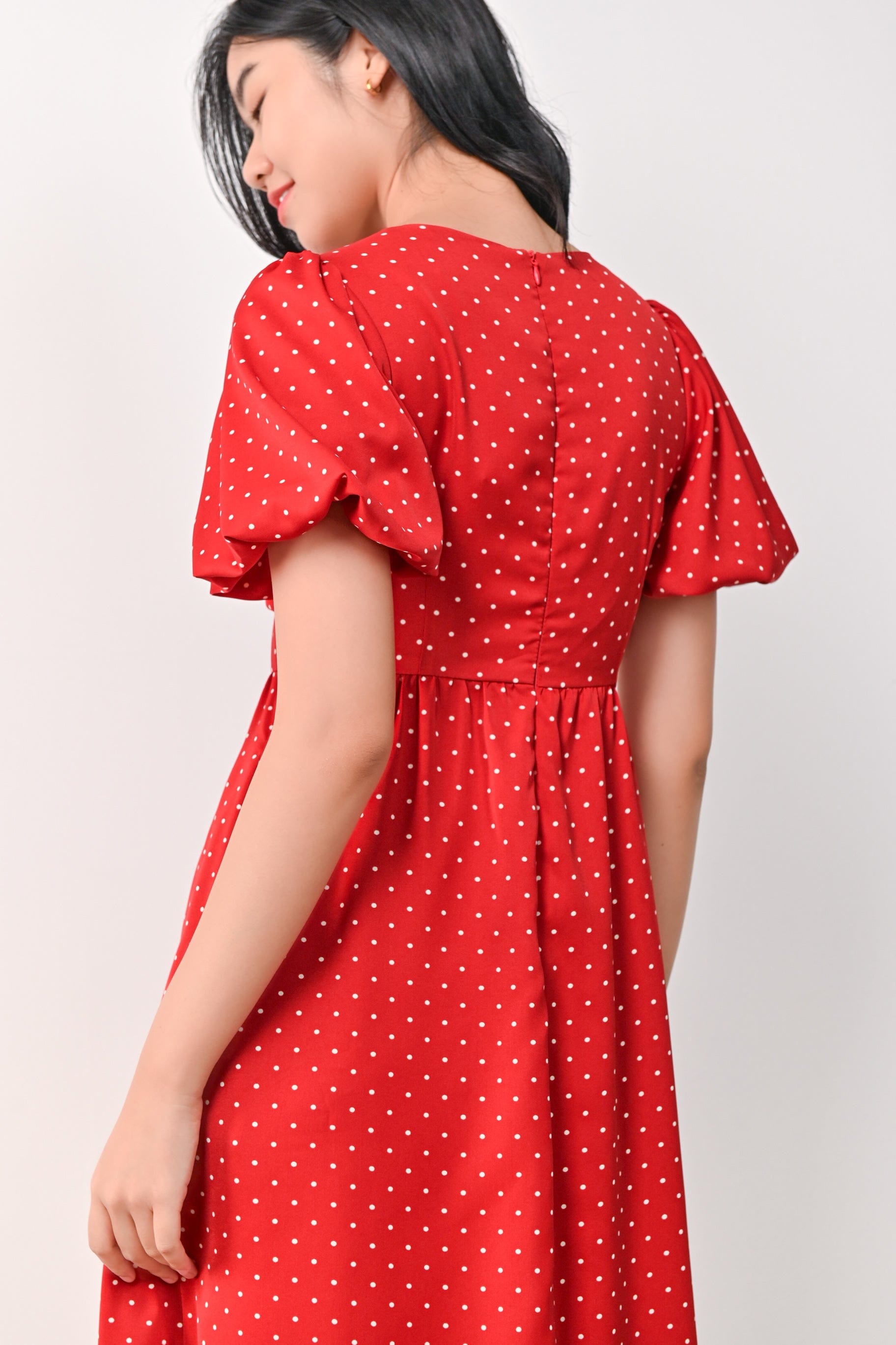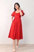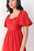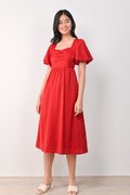 CONNIE PUFF-SLEEVES DRESS IN RED POLKA