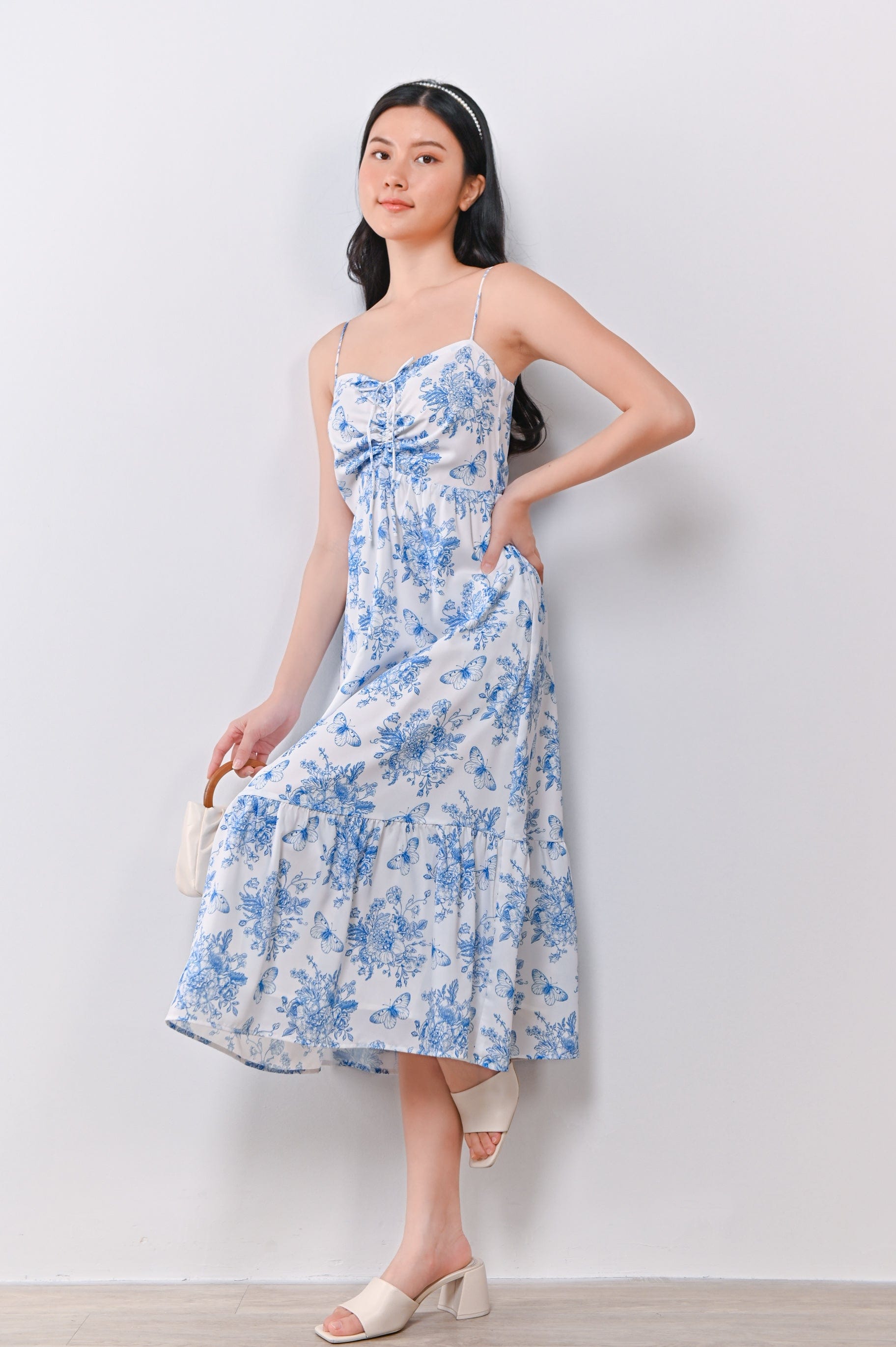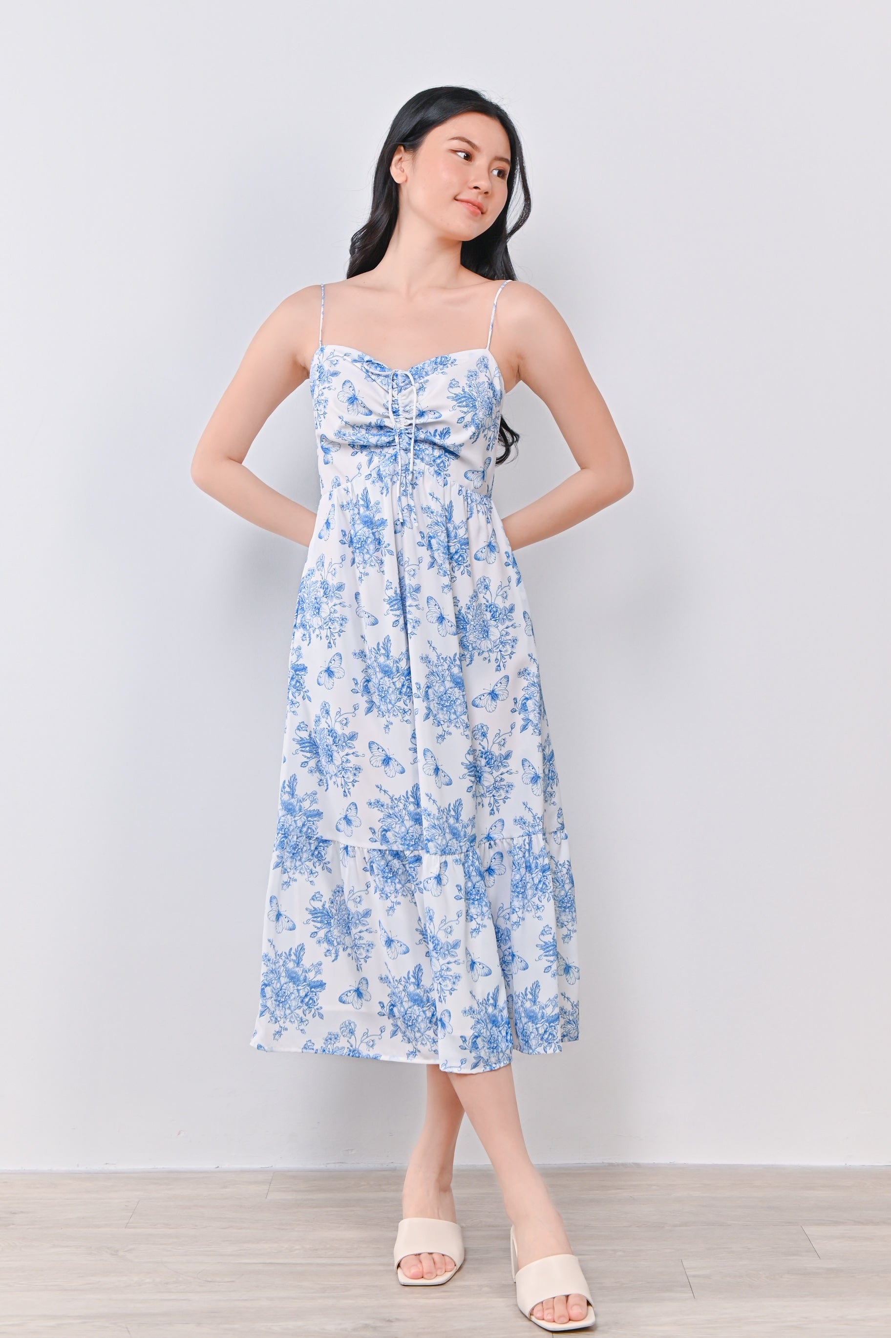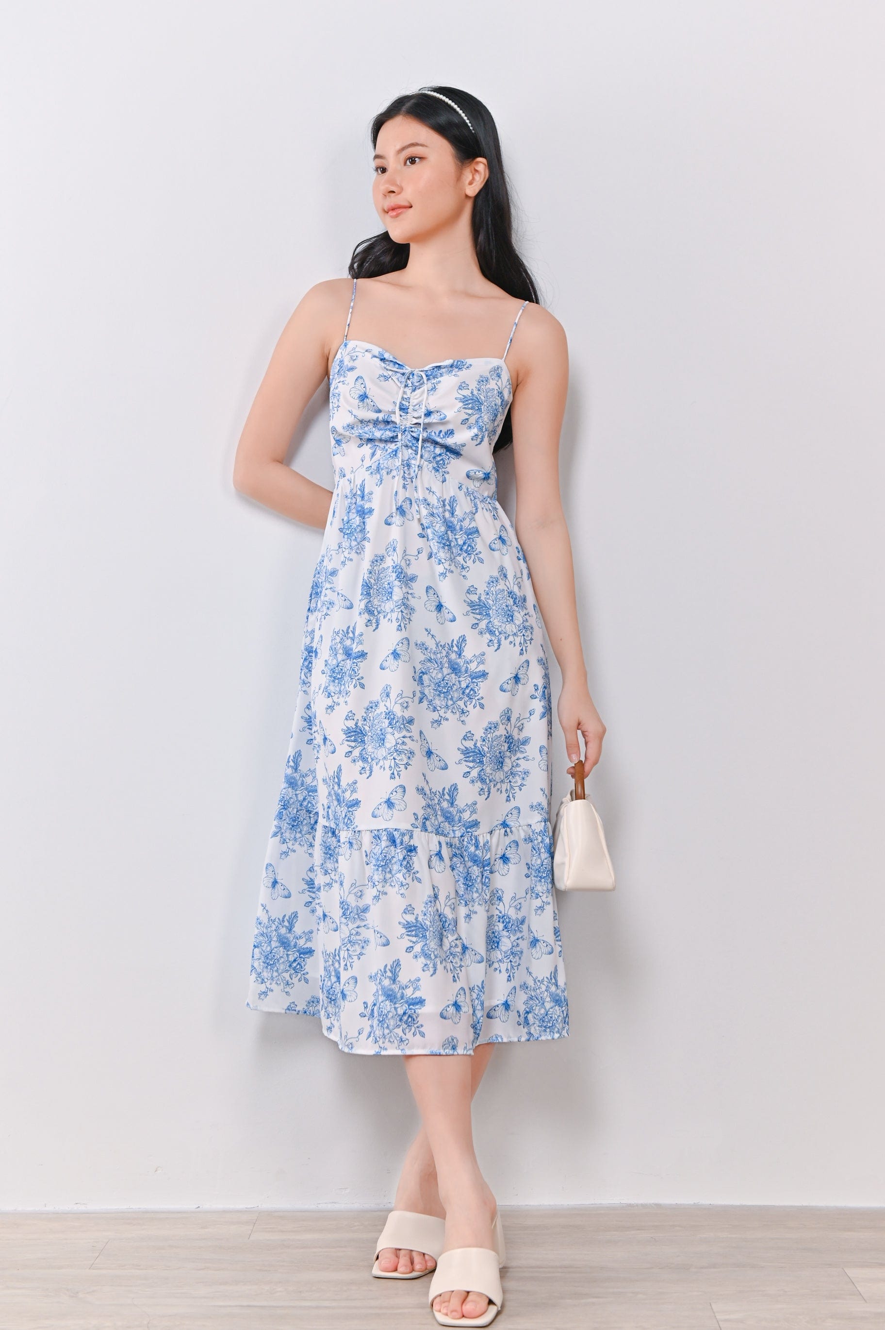 CORA SPAG TIE-DETAIL DRESS IN BUTTERFLIES