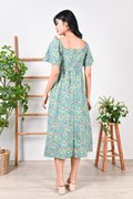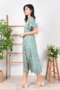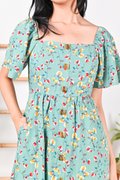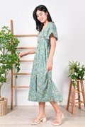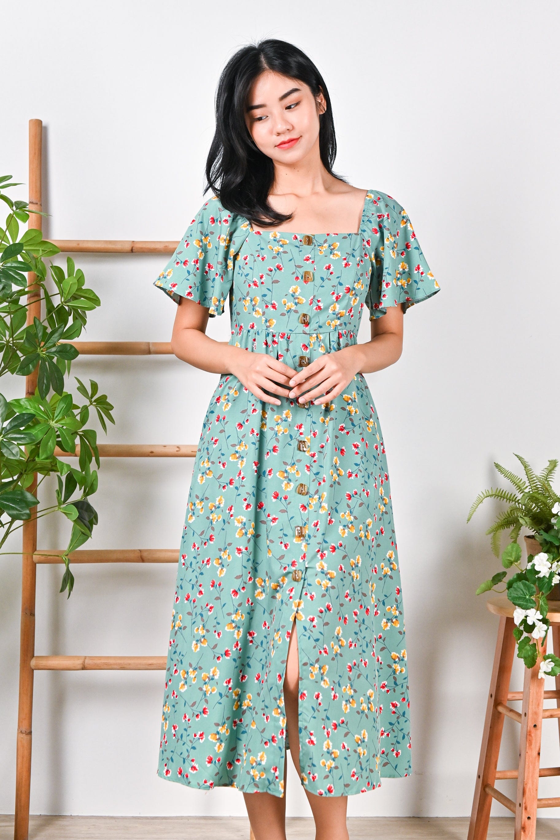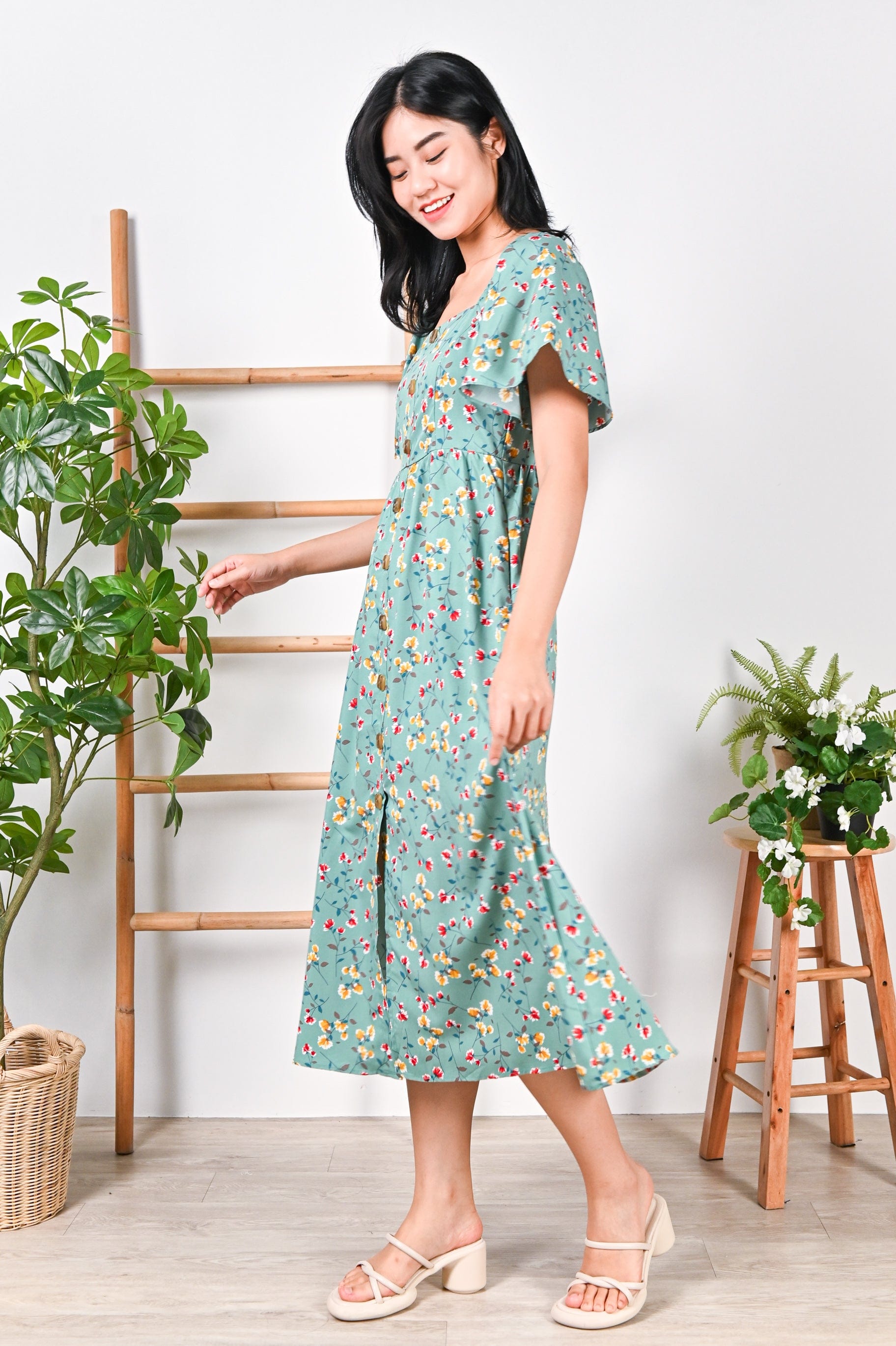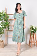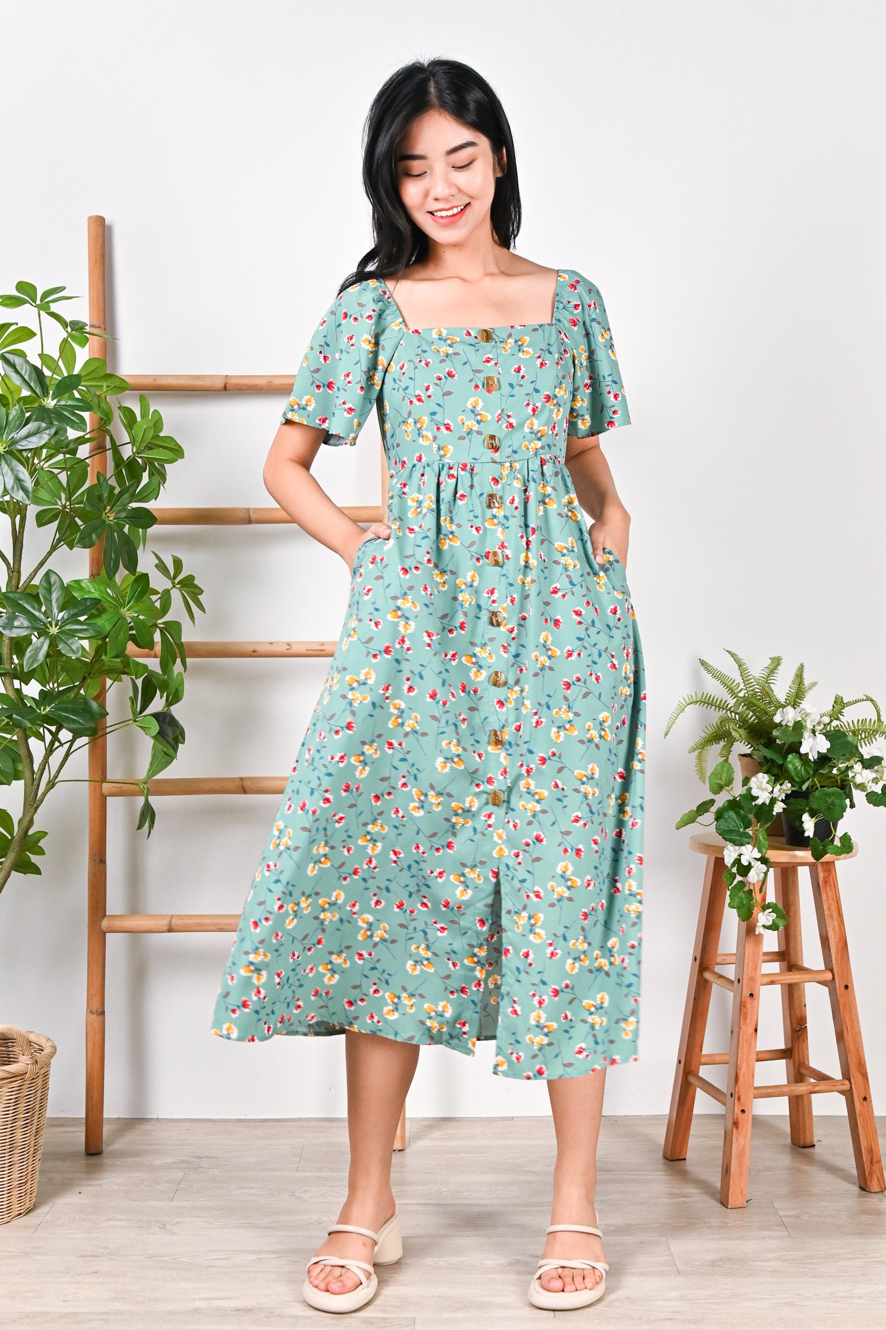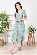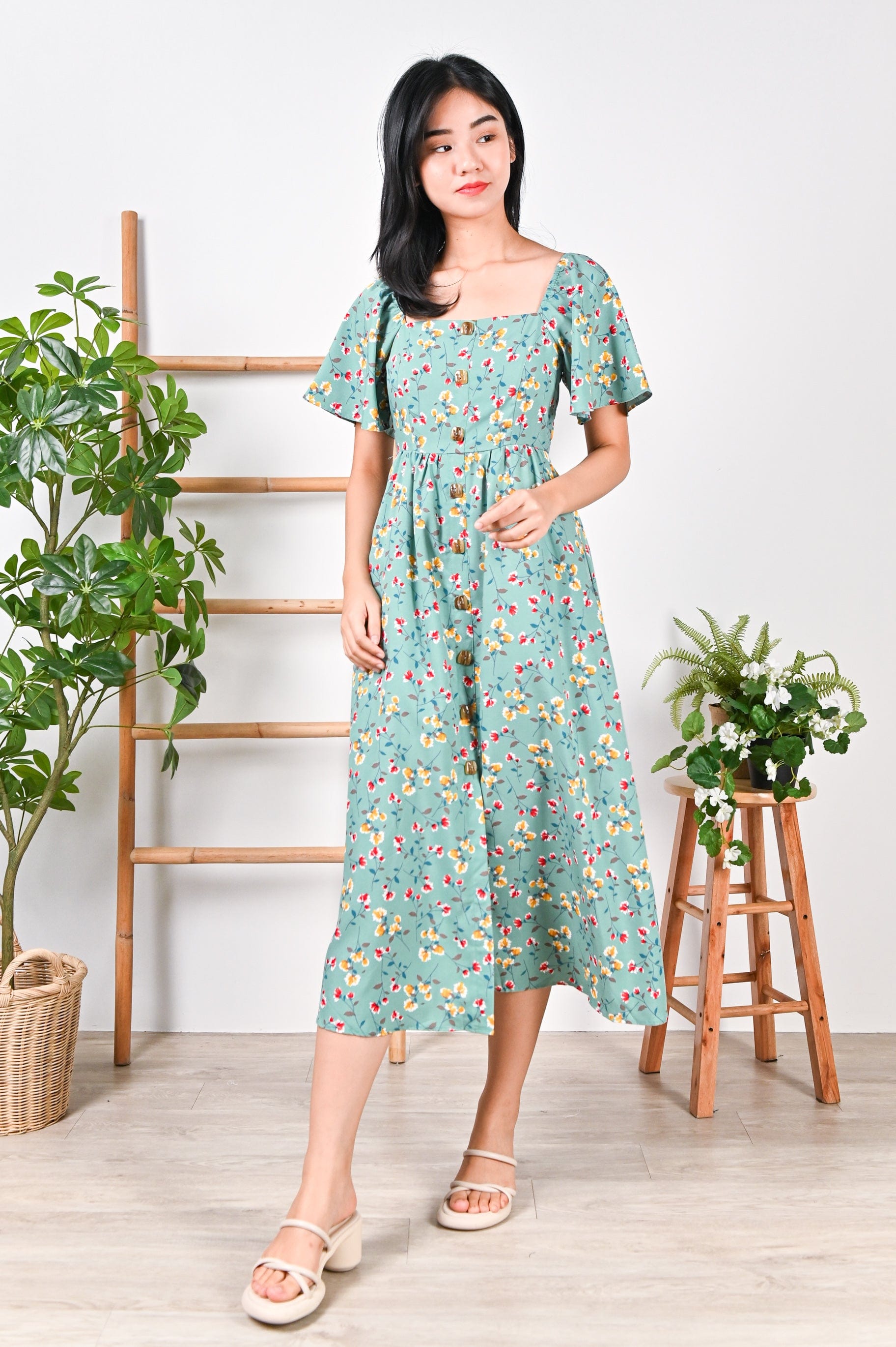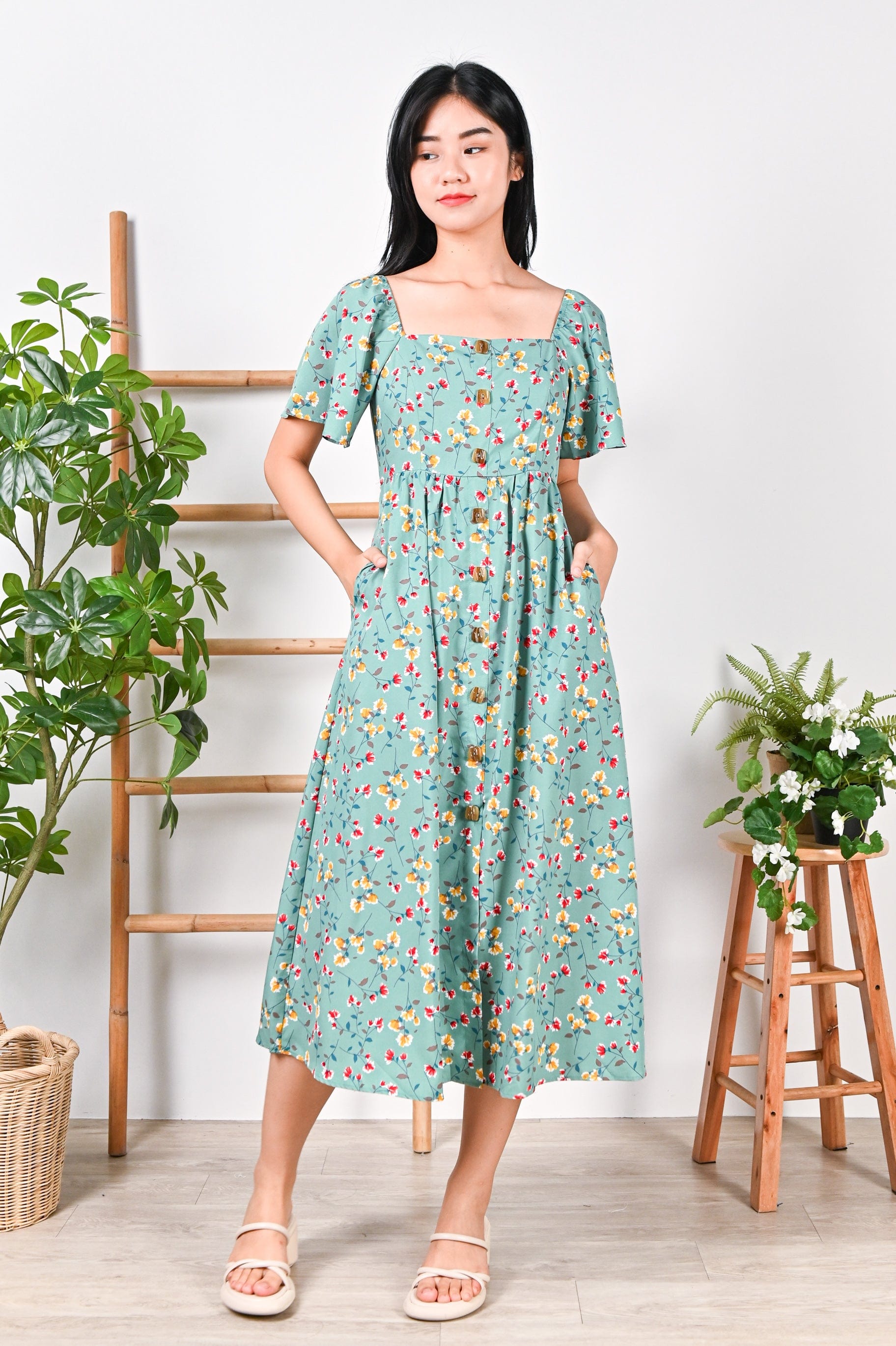ESTEE SLEEVED BUTTON DRESS IN GREEN FLORAL