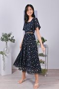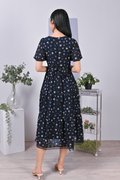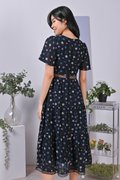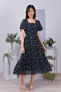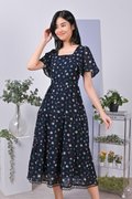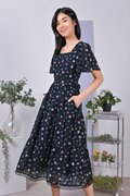 EVALYNE FLORAL LATTICE-INSERT DRESS IN NAVY