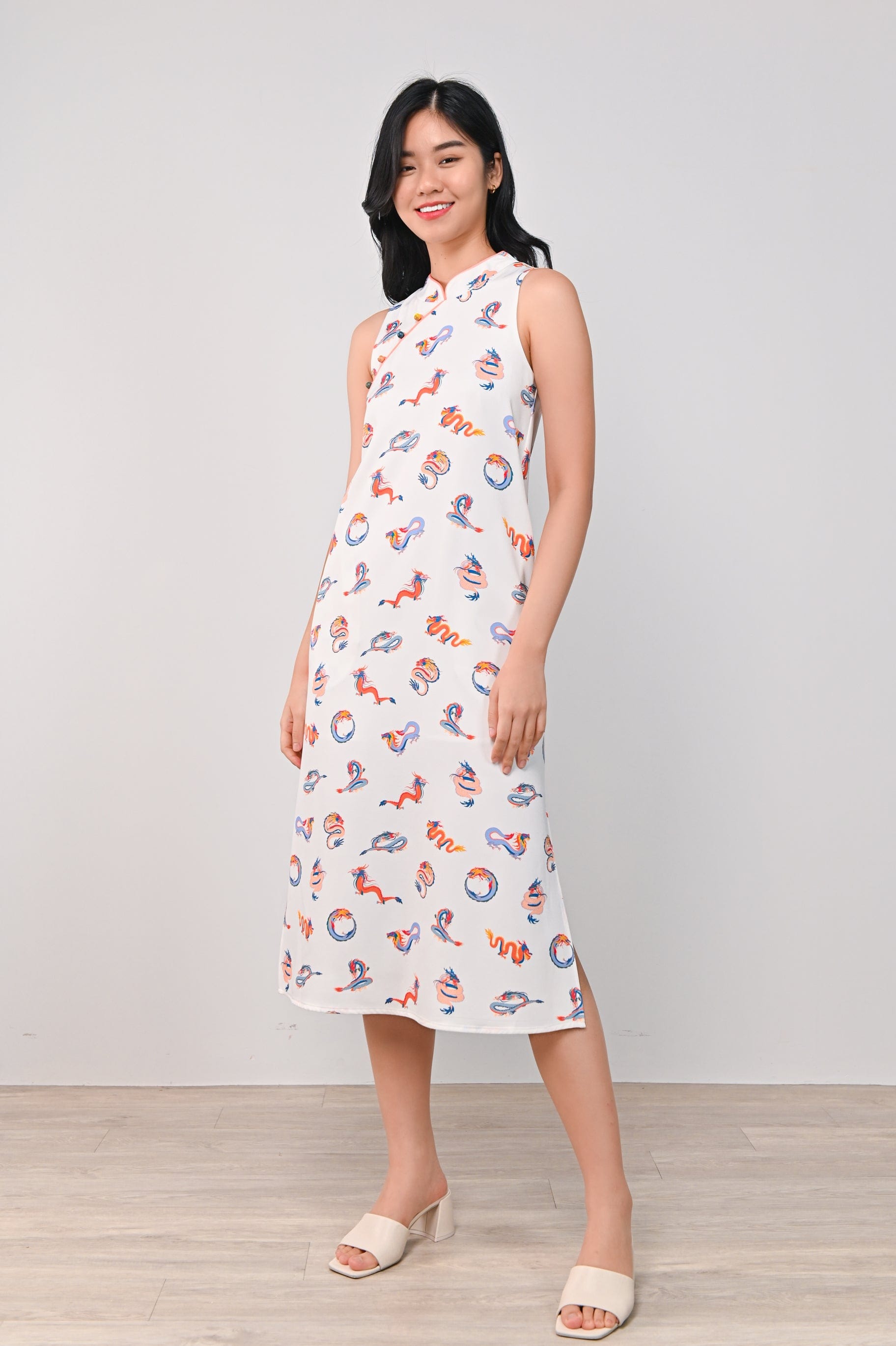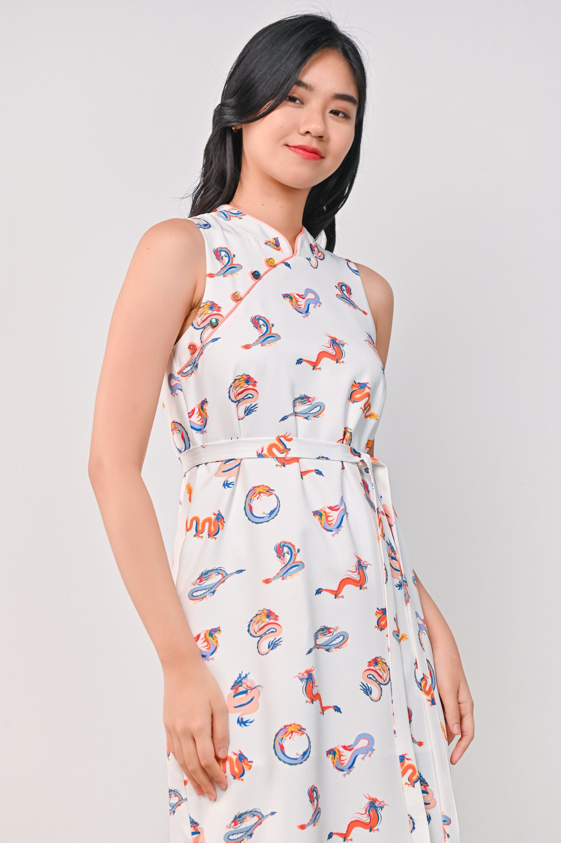 FESTIVE DRAGONS SIDE-SLIT CHEONGSAM