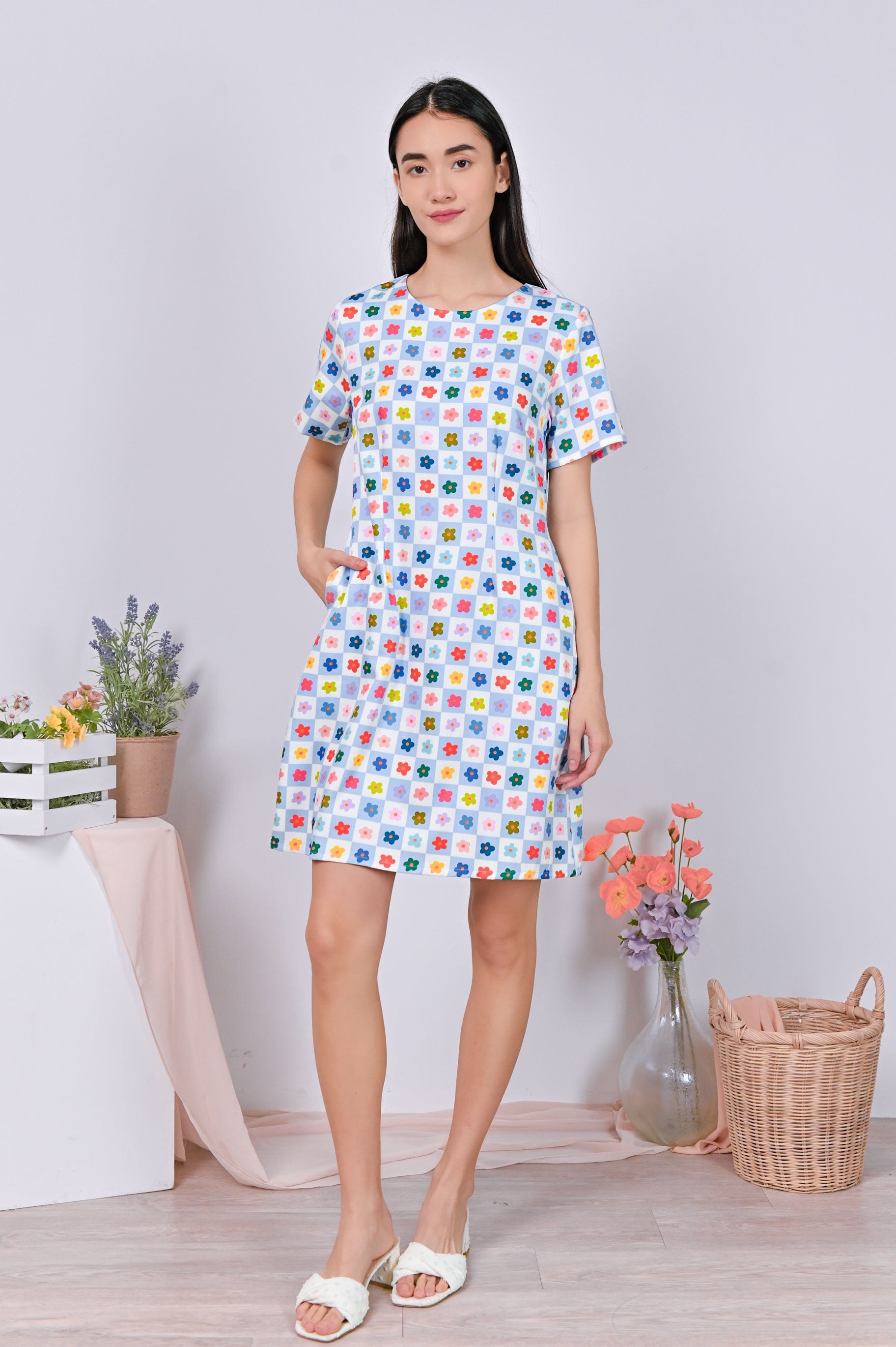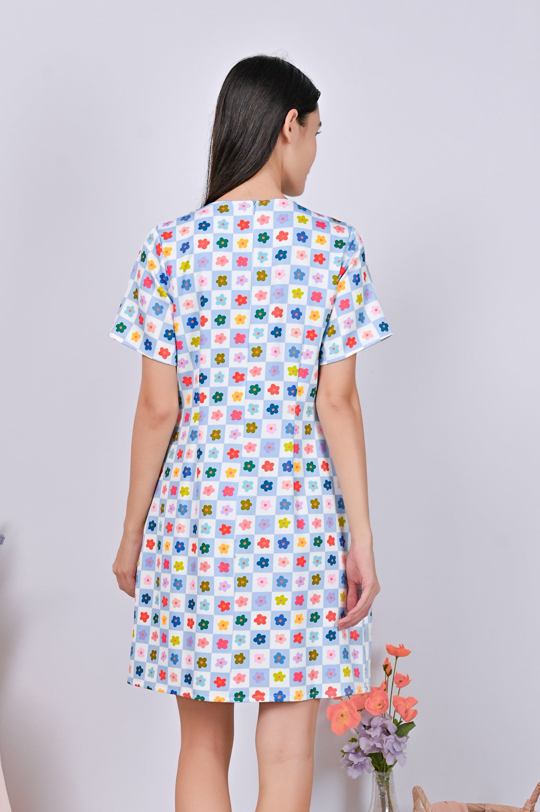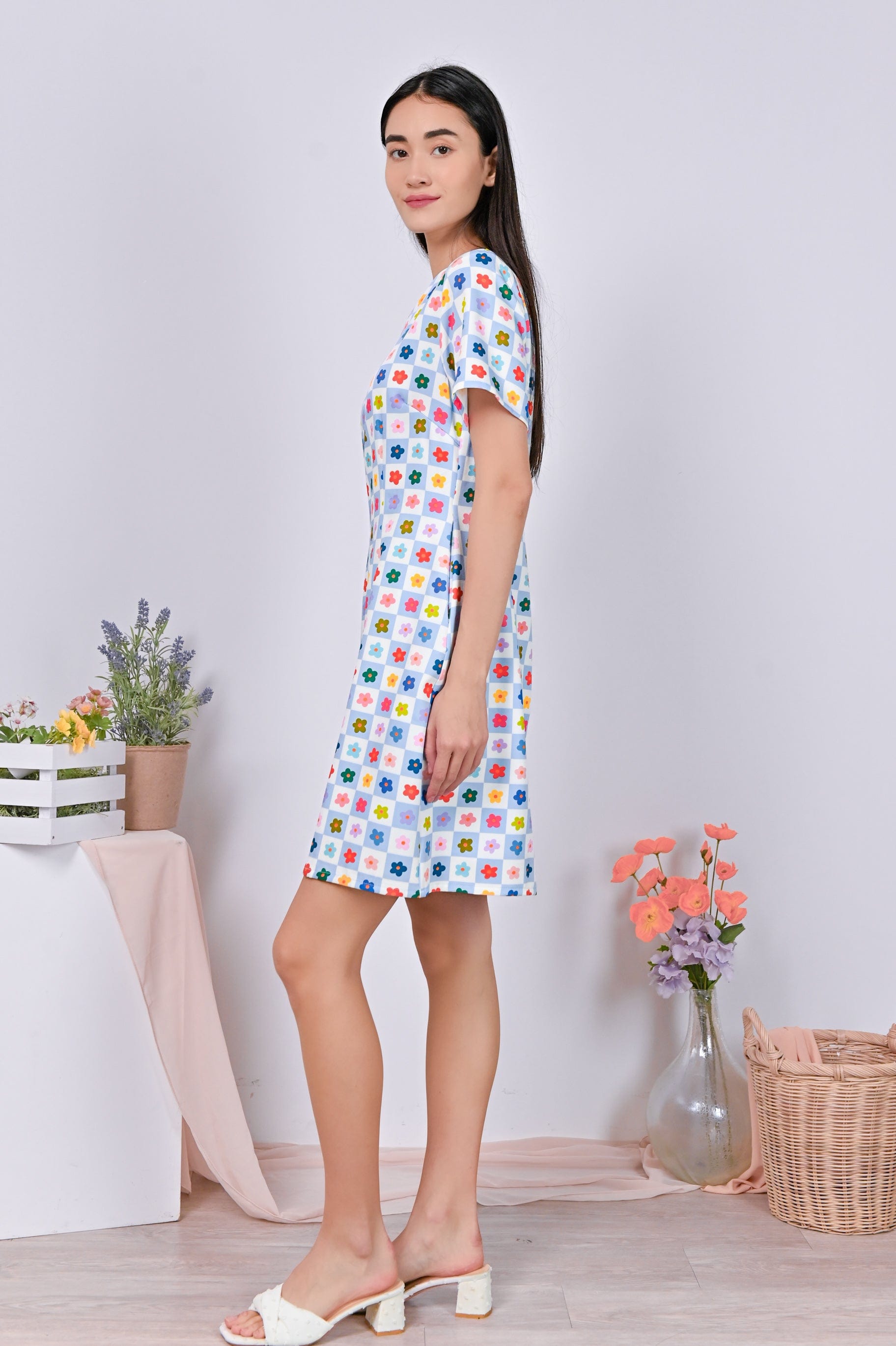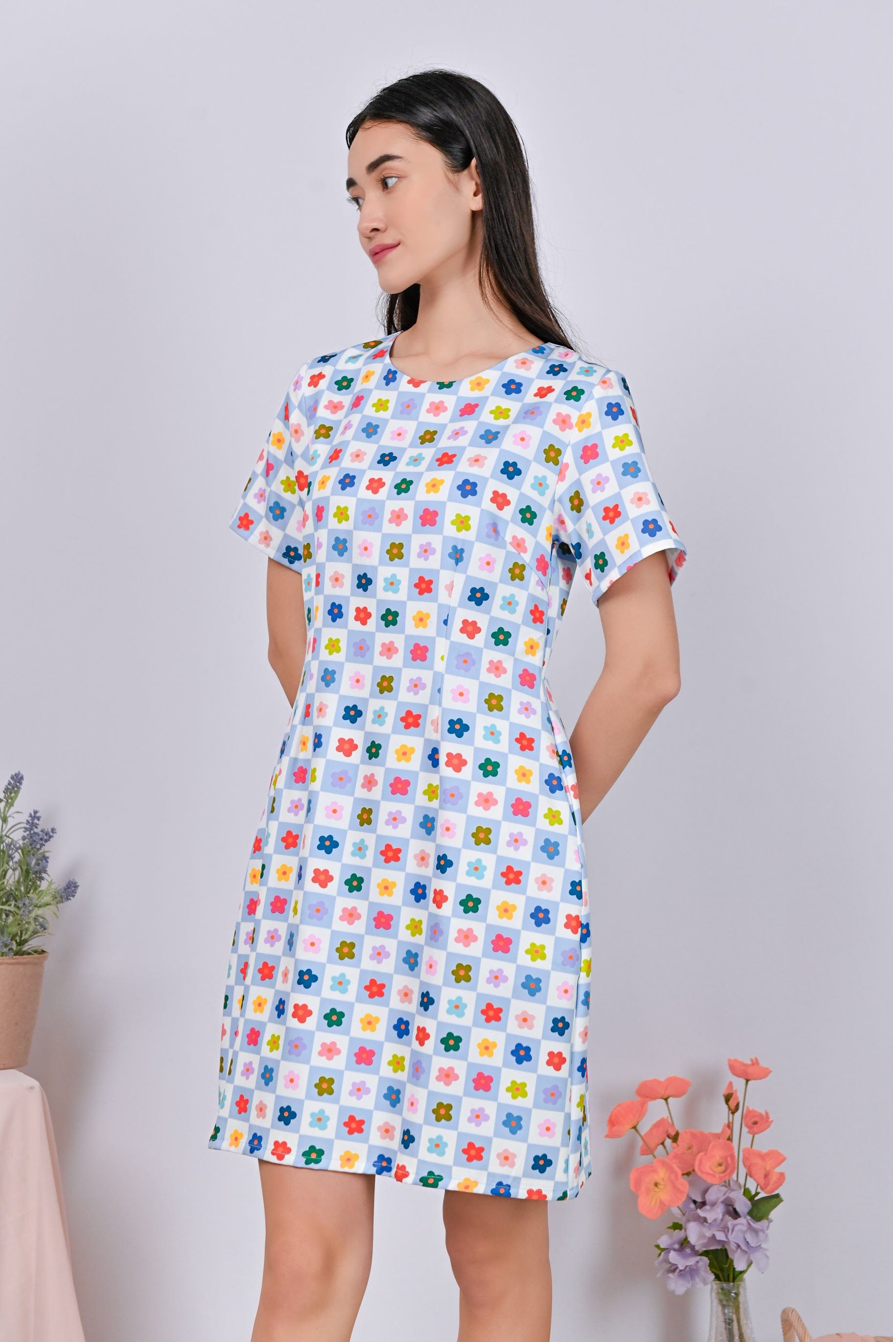 GOOD GRID SLEEVED DRESS
