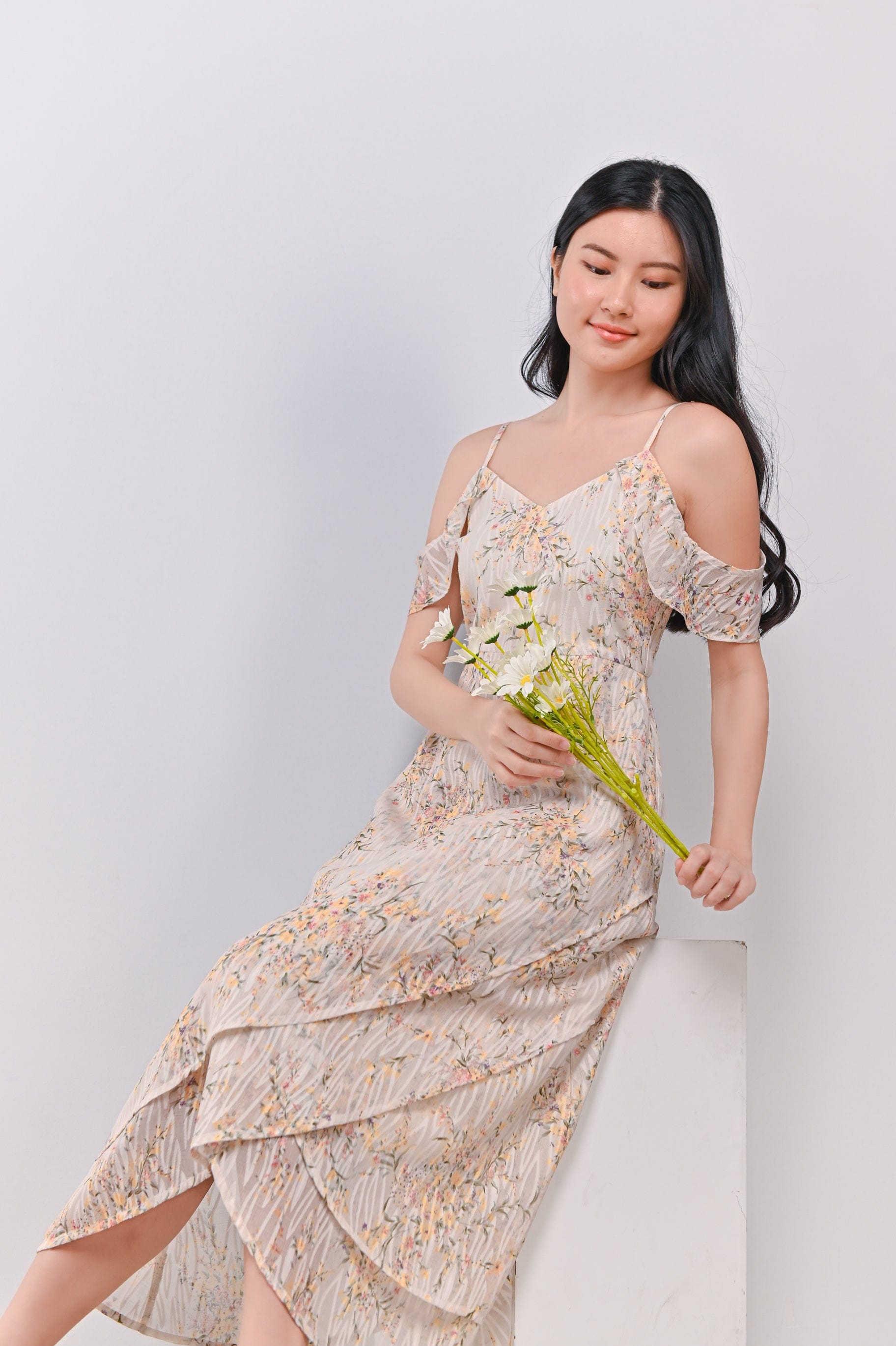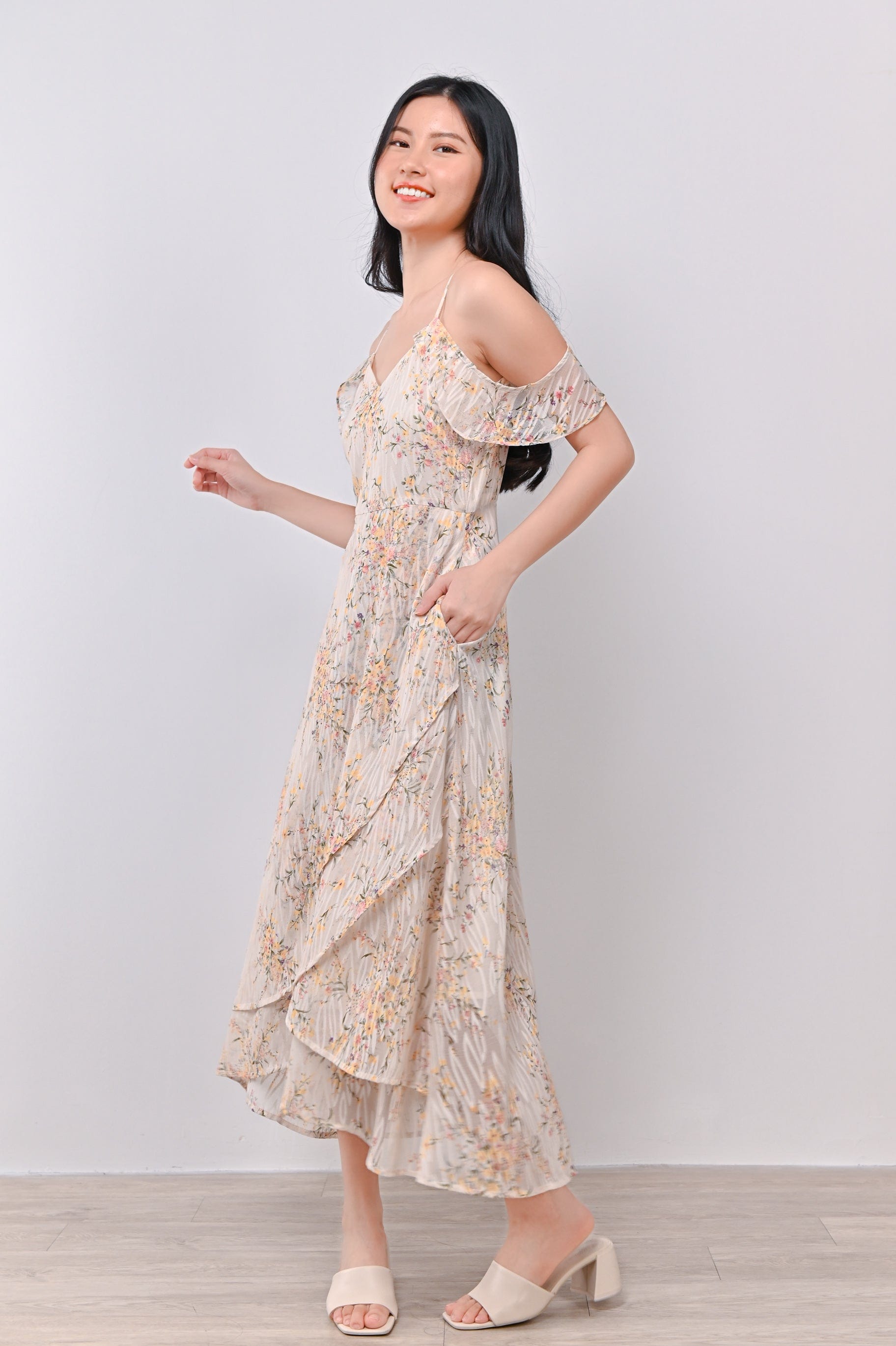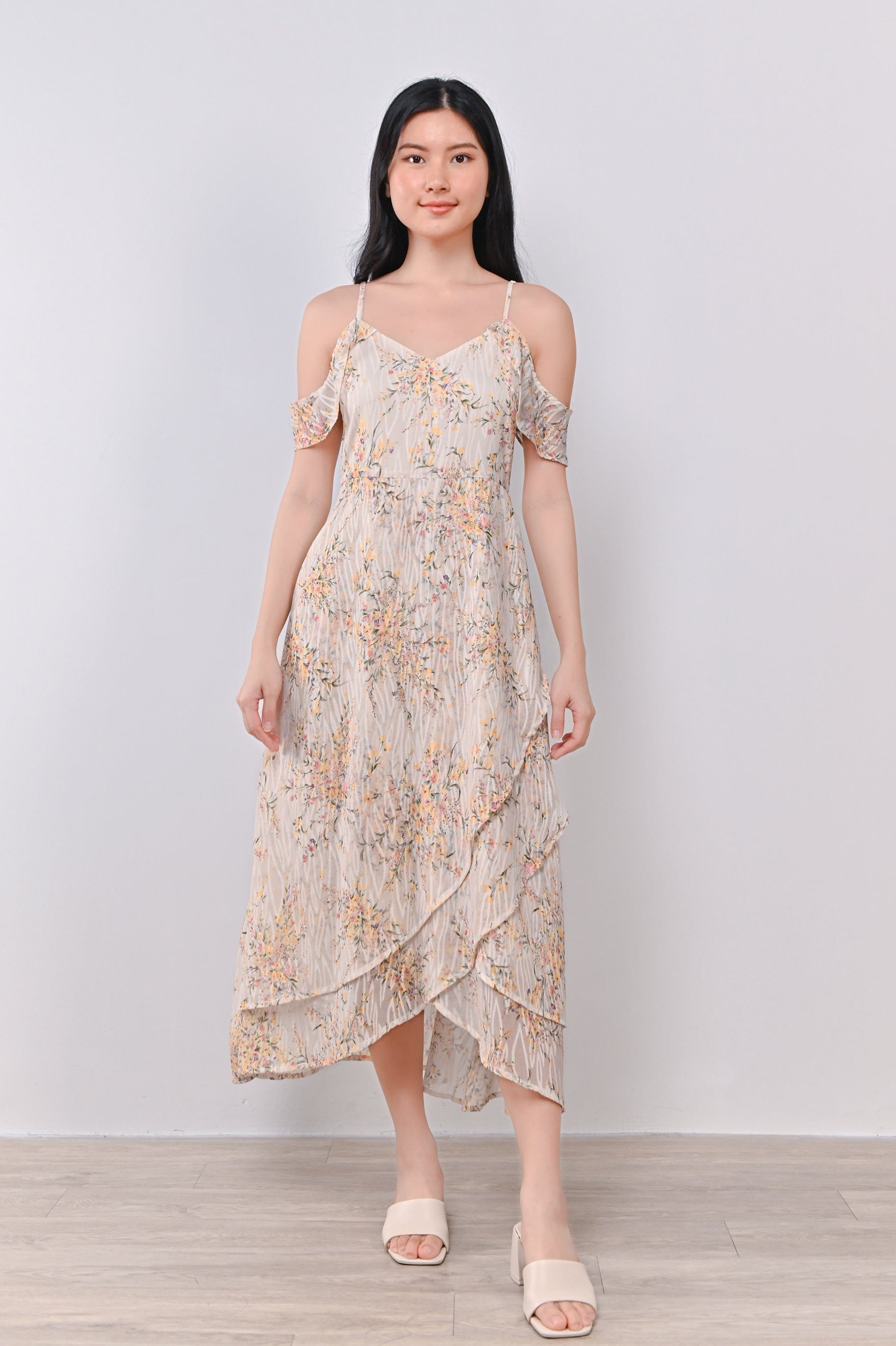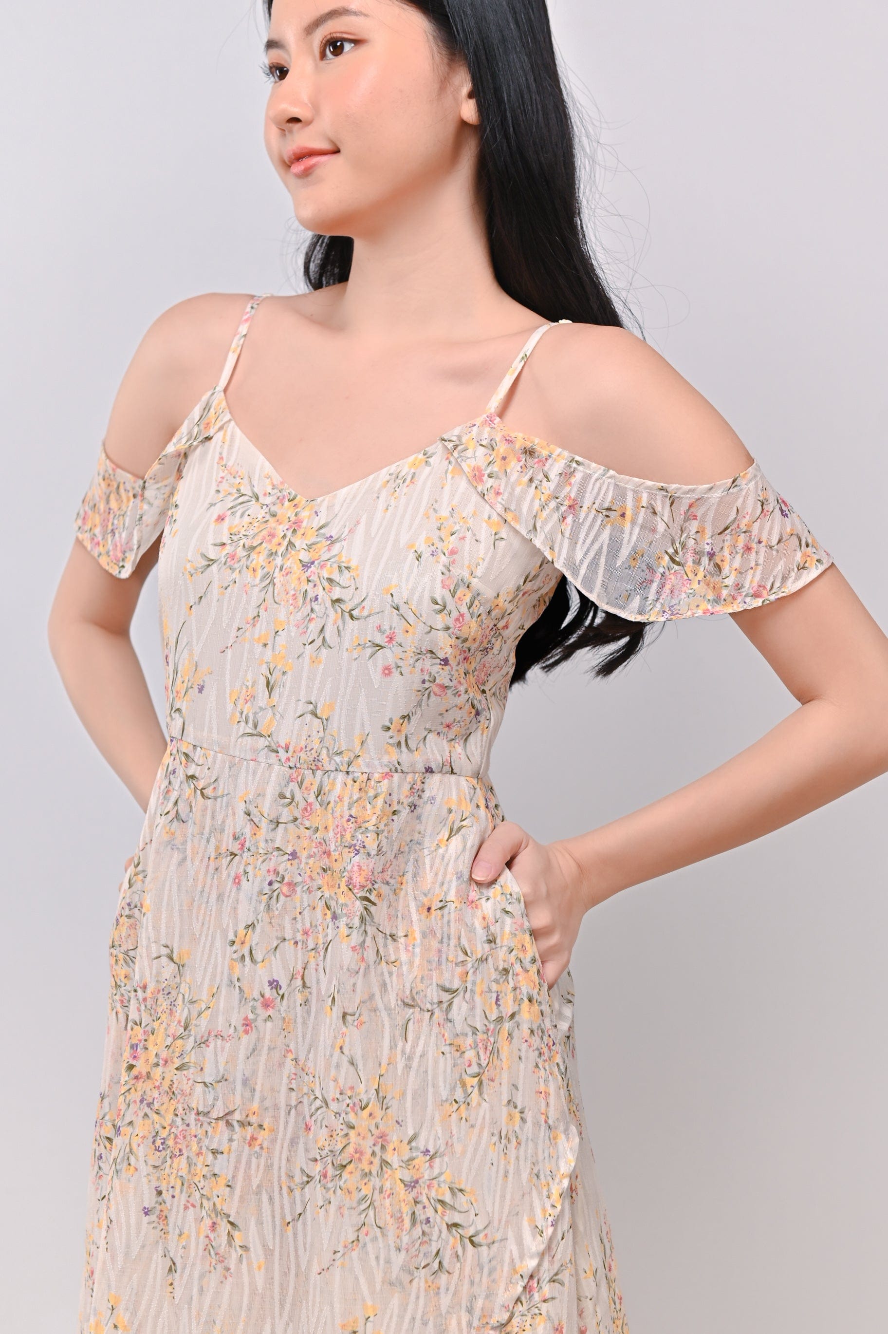 HALEY COLD-SHOULDER DRESS IN CREAM