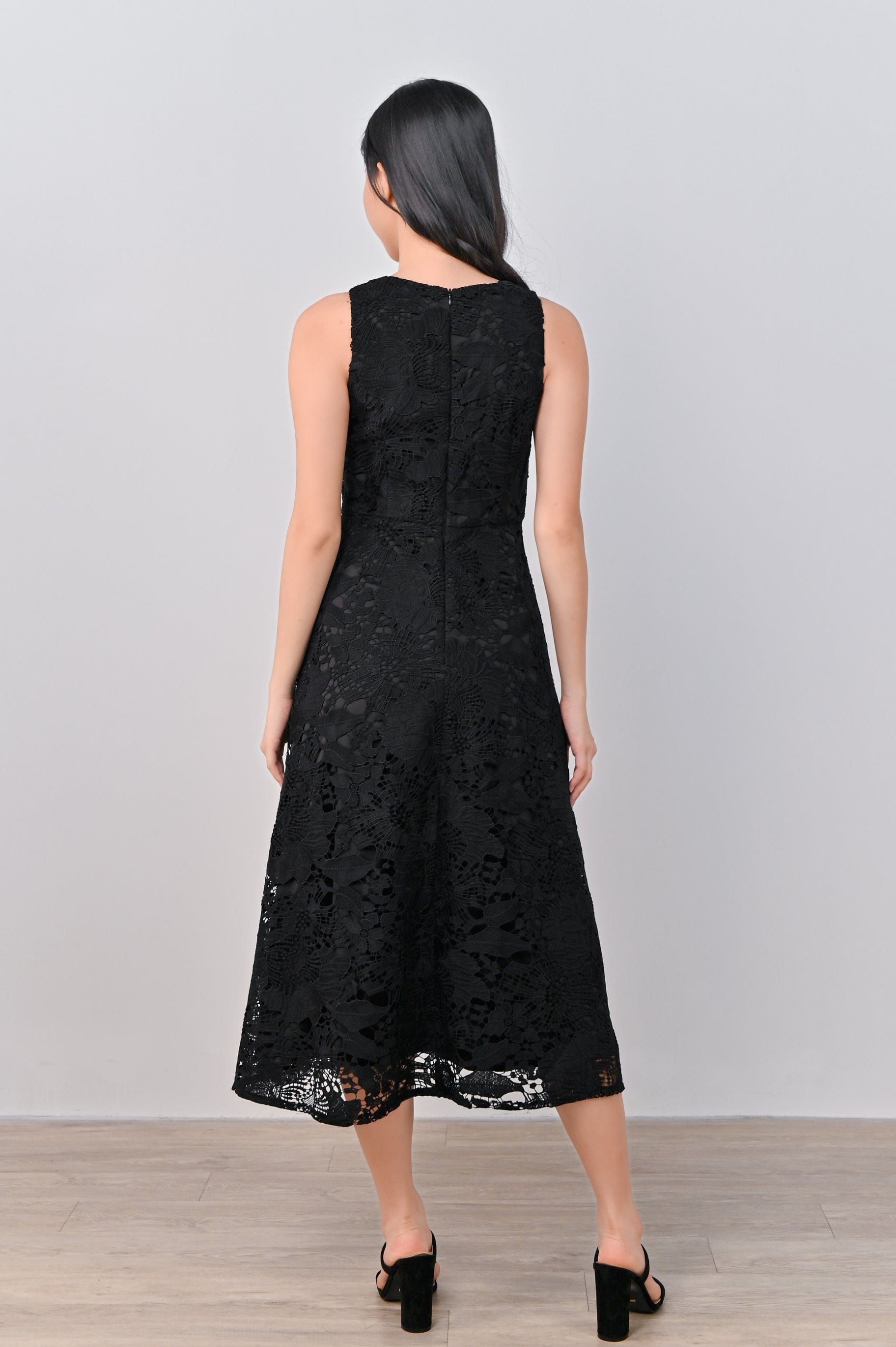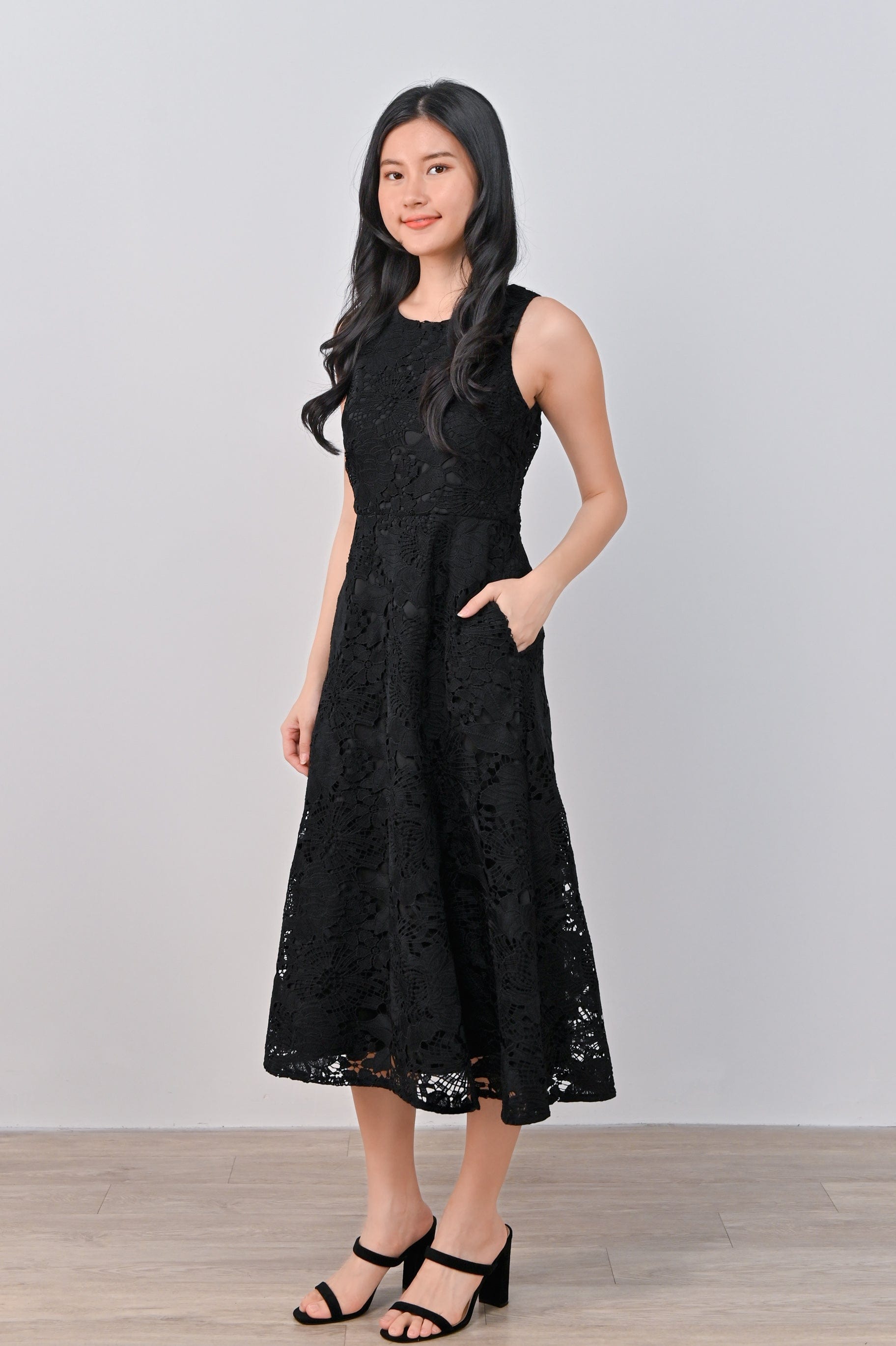 HAPE CROCHET MIDI DRESS IN BLACK
