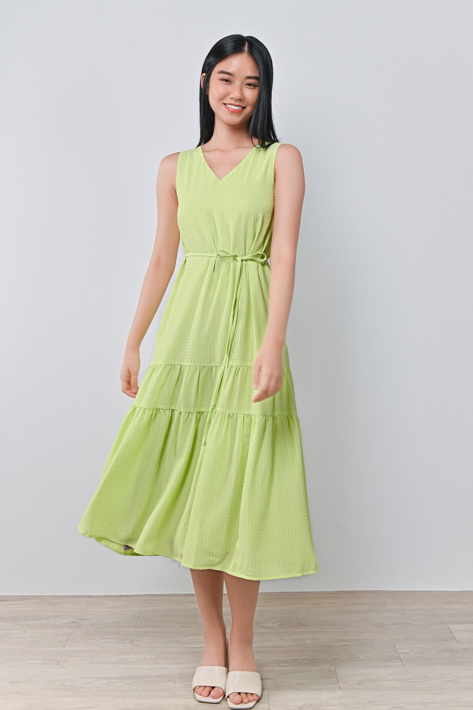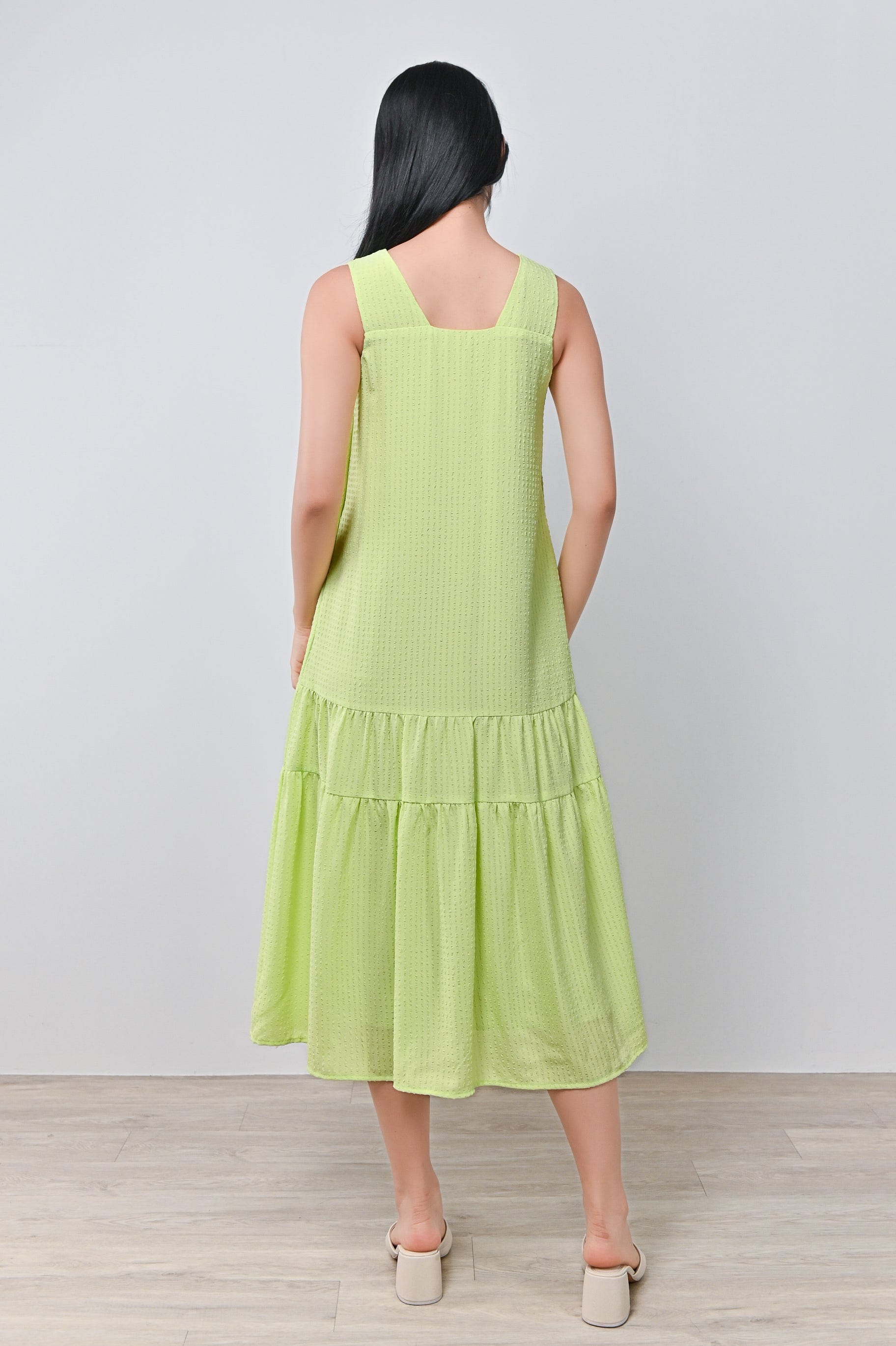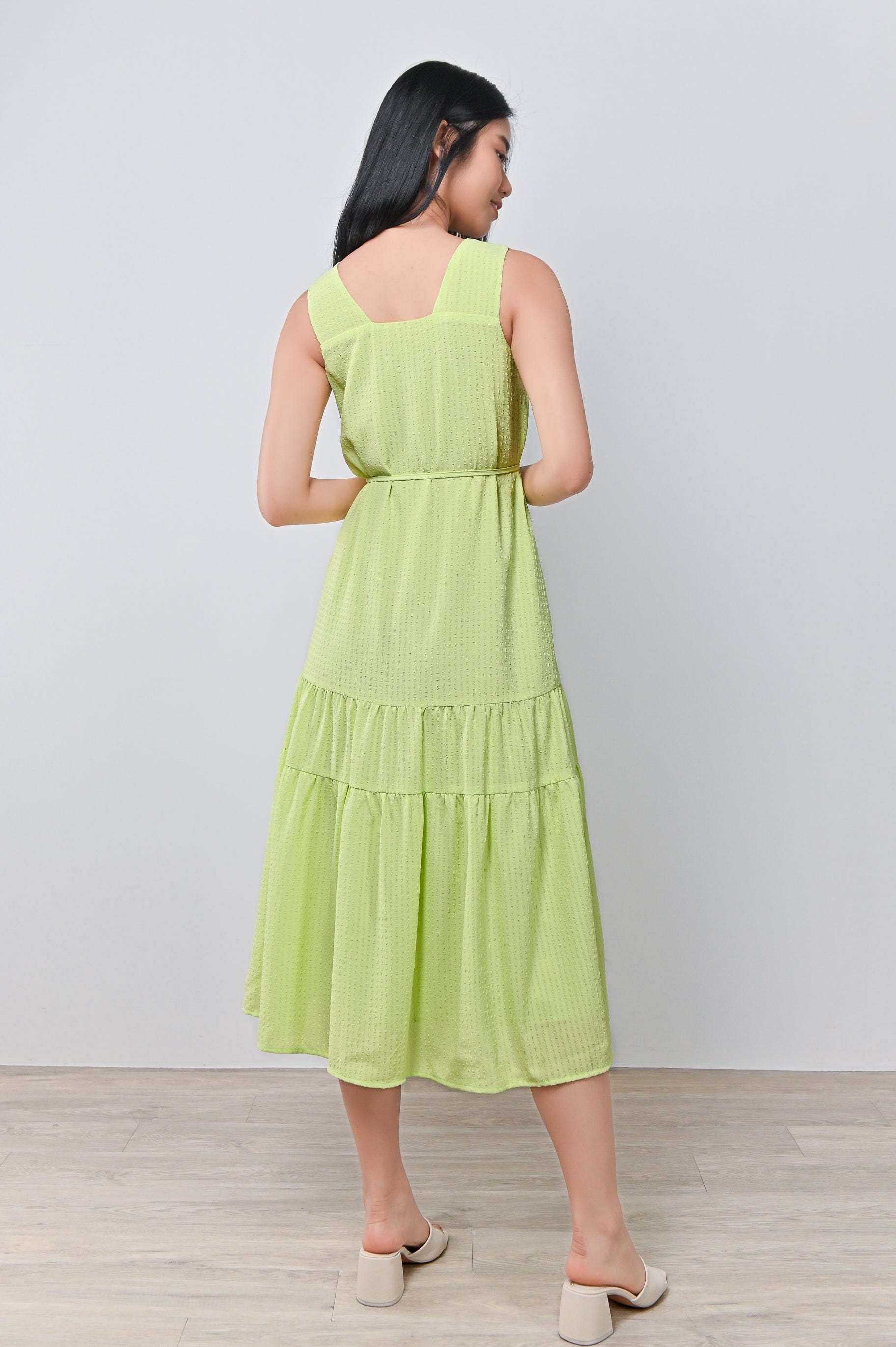 HARIN TWO-WAY TIERED DRESS IN LIME