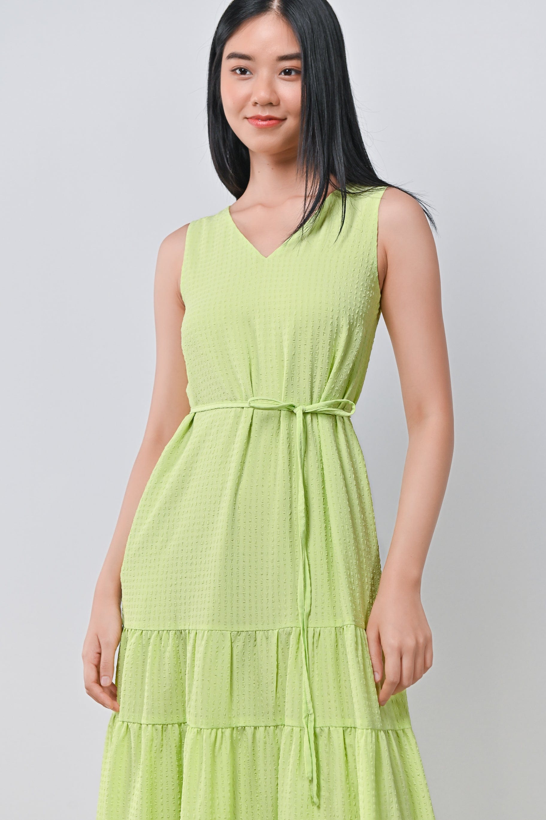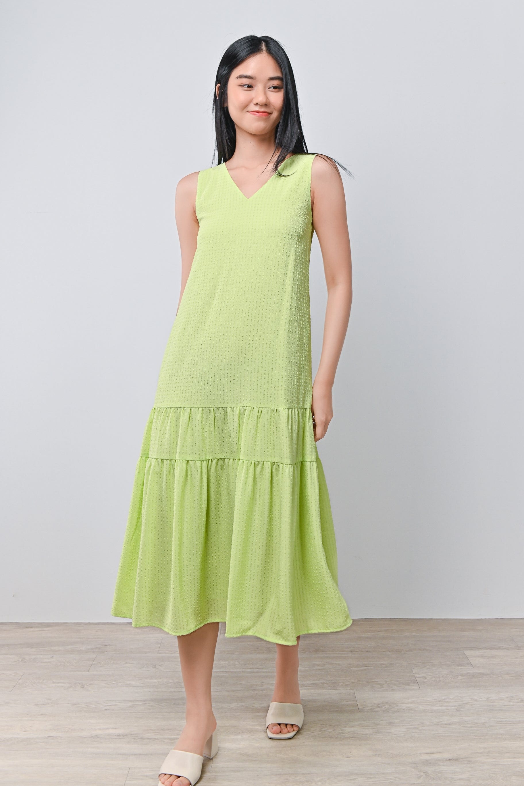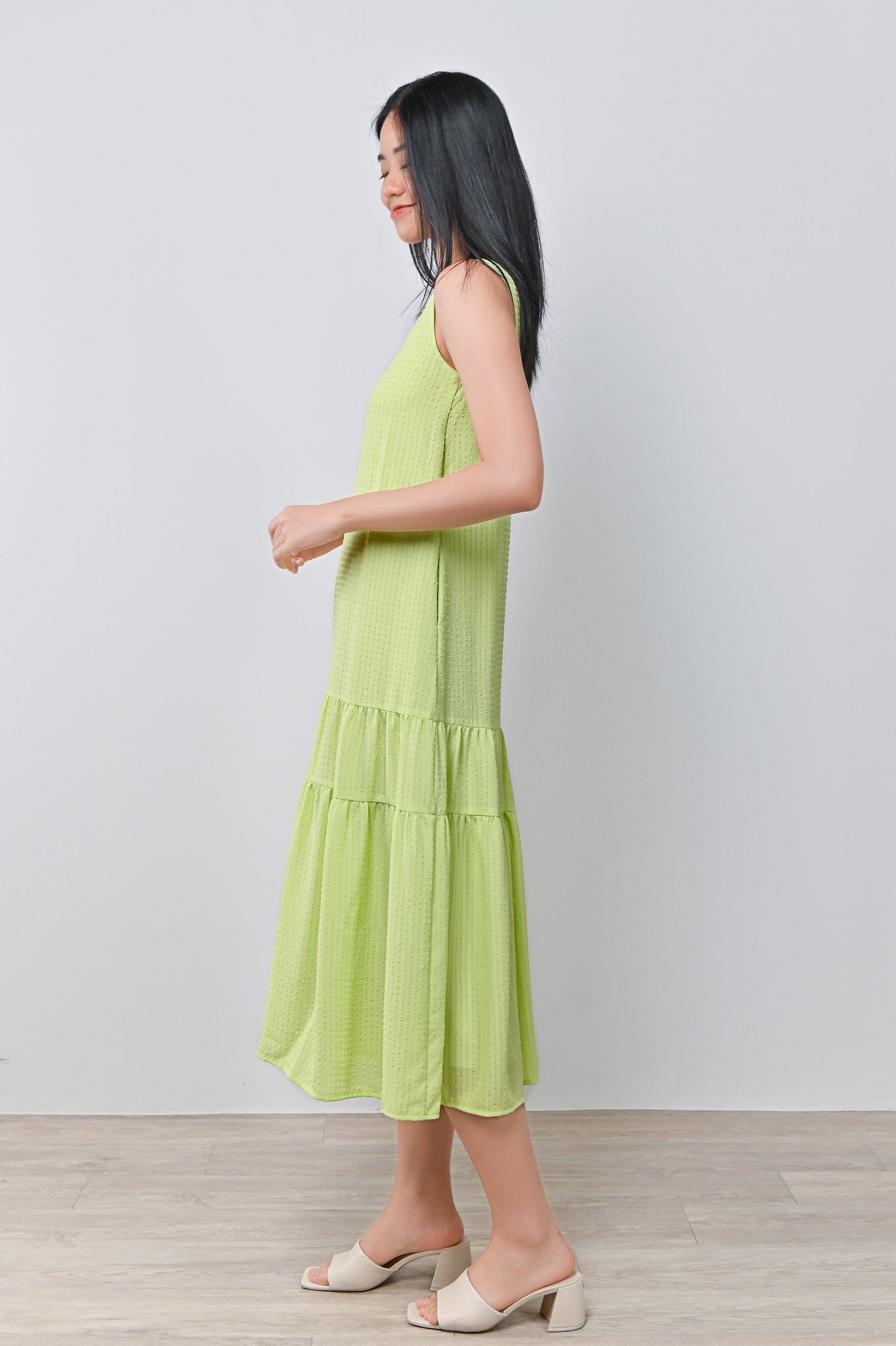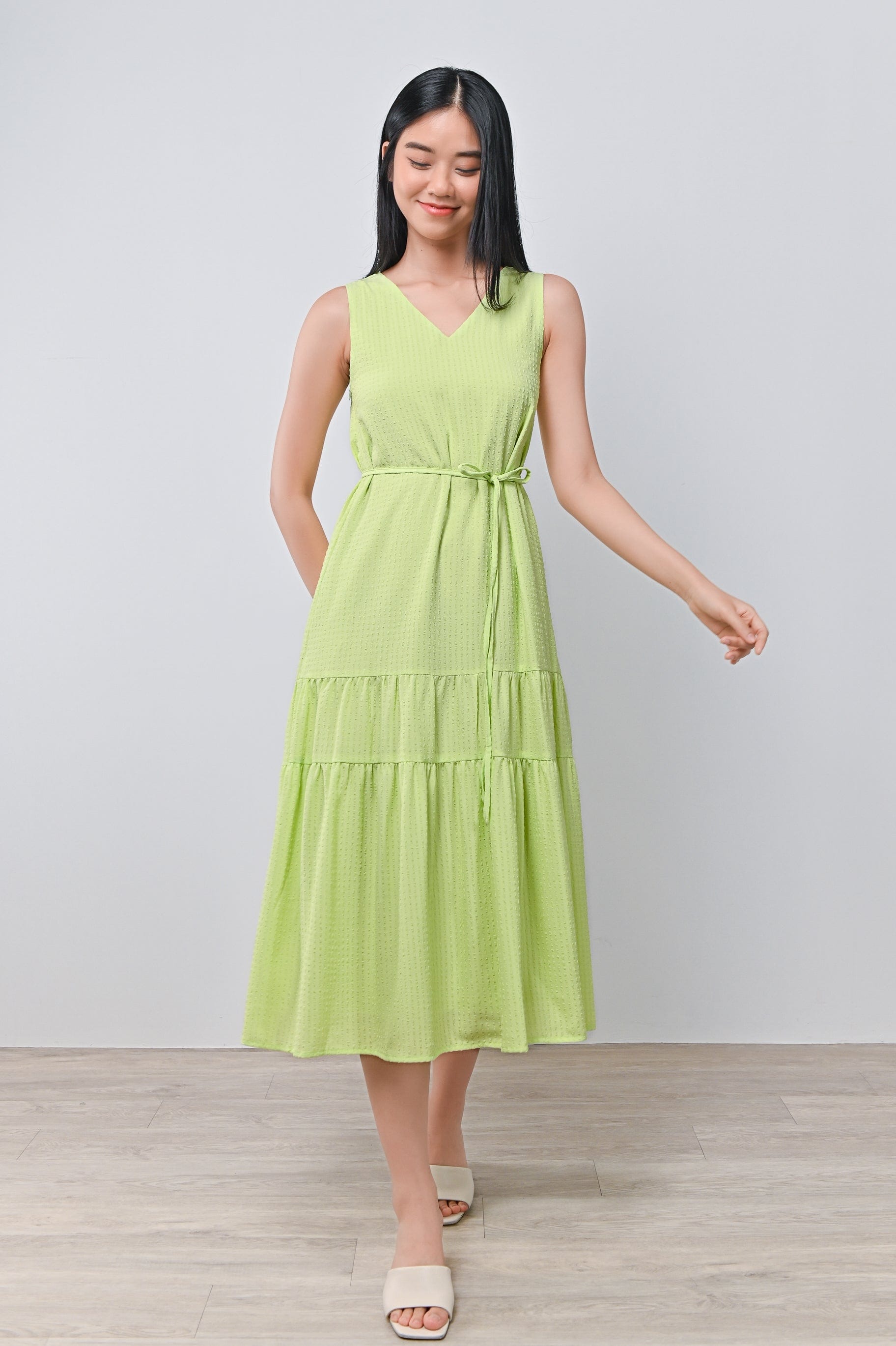 HARIN TWO-WAY TIERED DRESS IN LIME