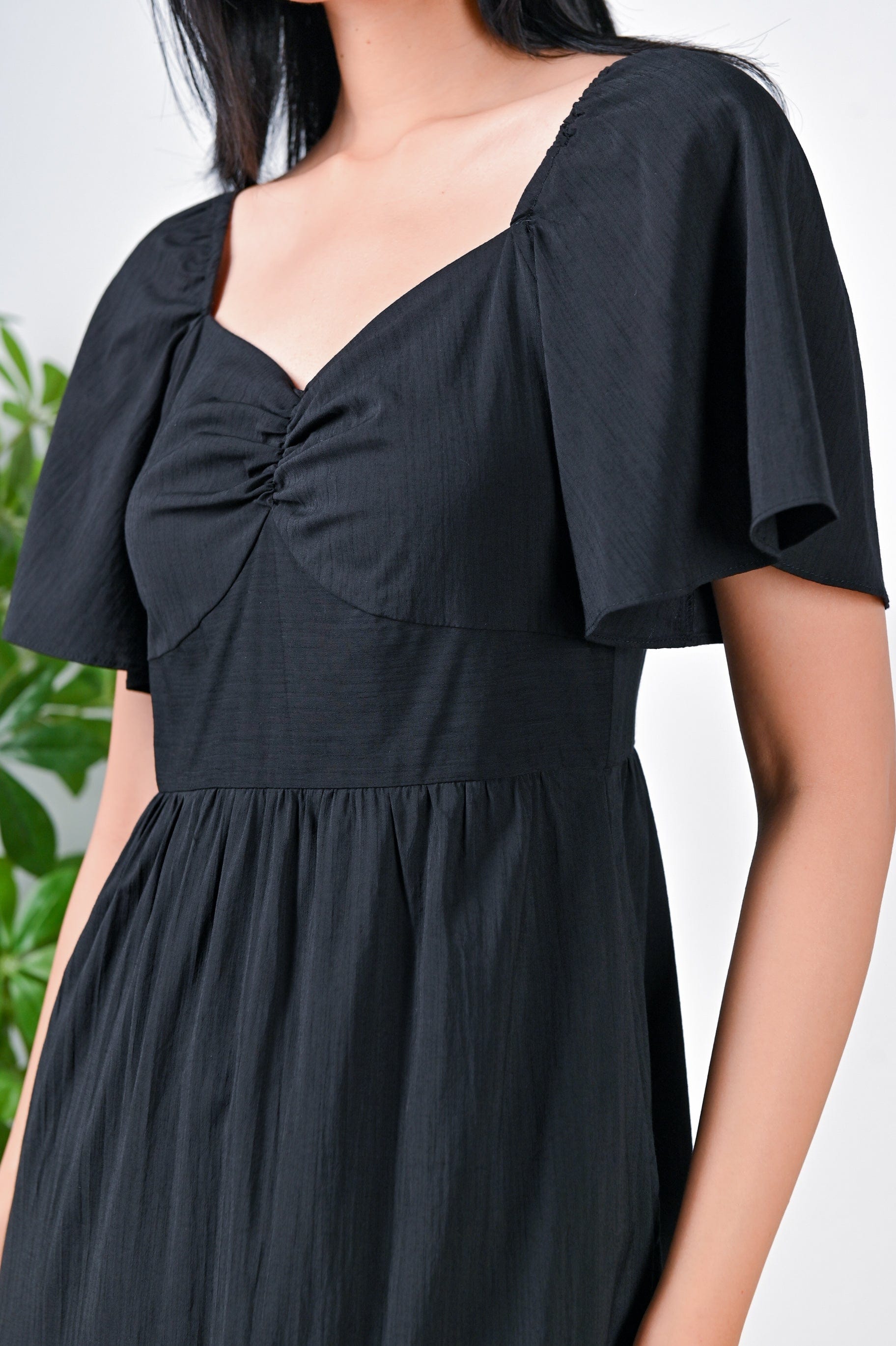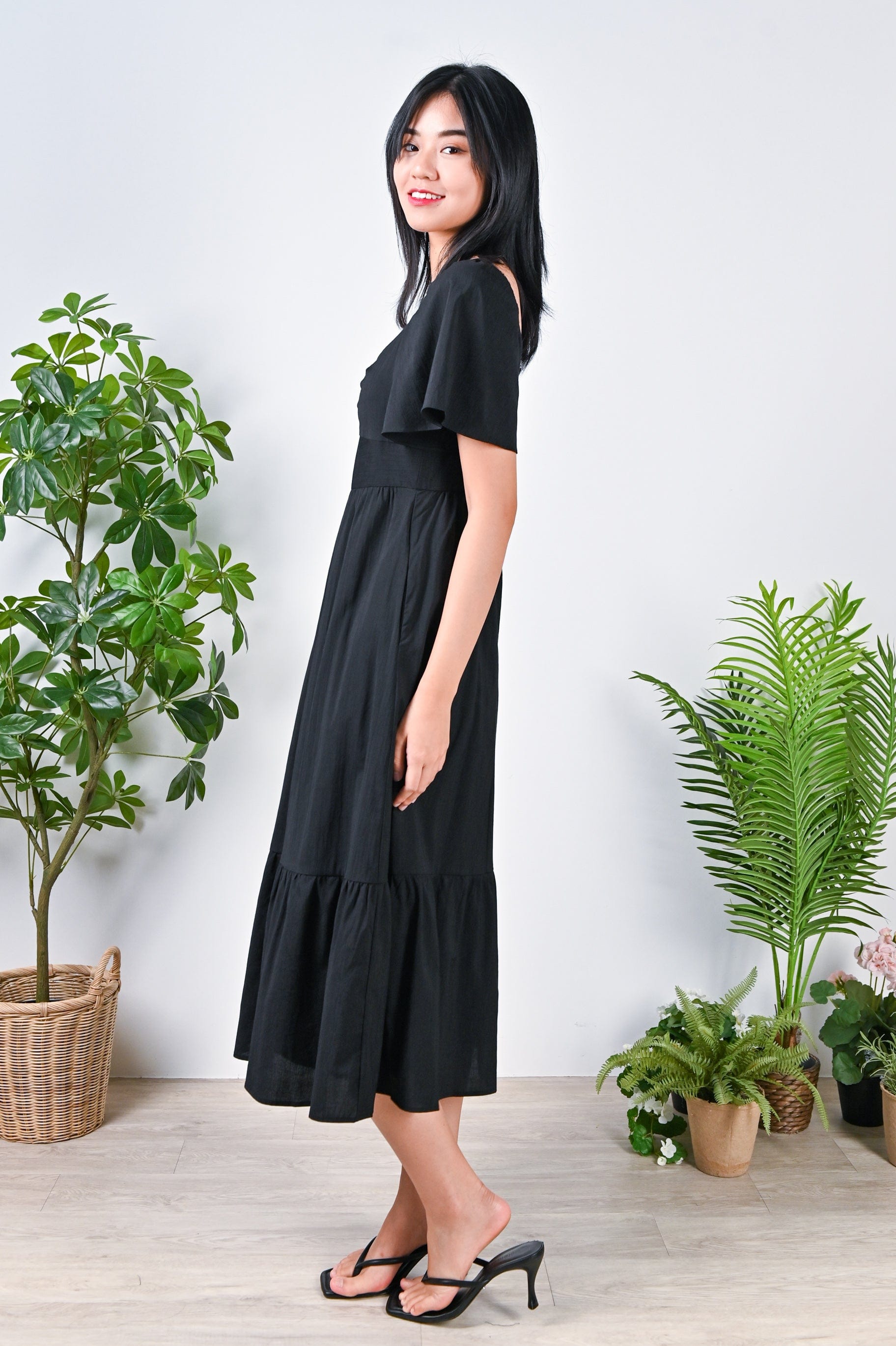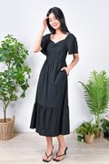 ISABELLE SWEETHEART MIDI DRESS IN BLACK