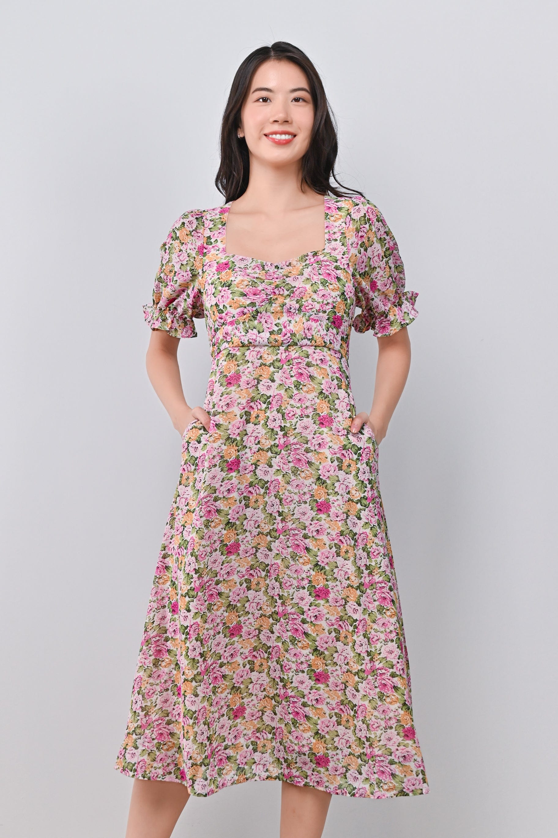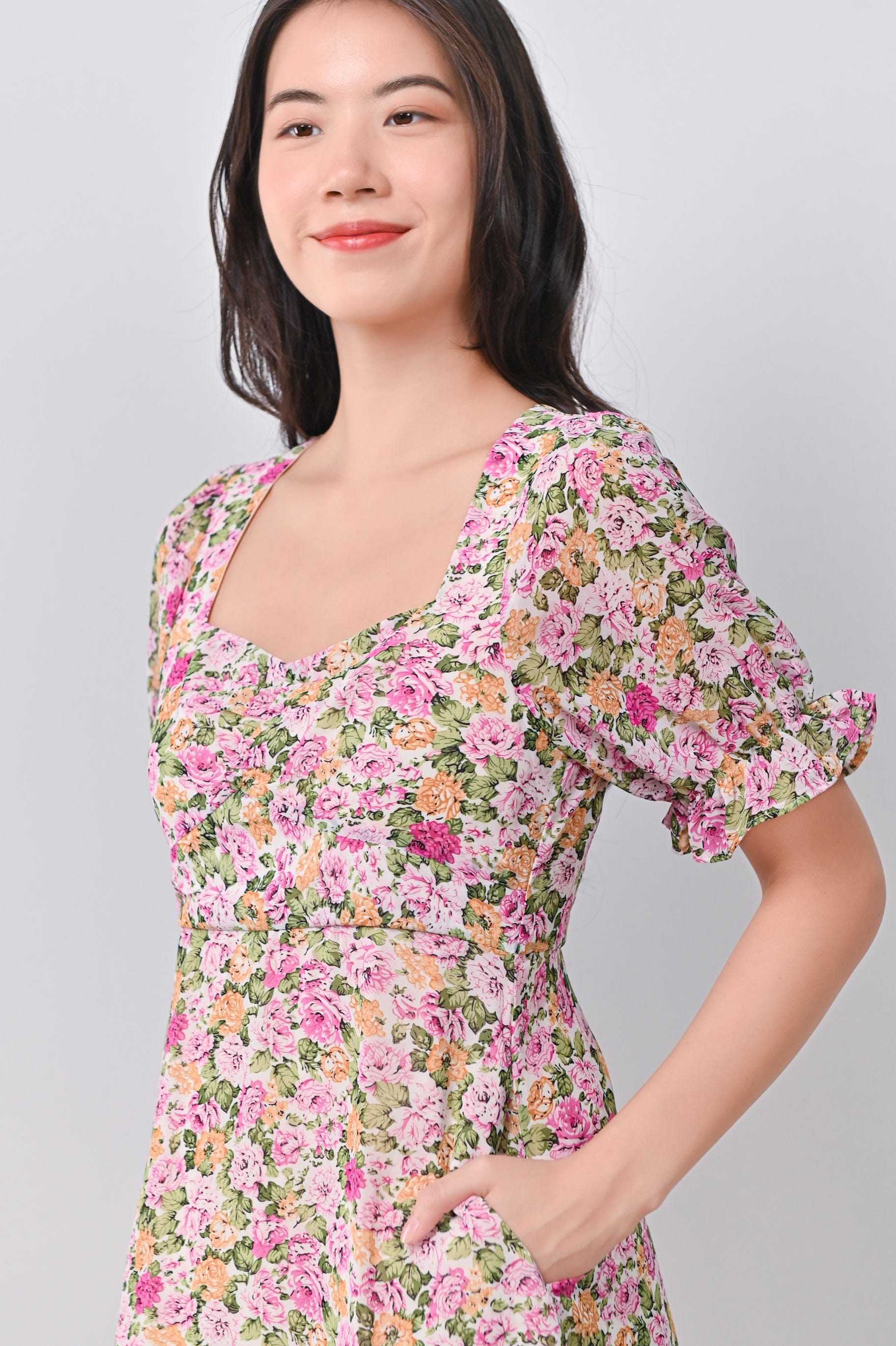 JAEHWA FLORAL SWEETHEART DRESS IN PINK