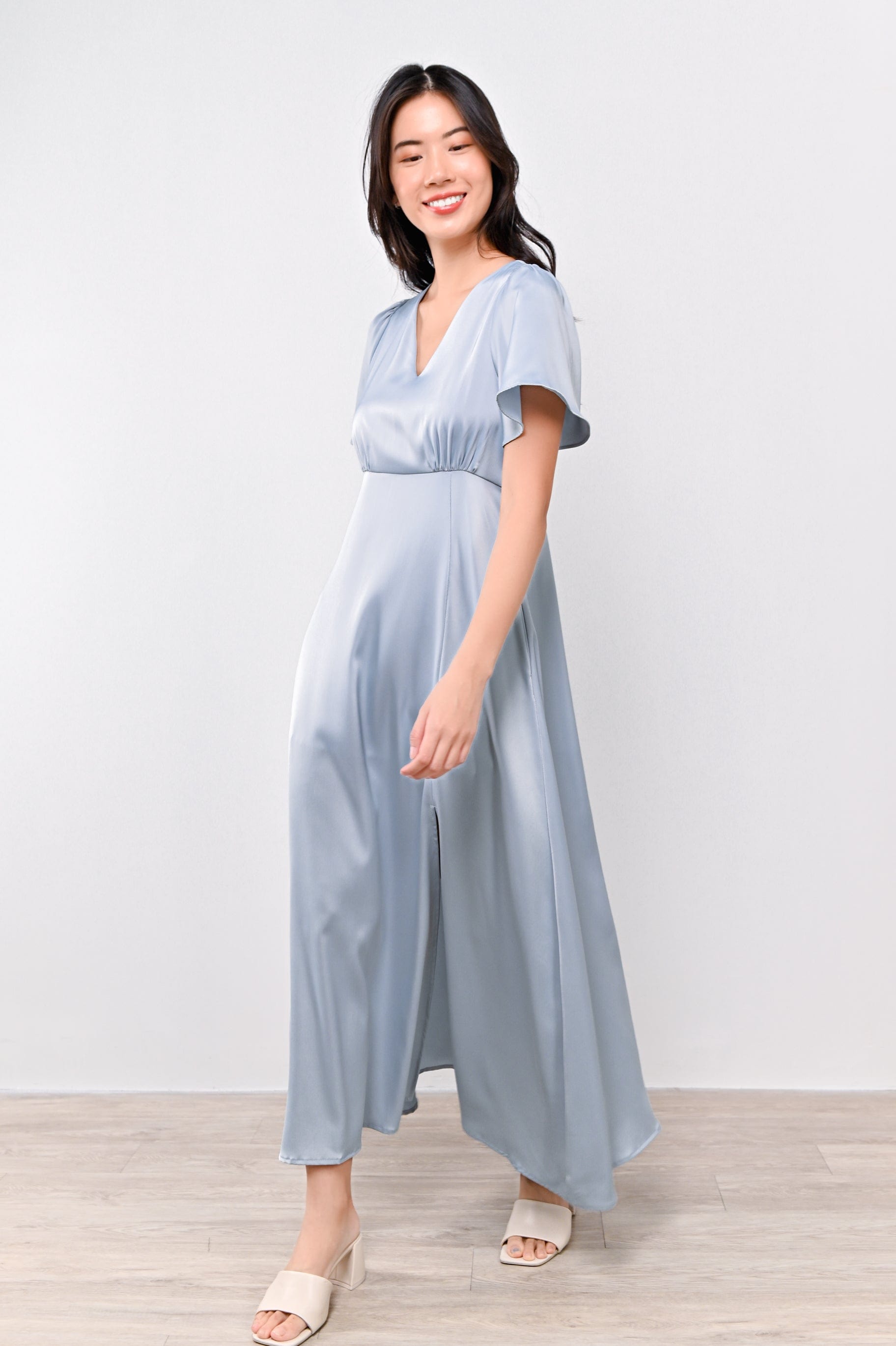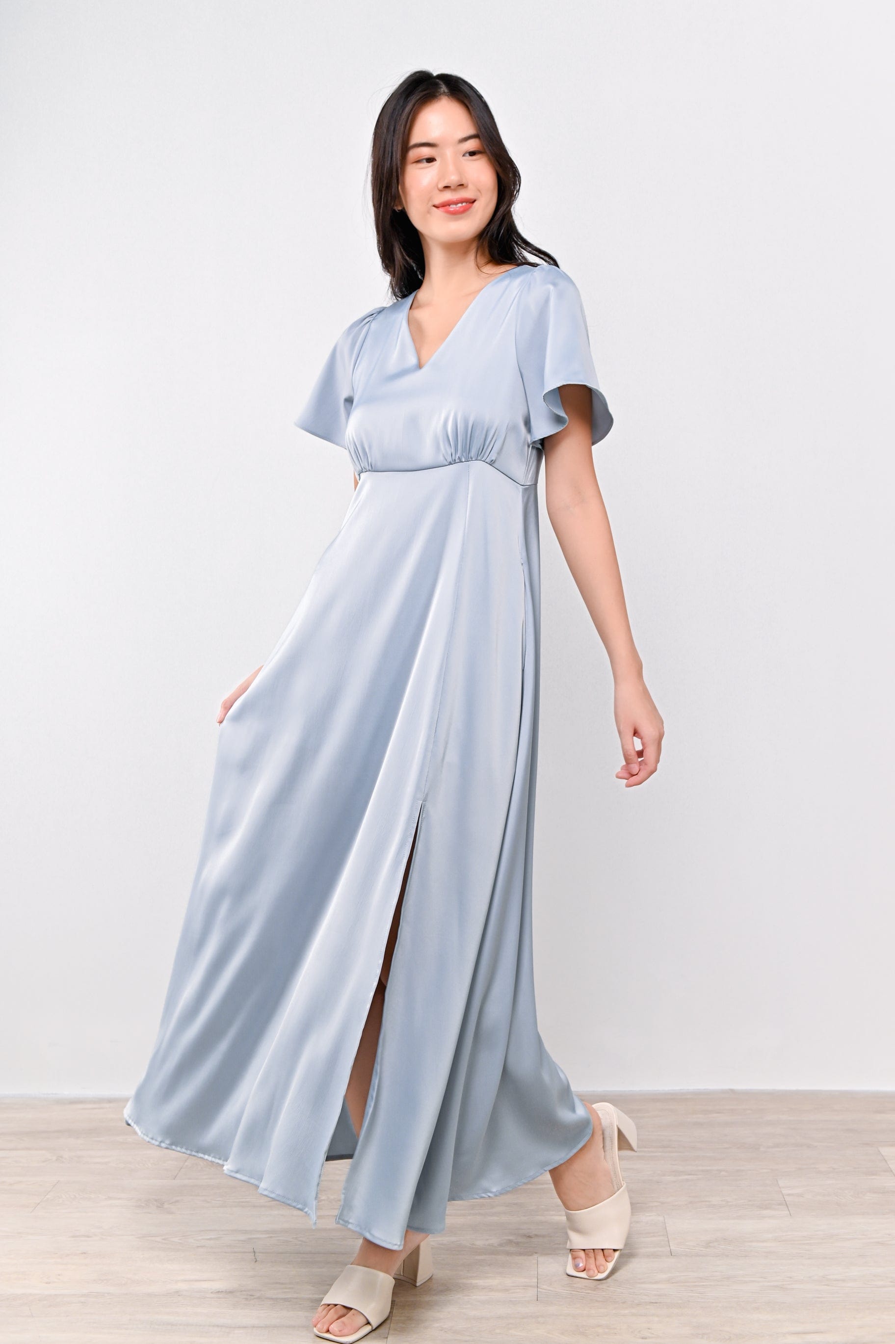 JI-AH SLEEVED MAXI DRESS IN LIGHT-BLUE