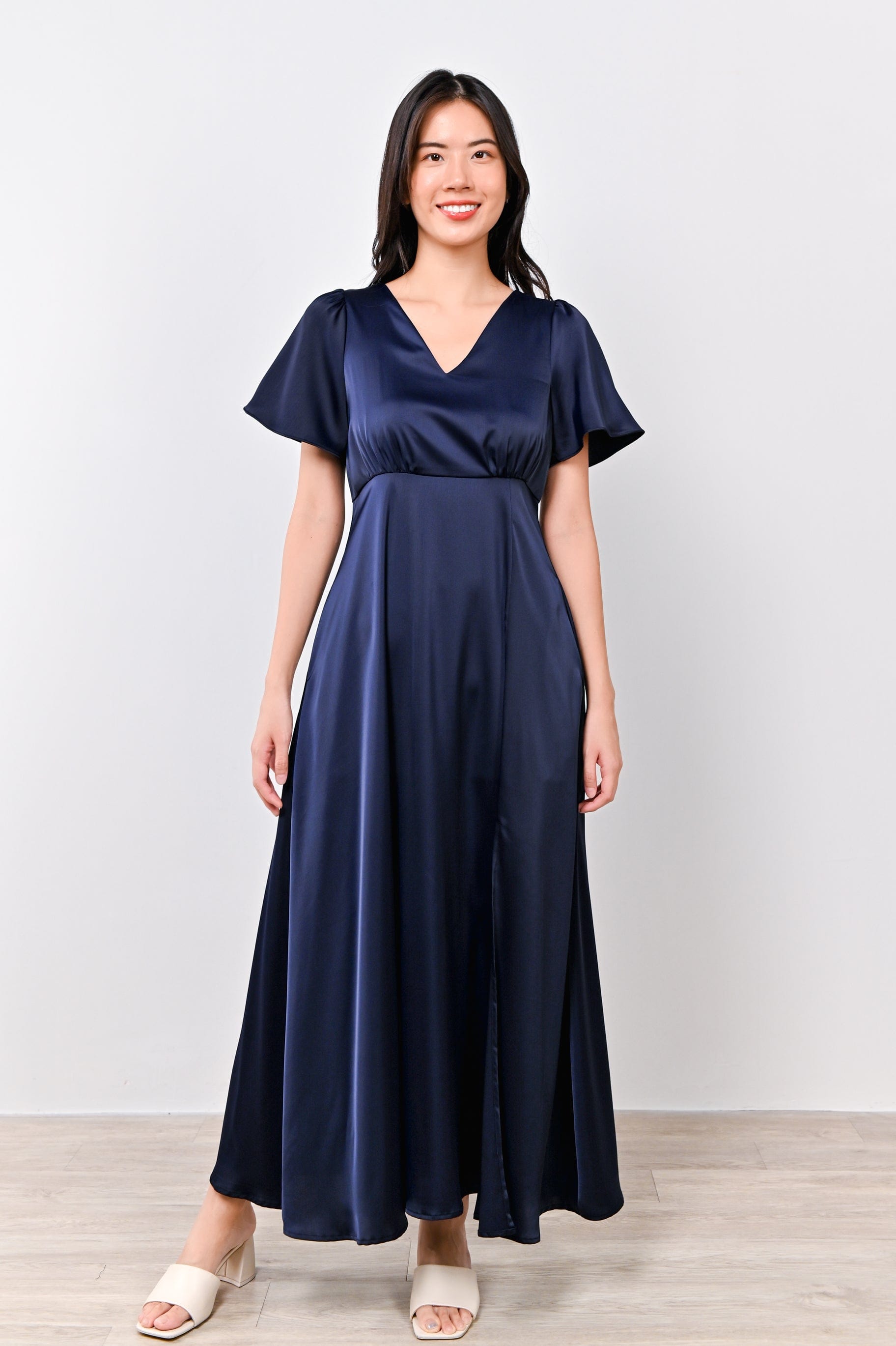 JI-AH SLEEVED MAXI DRESS IN NAVY