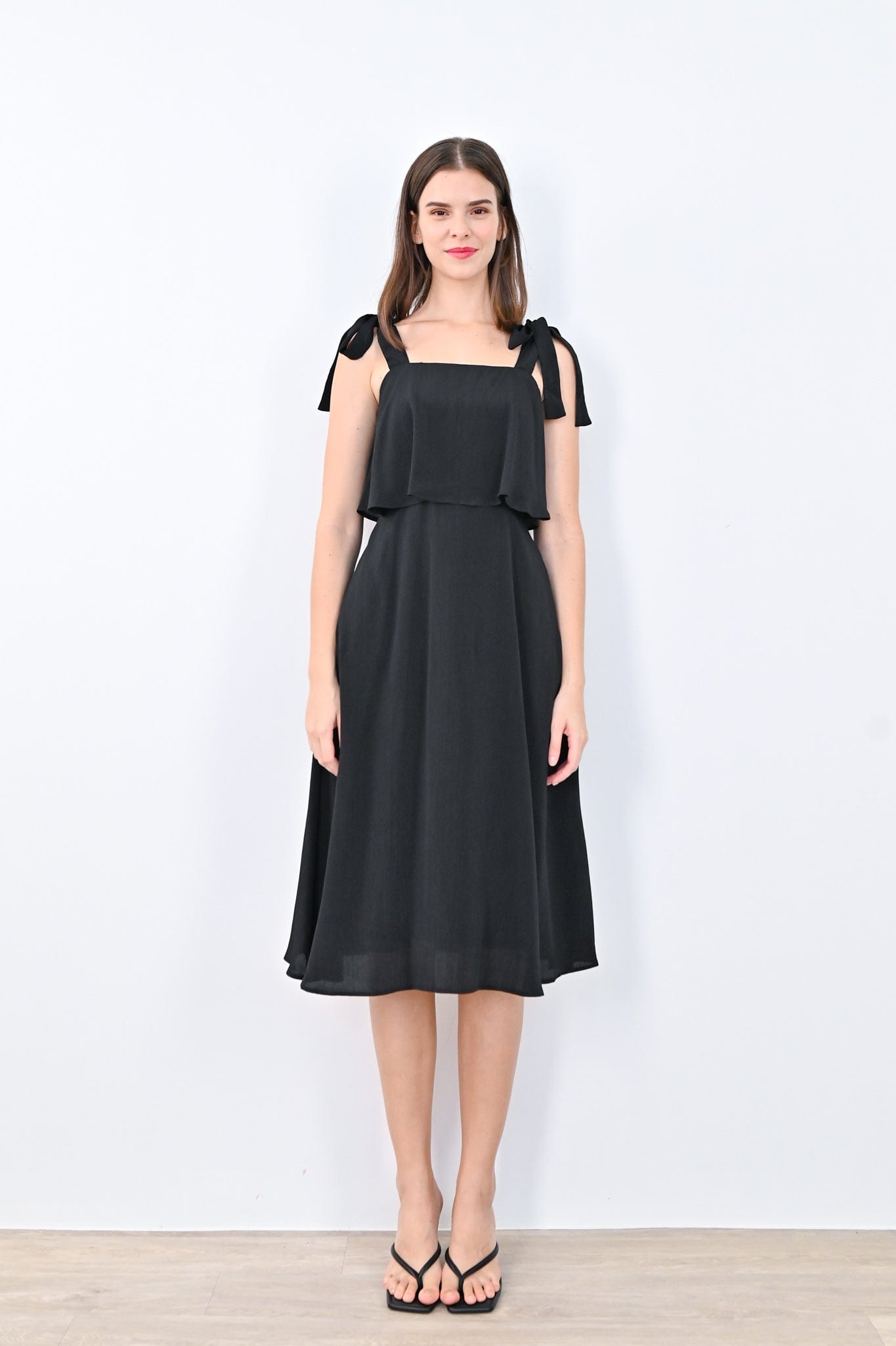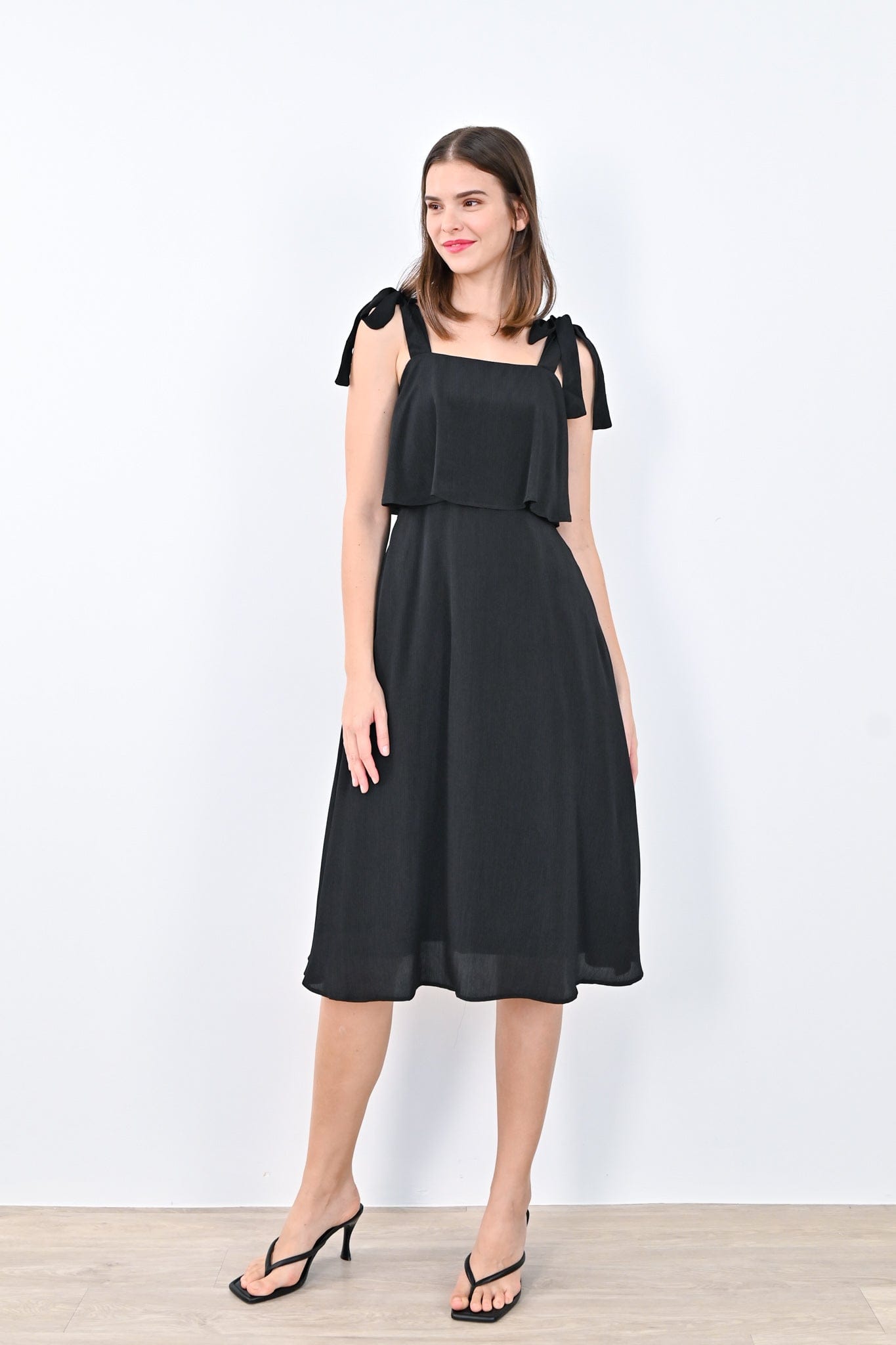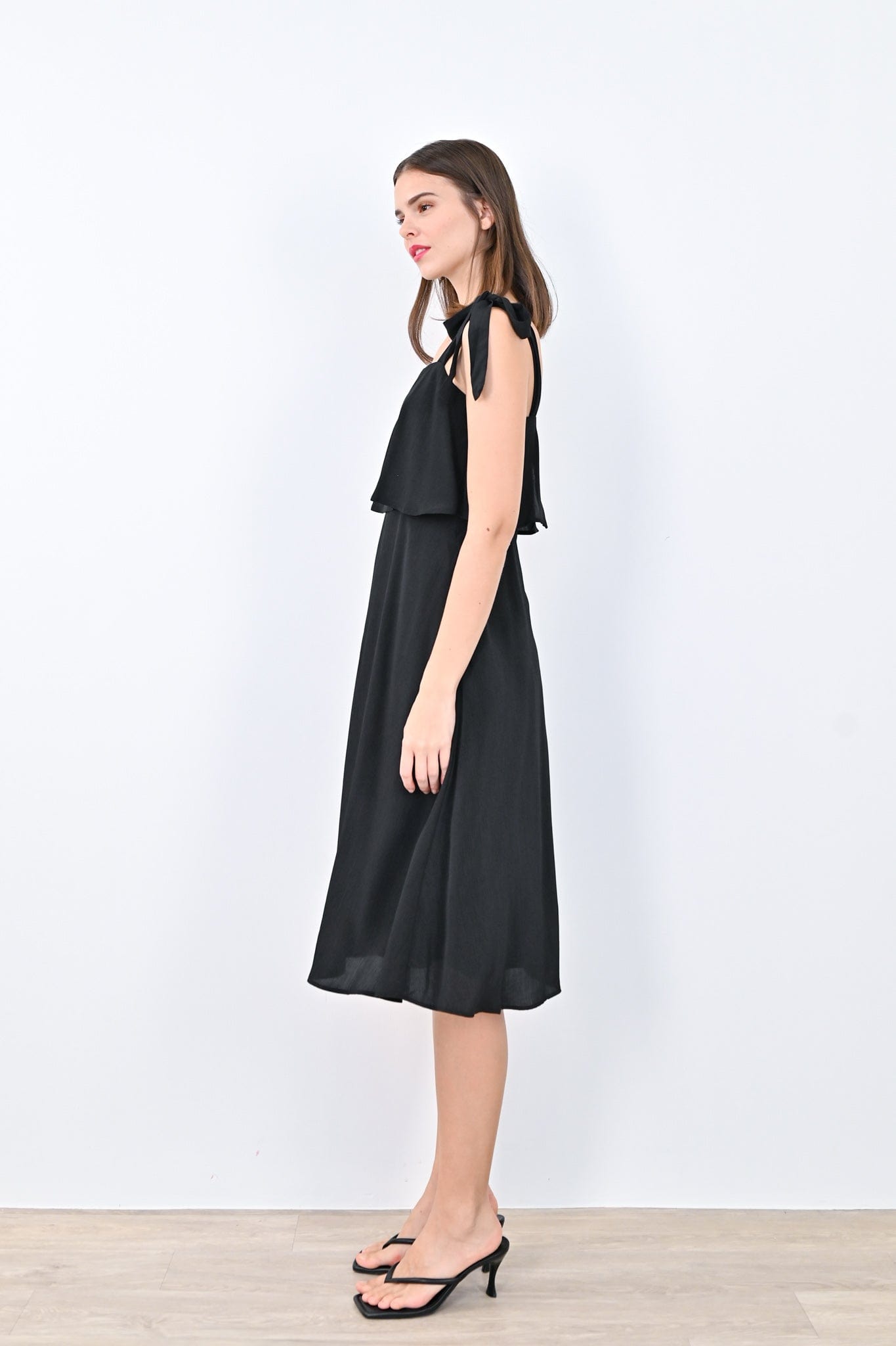 JOLYN OVERLAP MIDI DRESS IN BLACK