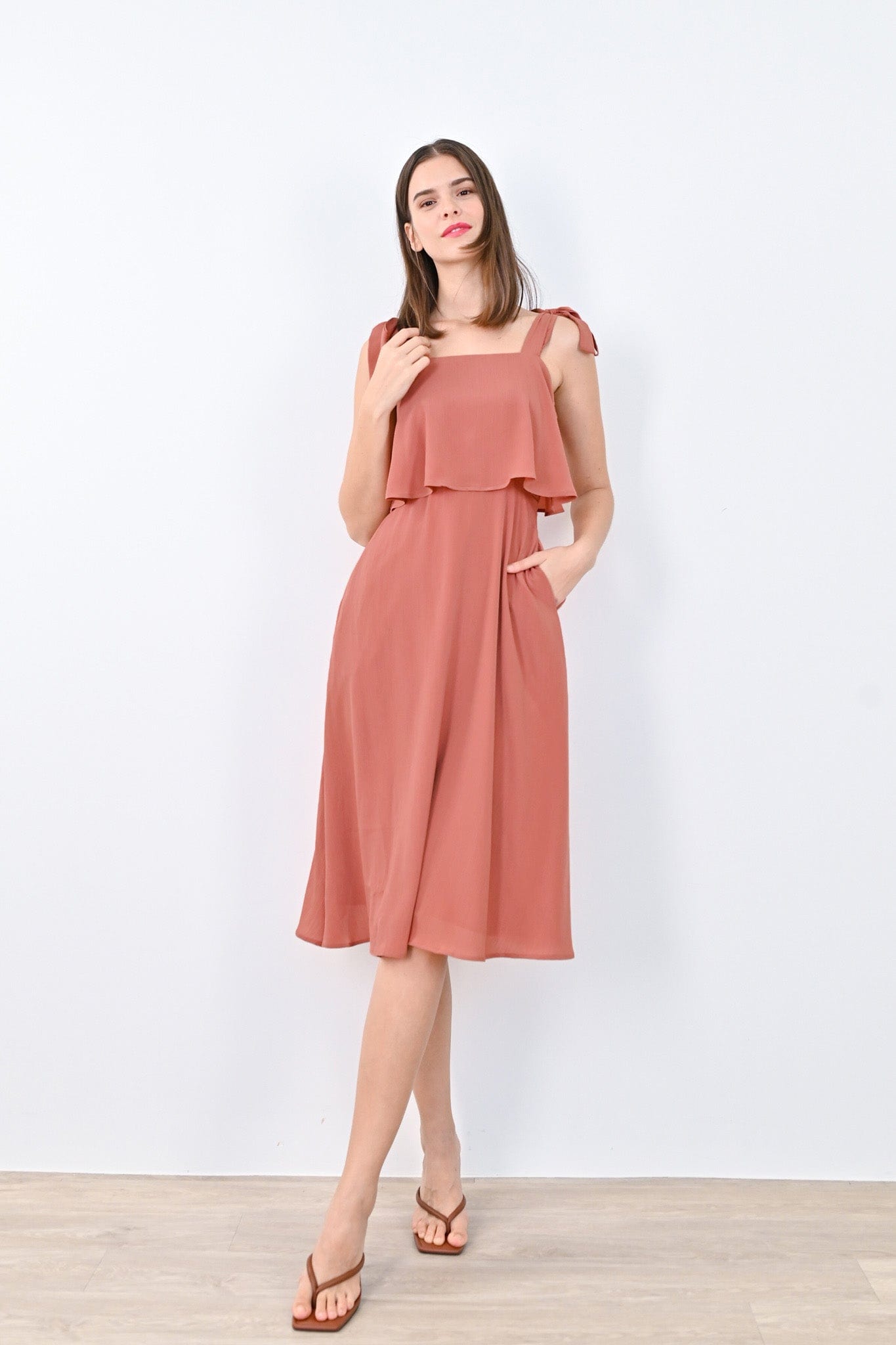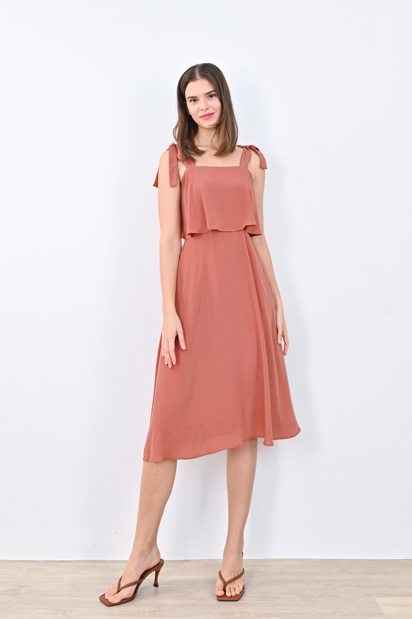 JOLYN OVERLAP MIDI DRESS IN TERRA