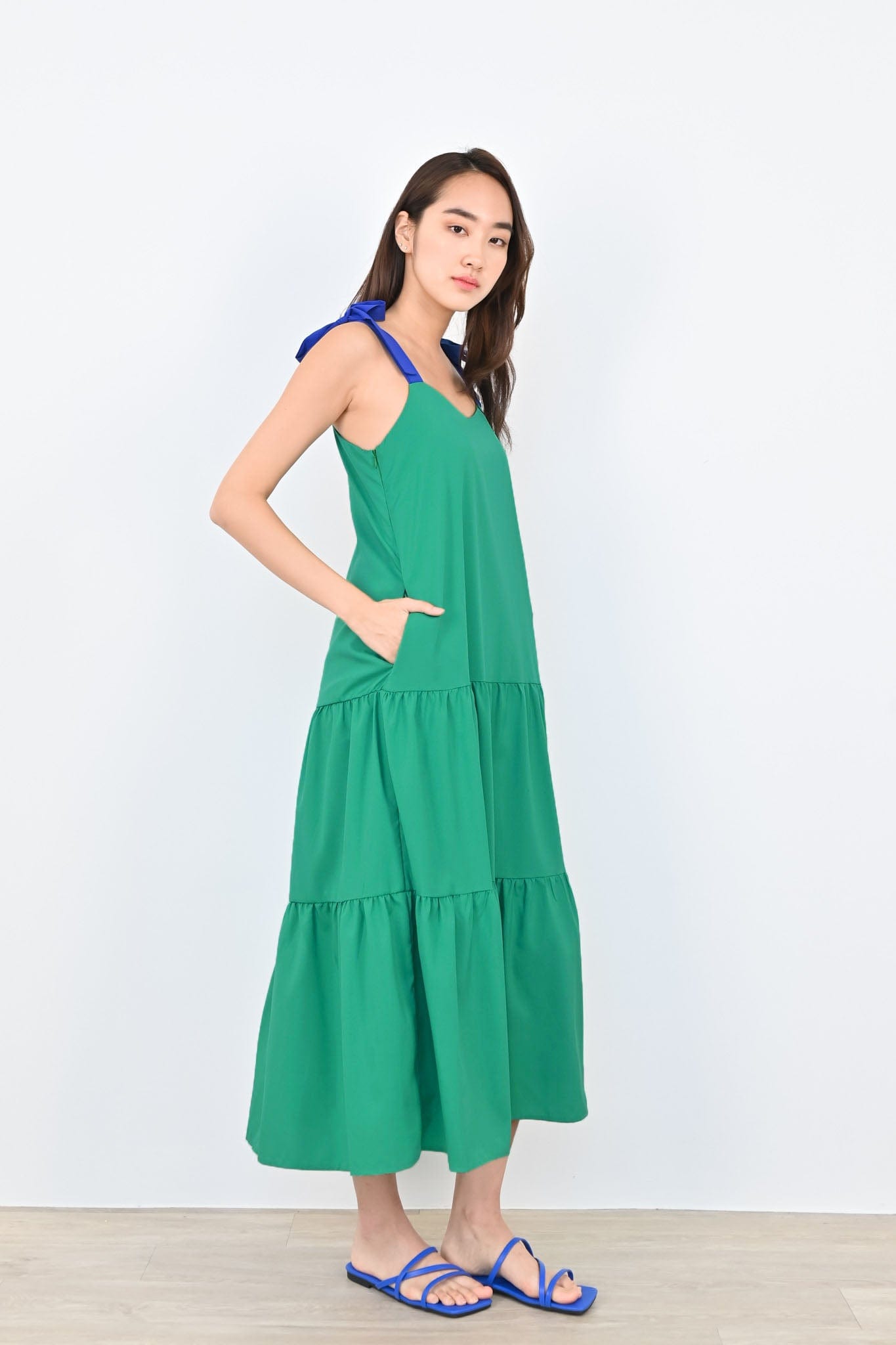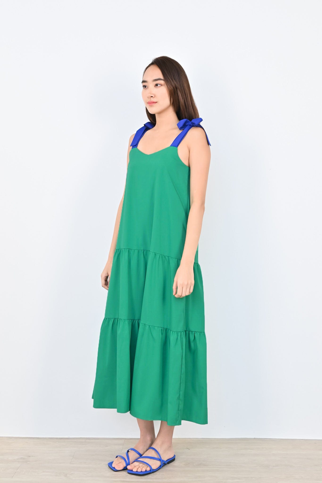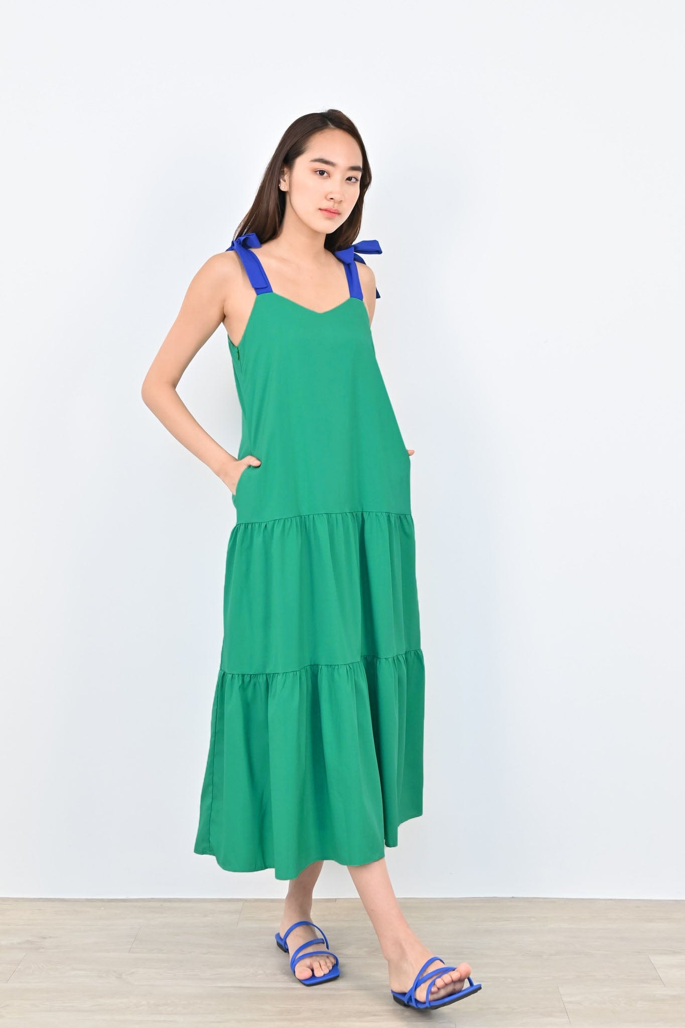KRYSTLE TIE-STRAP DRESS IN KELLY GREEN