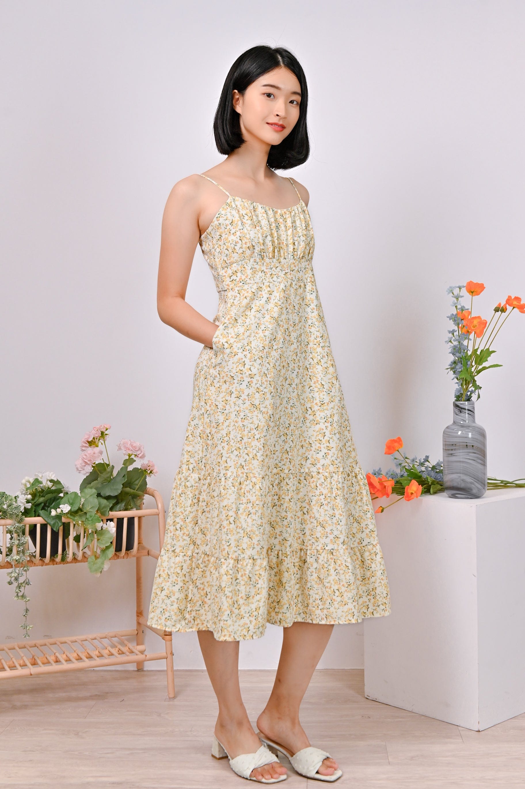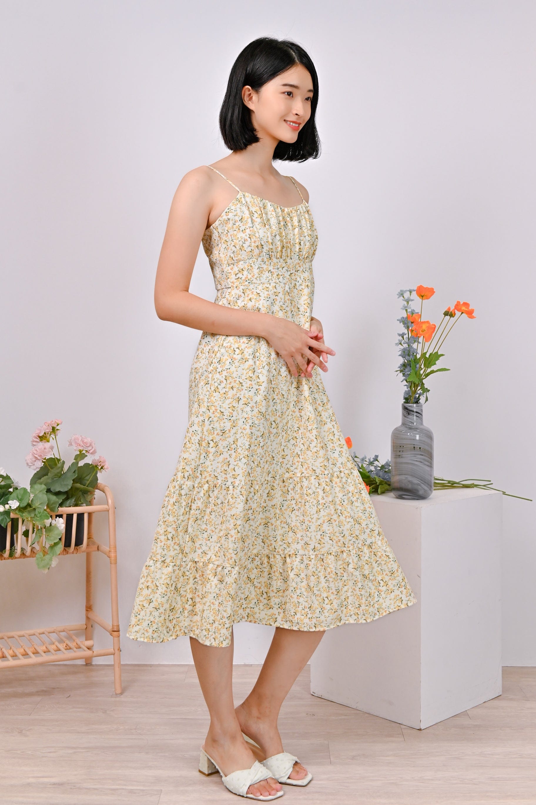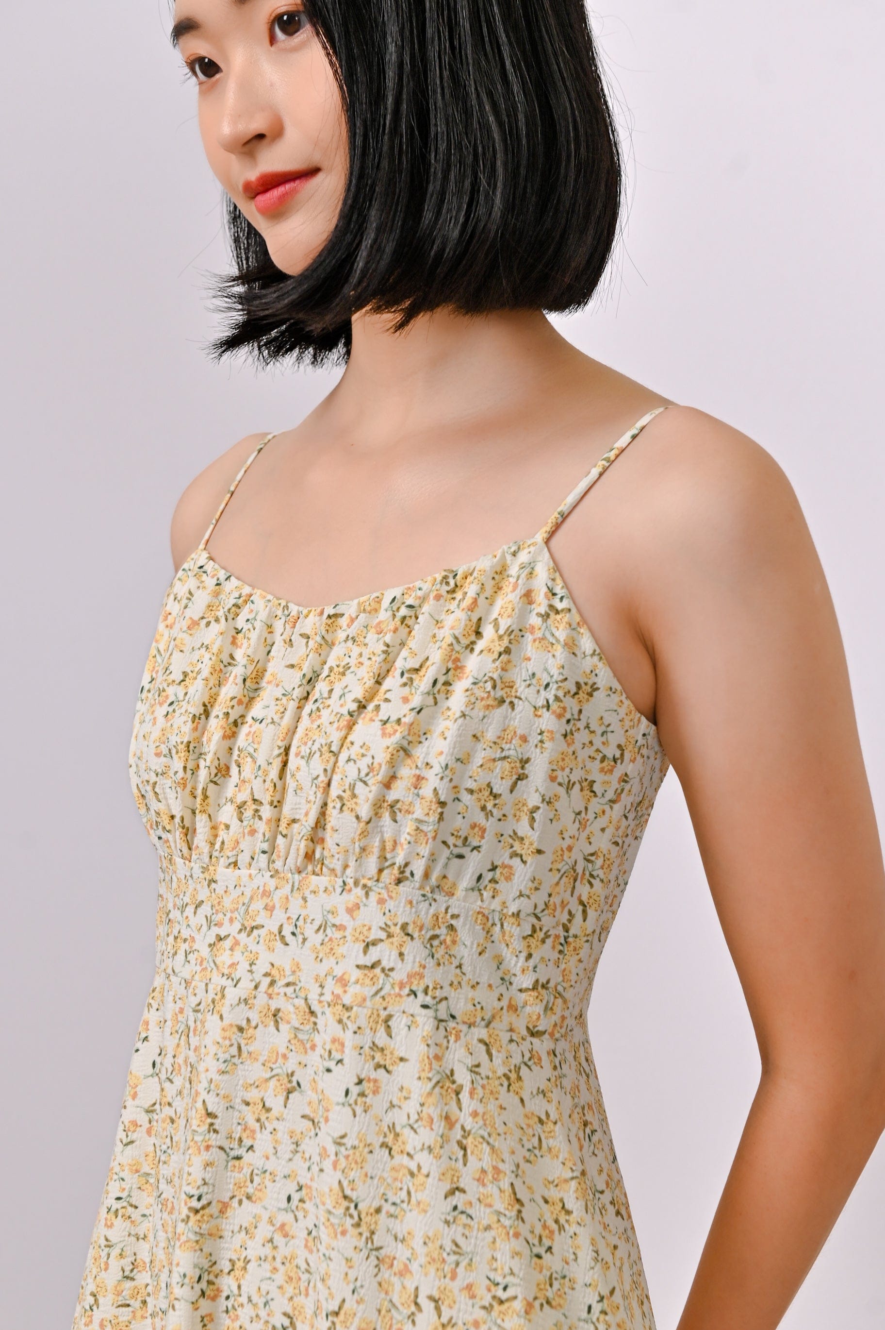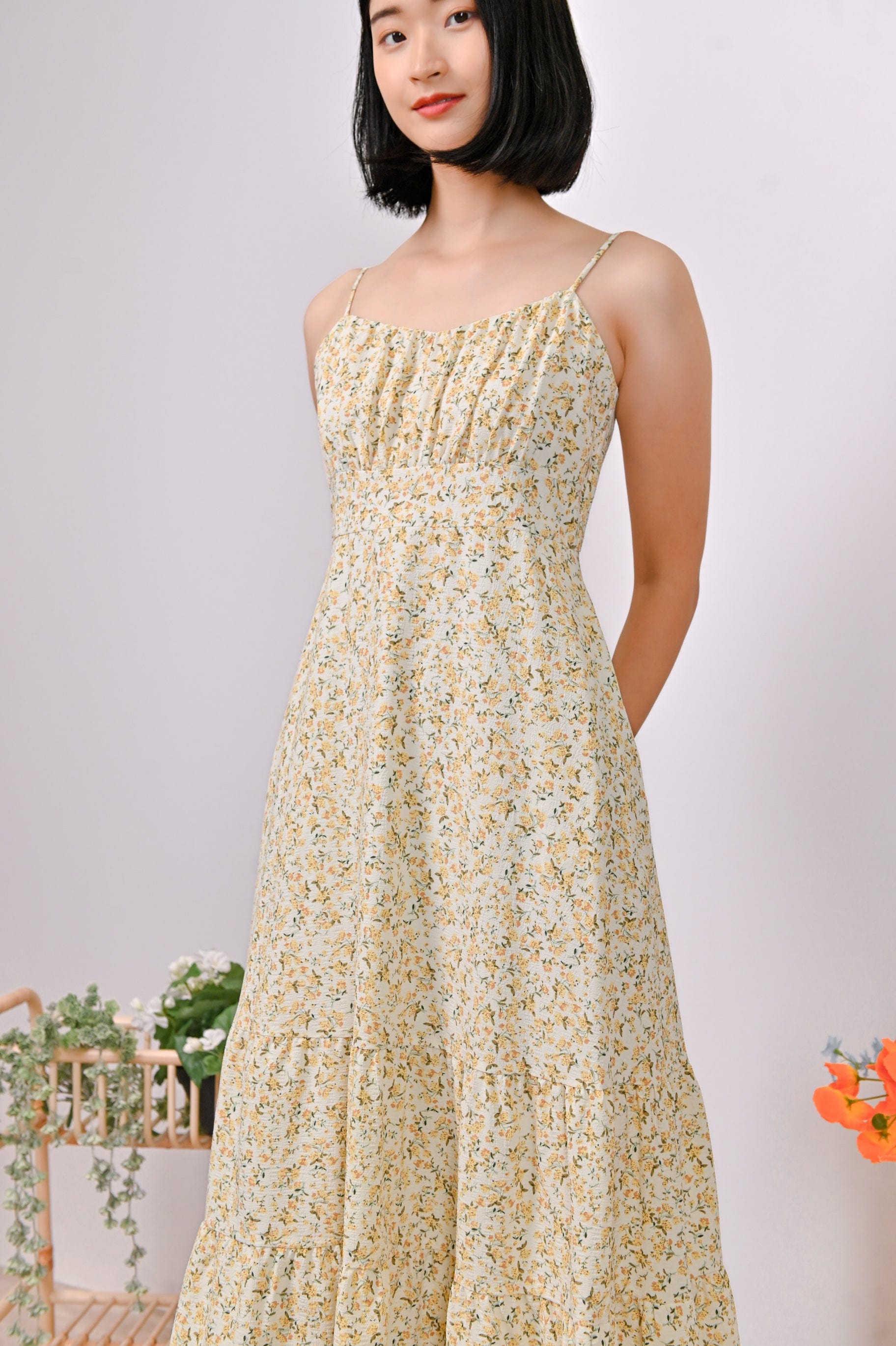 Actual stocks may varyBe the belle of the ball in this sweet floral spag dress! Unleash your inner princess with its flattering ruched bust detail and wonderfully tiered skirt!