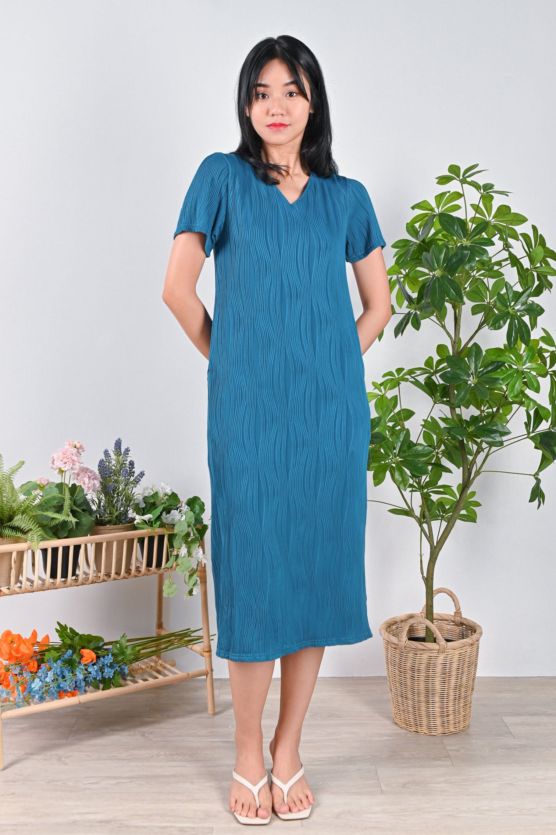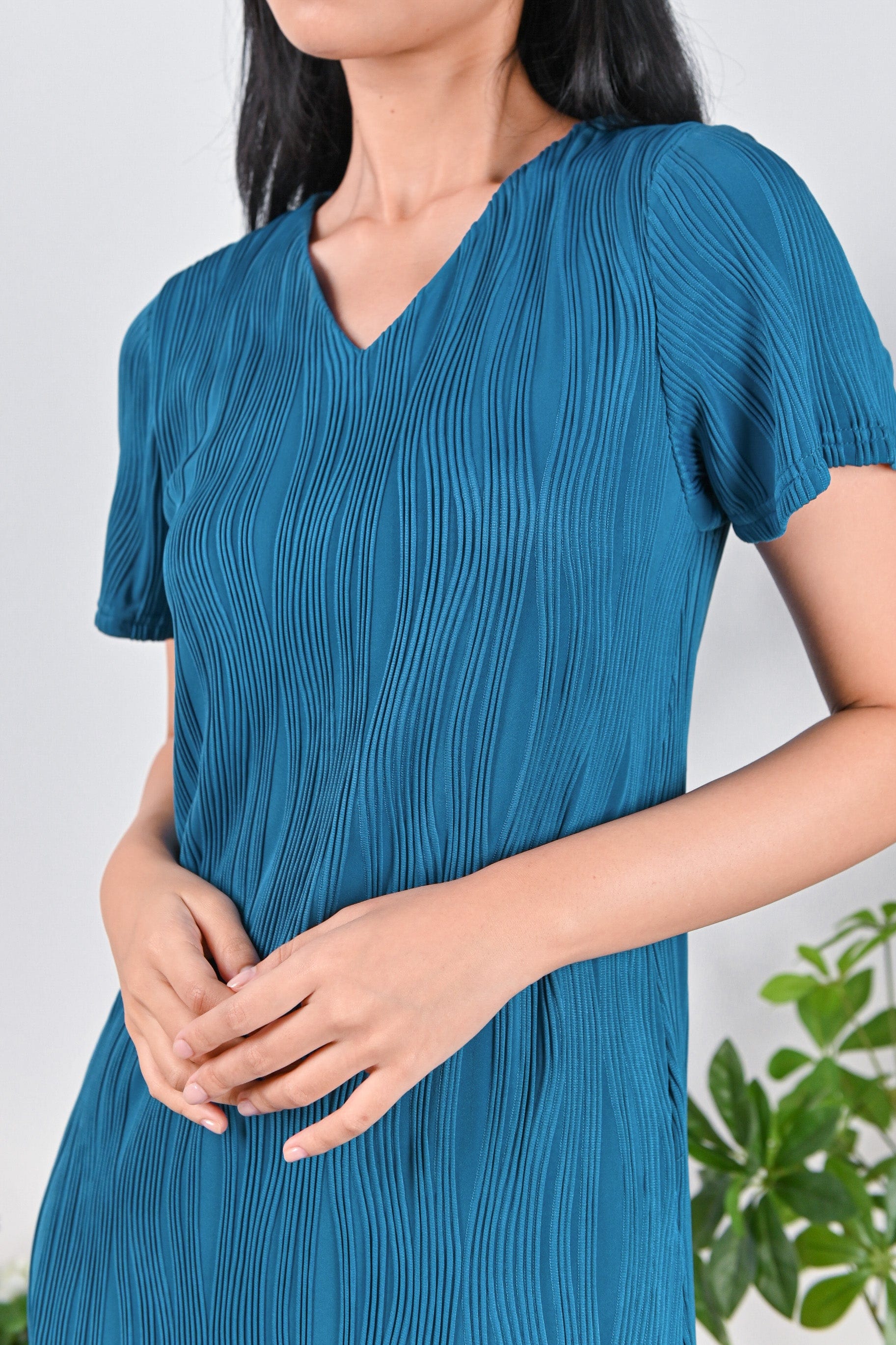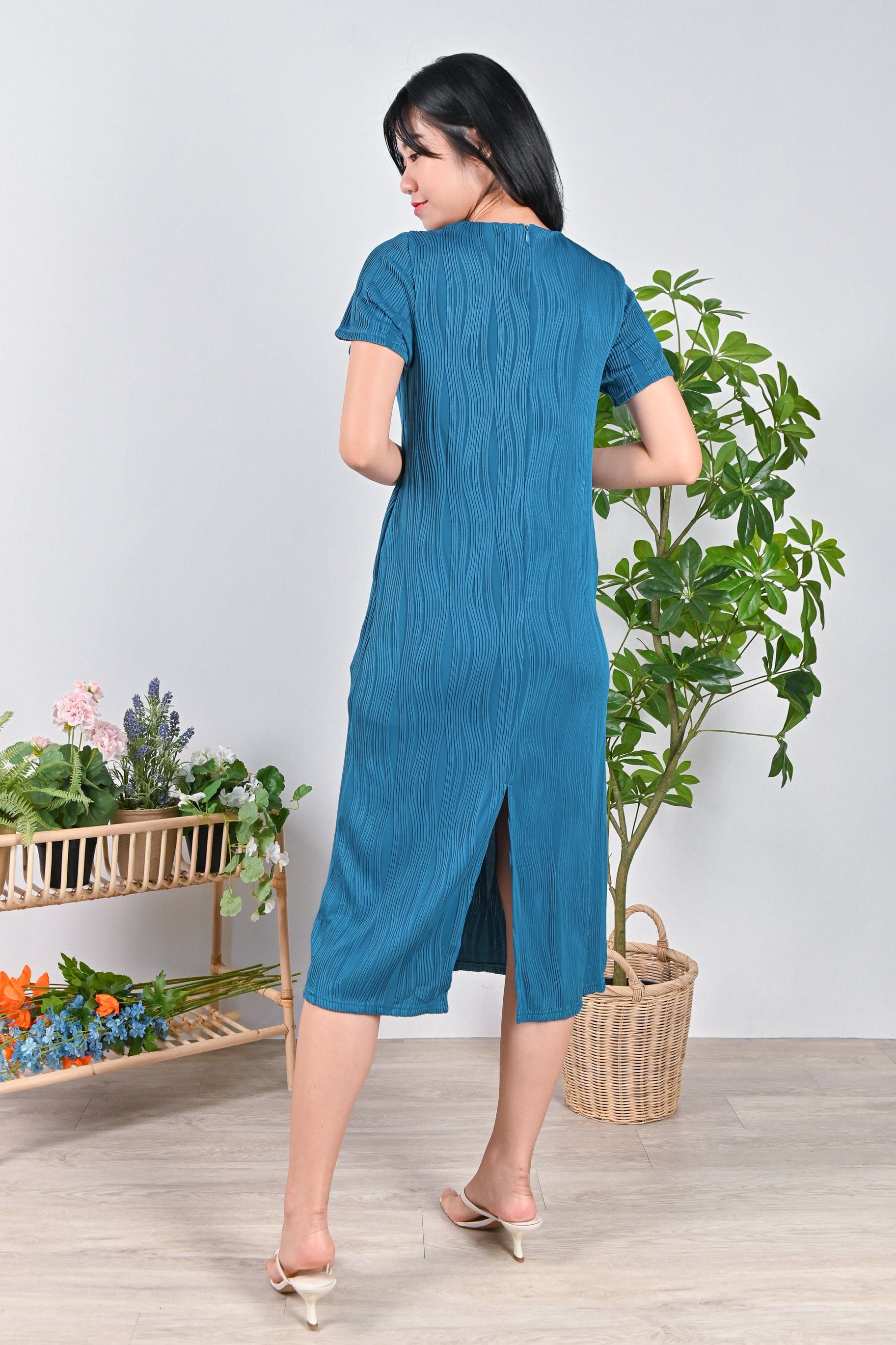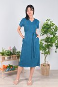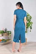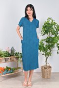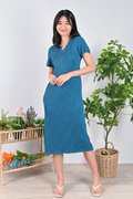 LOJA CURVED LINES SLEEVED DRESS IN TURQUOISE