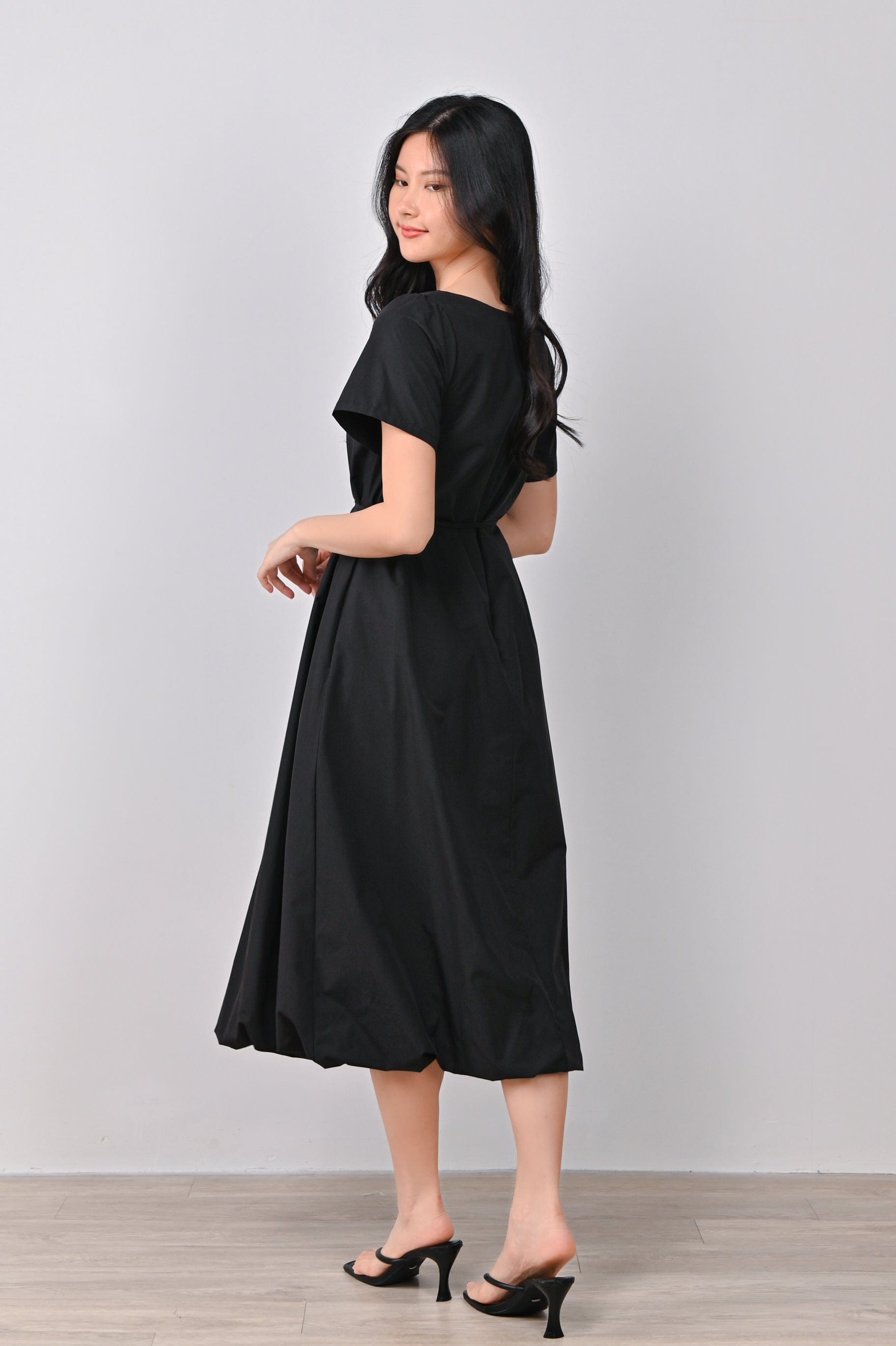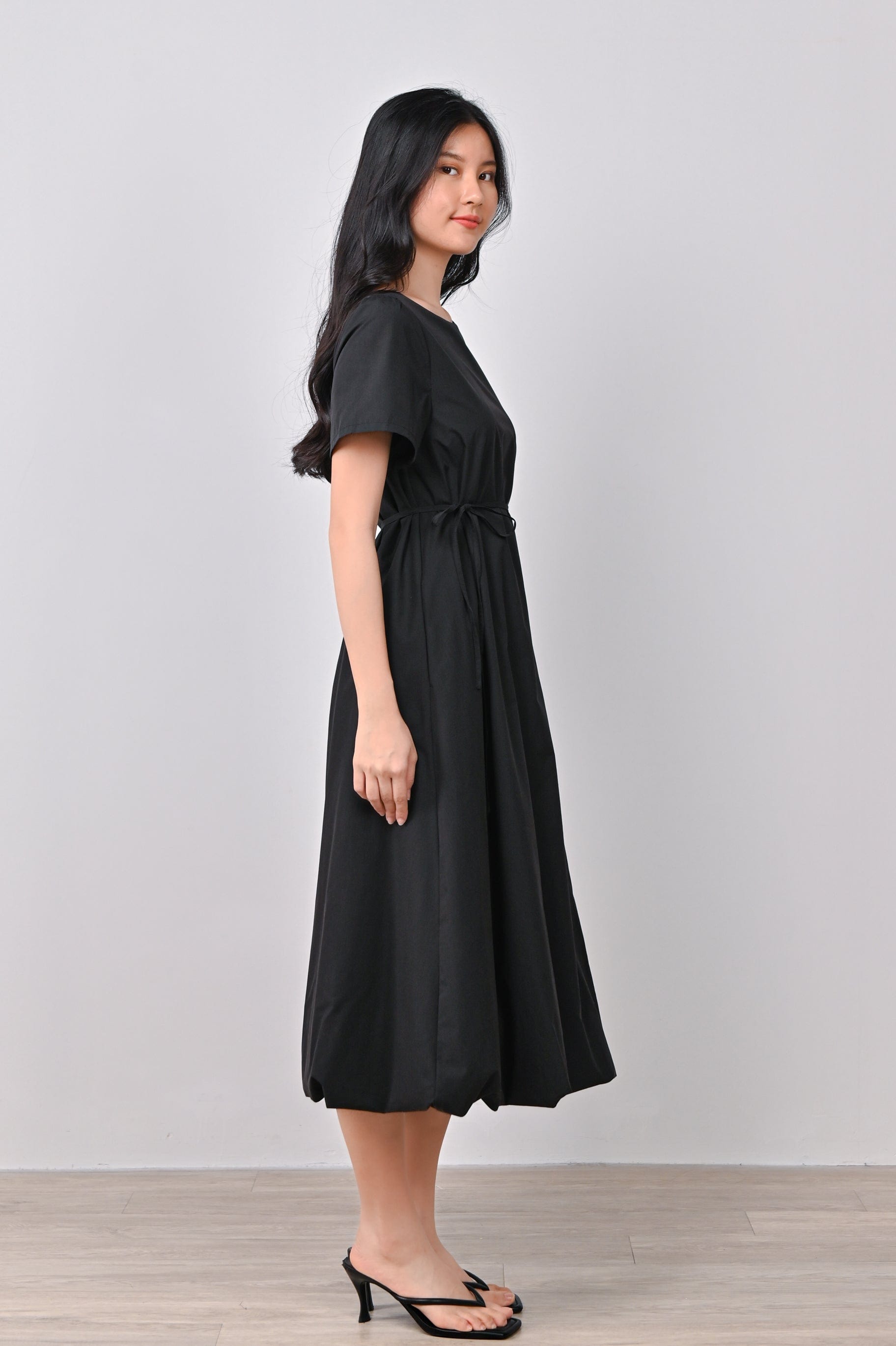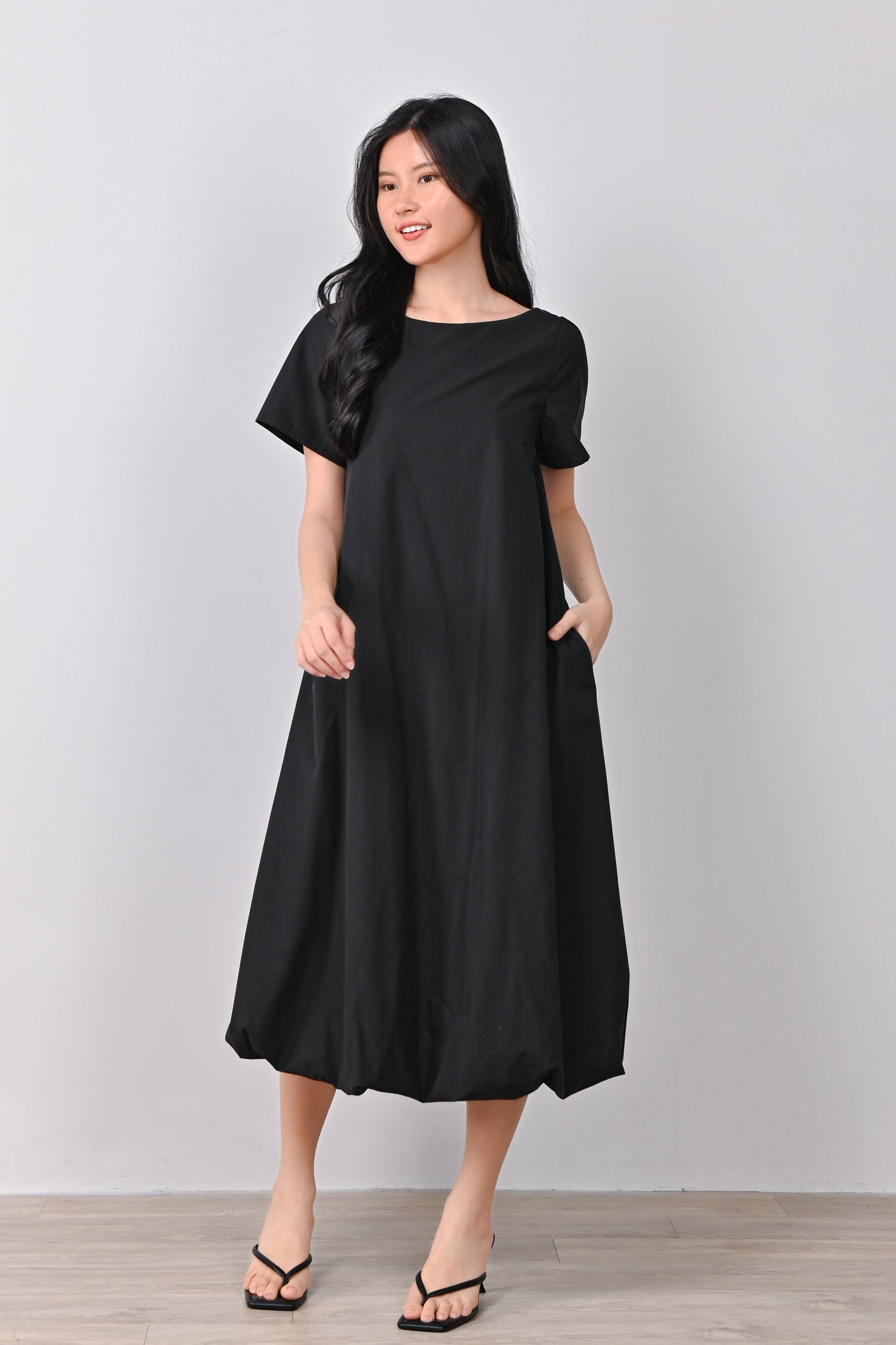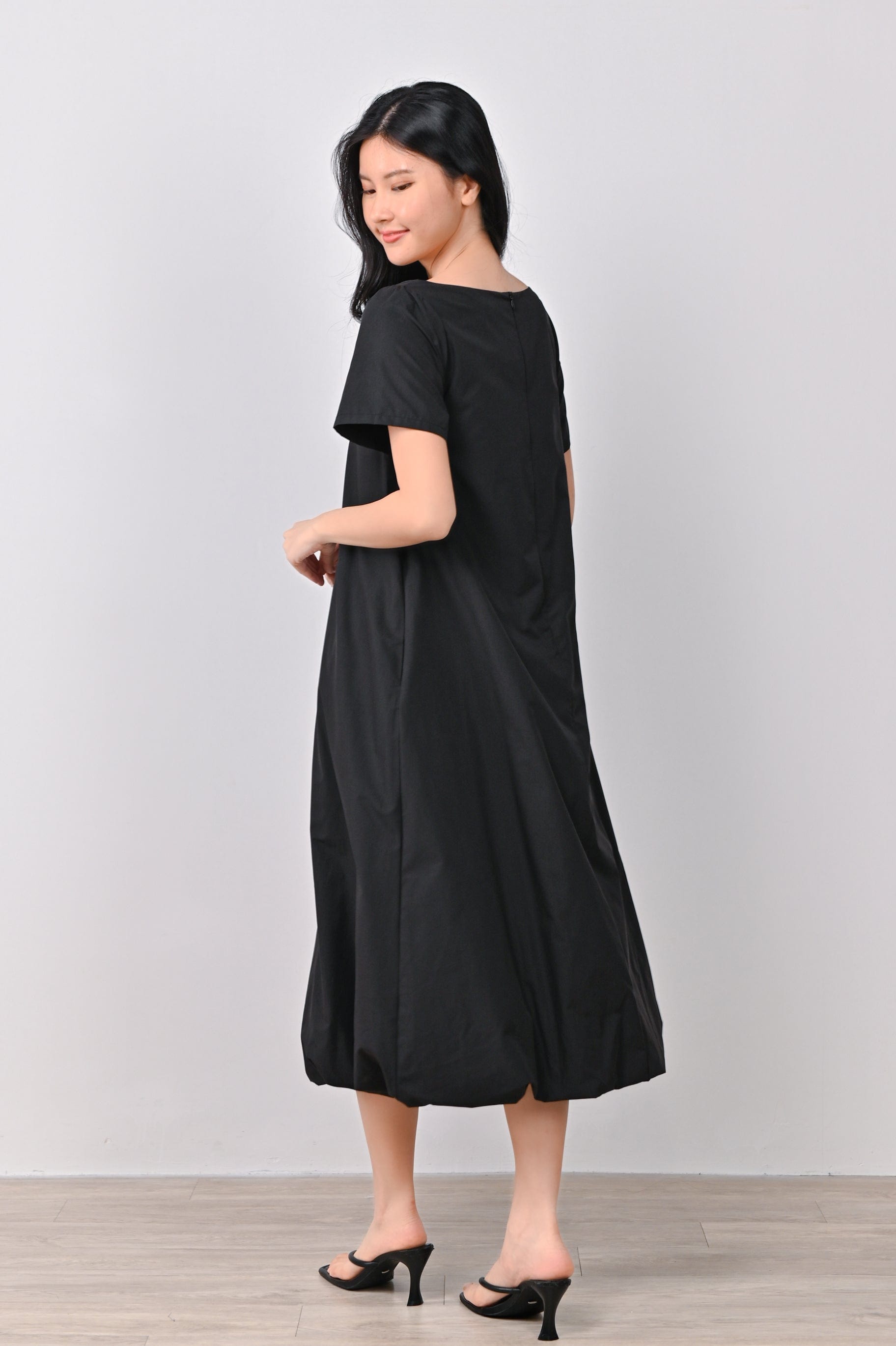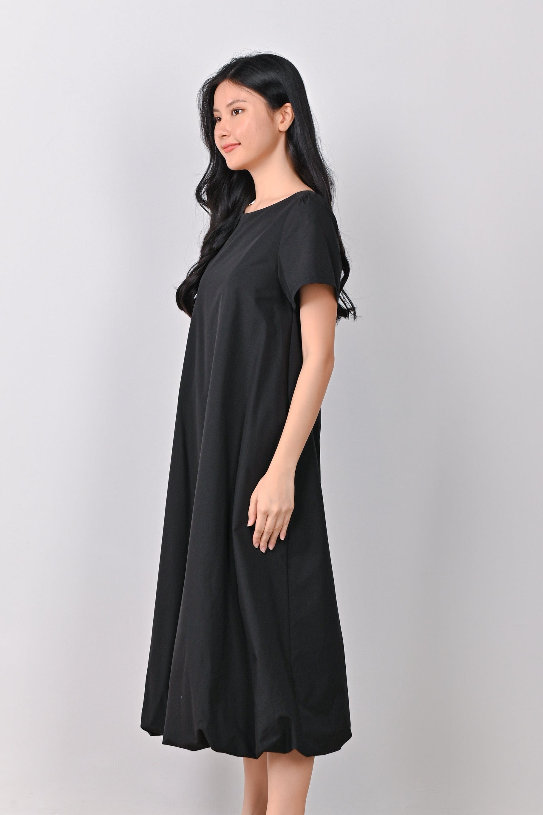 LOU SLEEVED BUBBLE DRESS IN BLACK