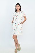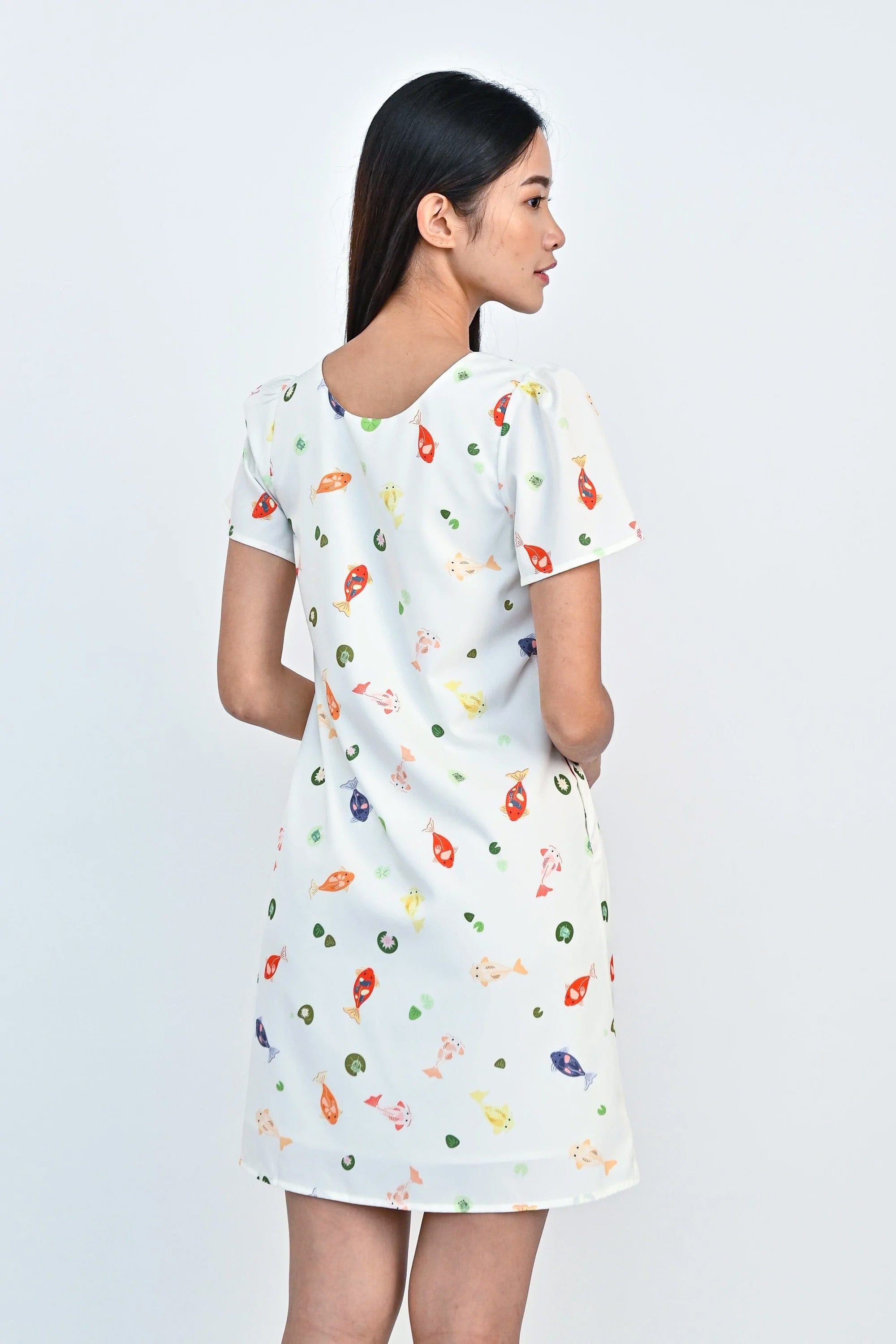 LUCKY KOI SLEEVED DRESS IN OFF-WHITE