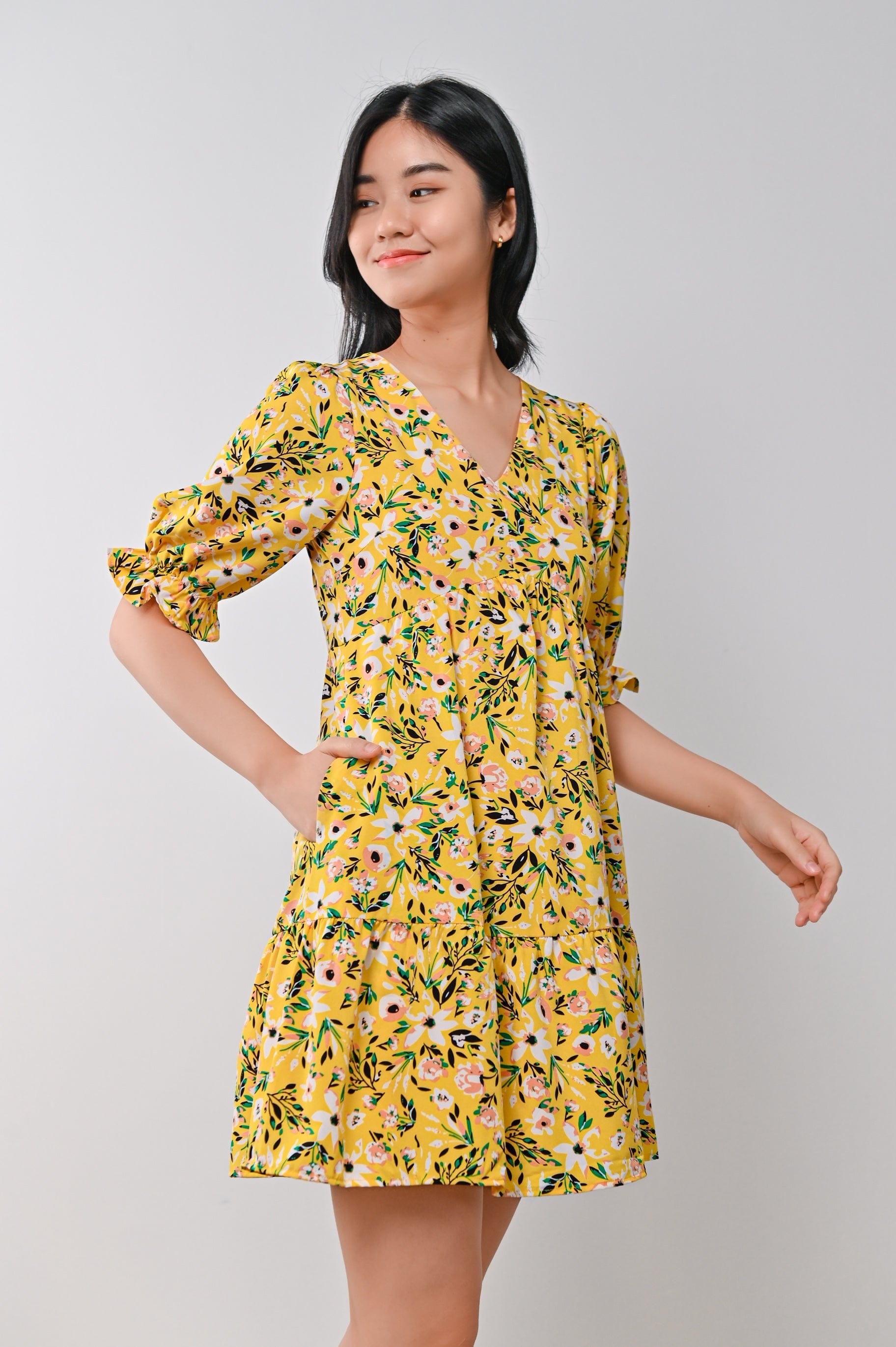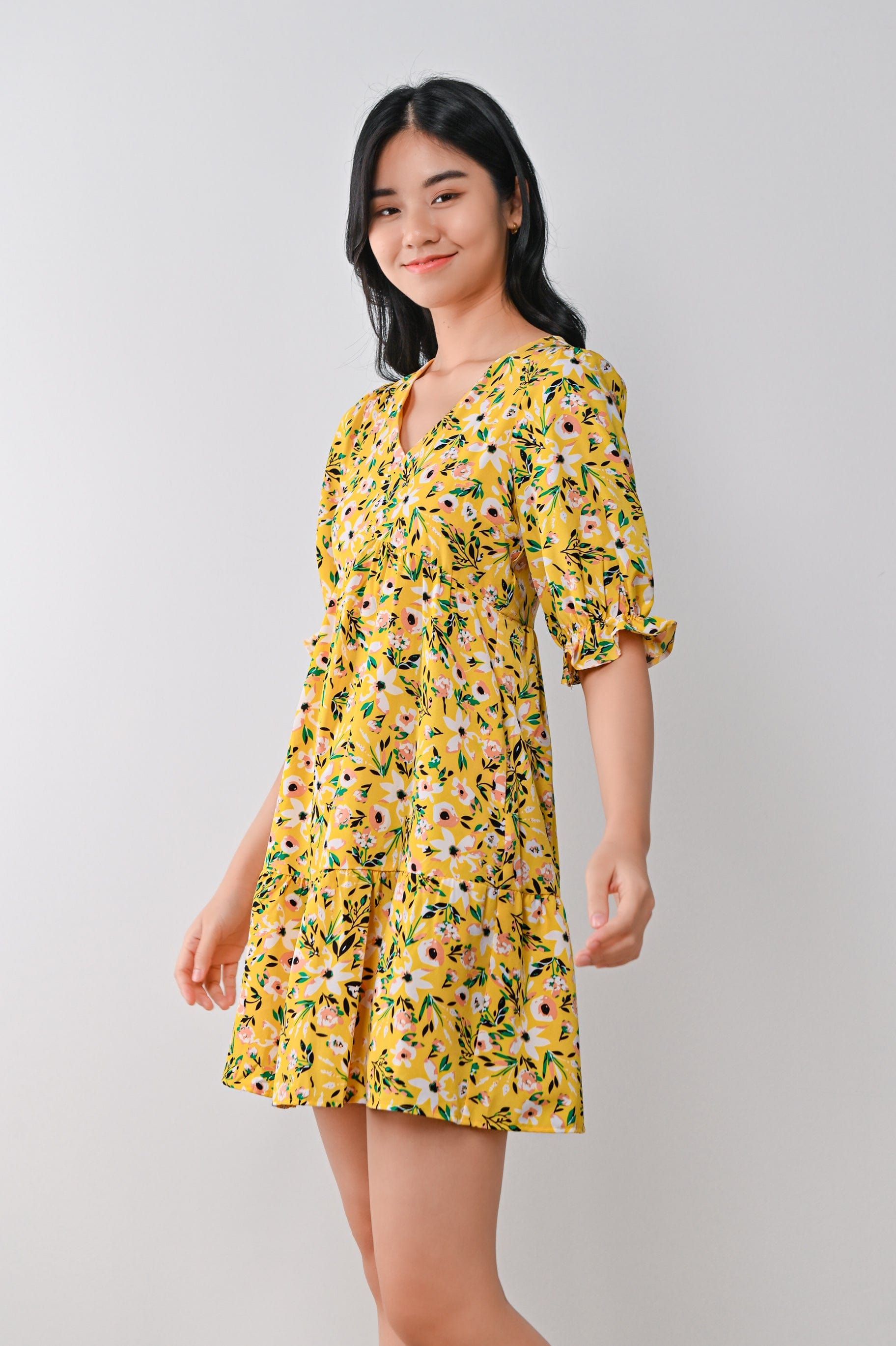 LYRIC FLORAL DRESS IN YELLOW