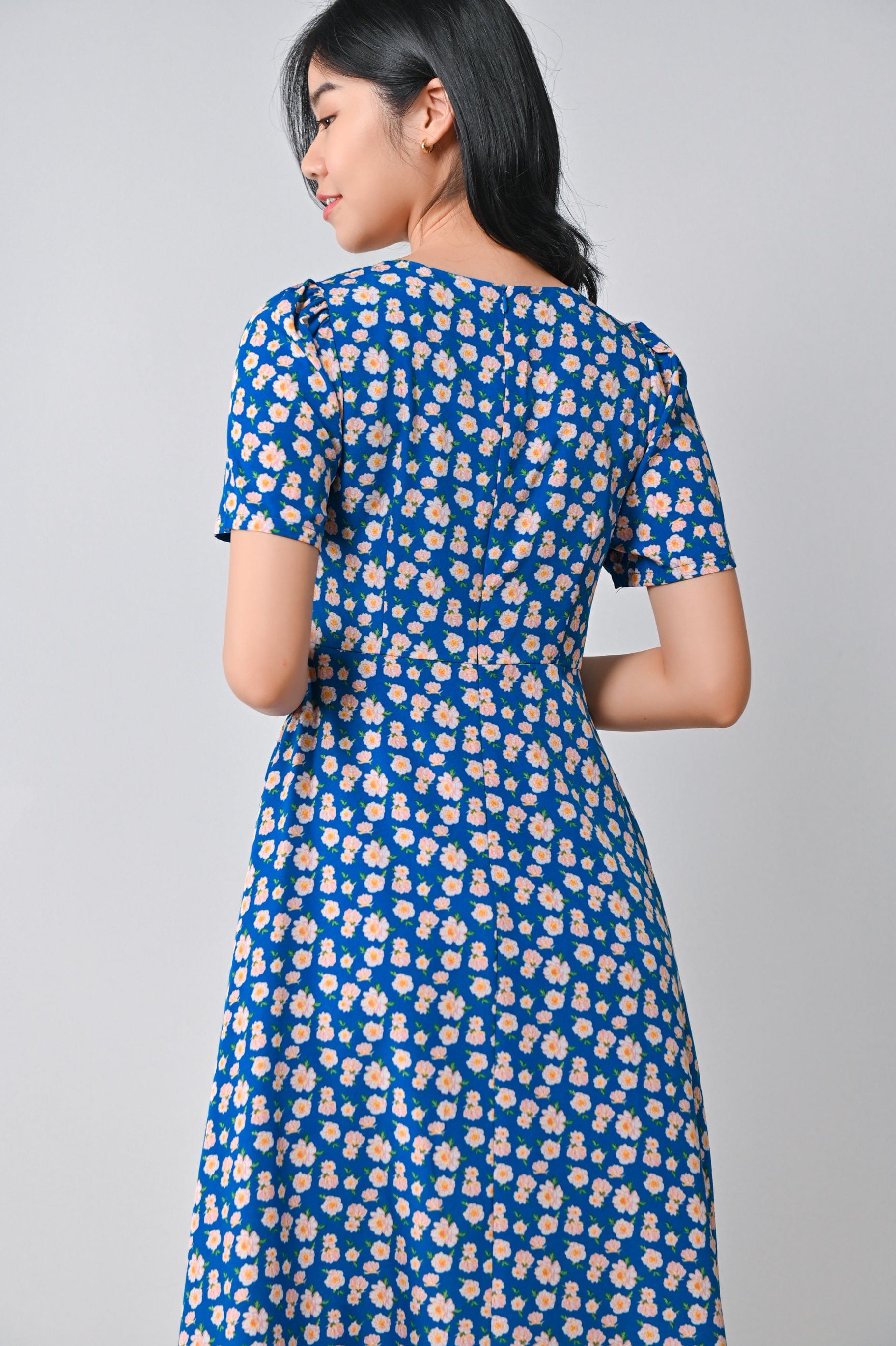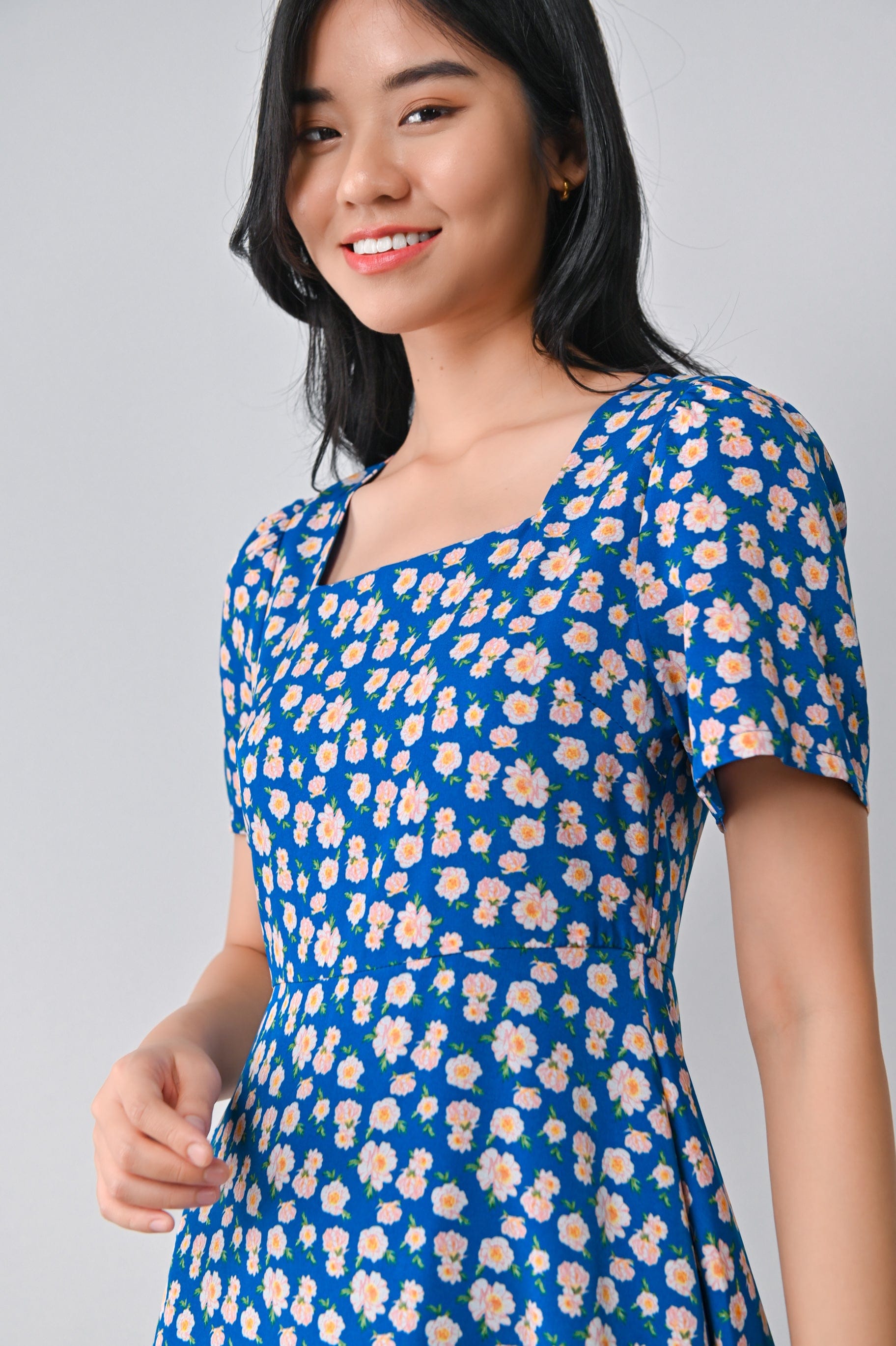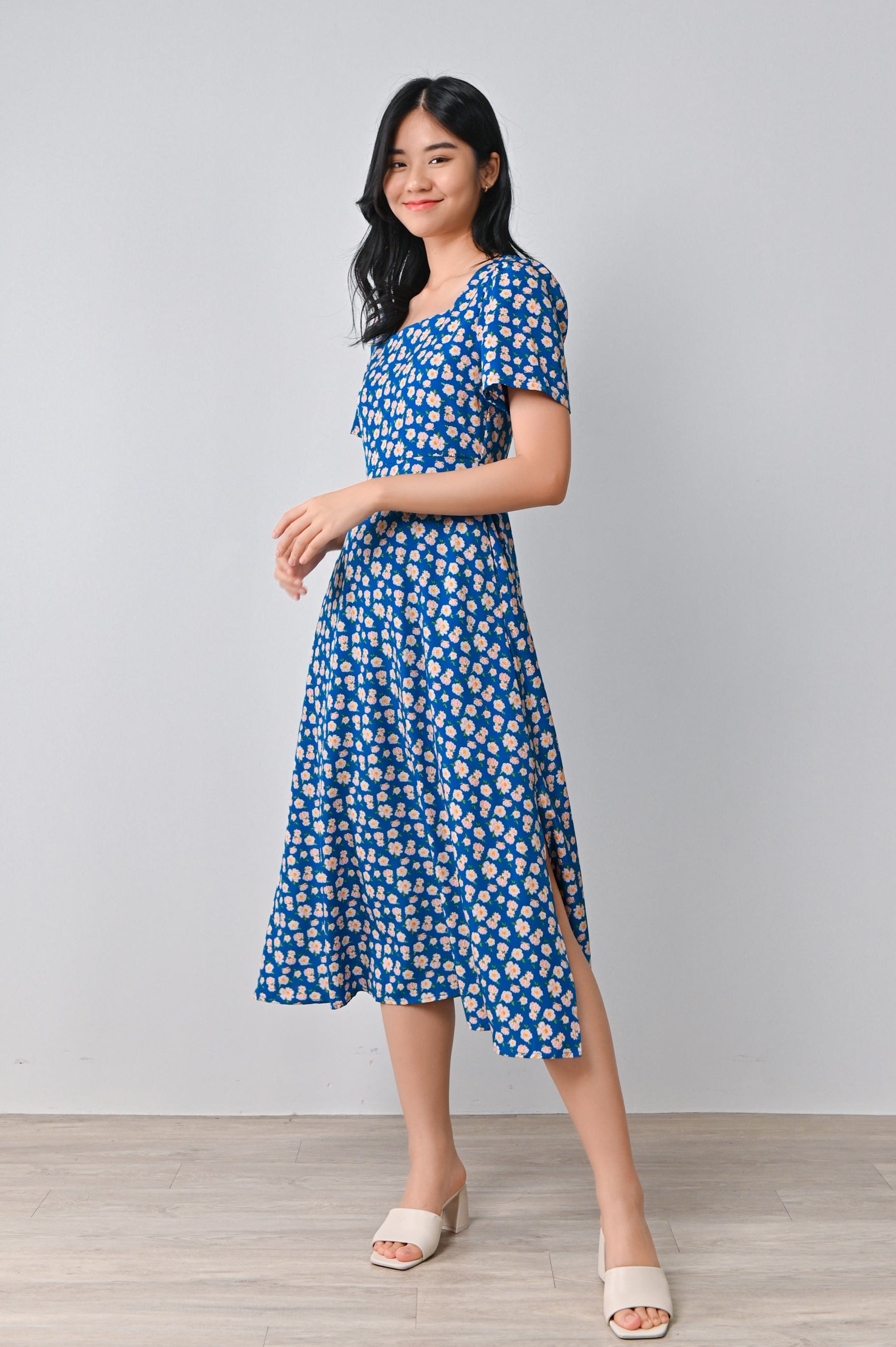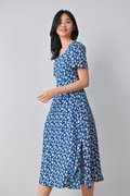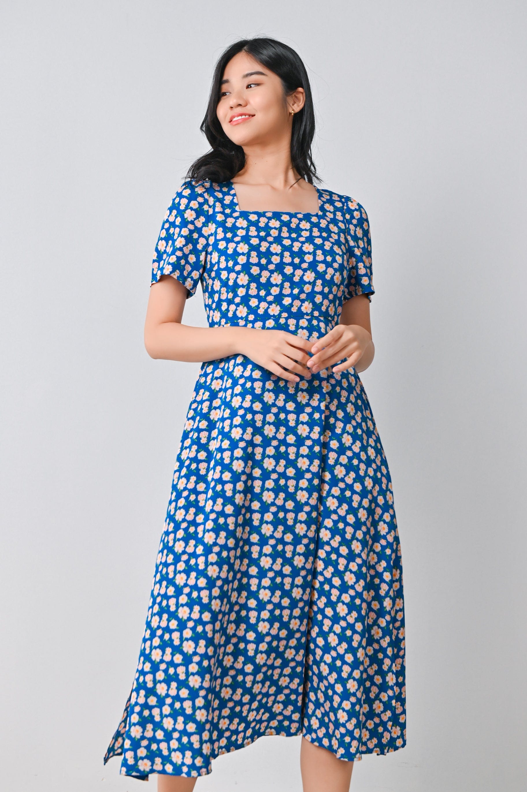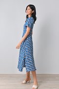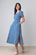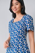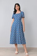 MARA FLORAL SQUARE-NECK DRESS IN BLUE