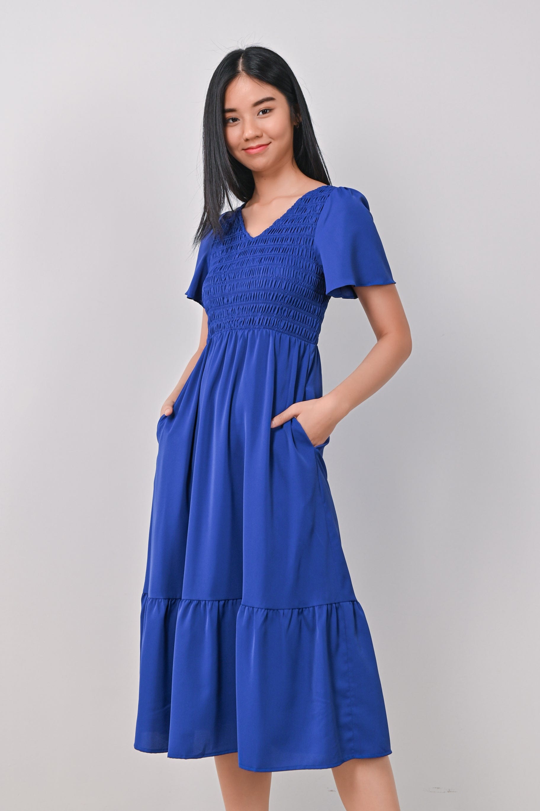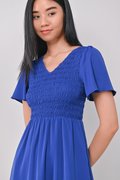 PEYTON SMOCKED DRESS IN COBALT BLUE