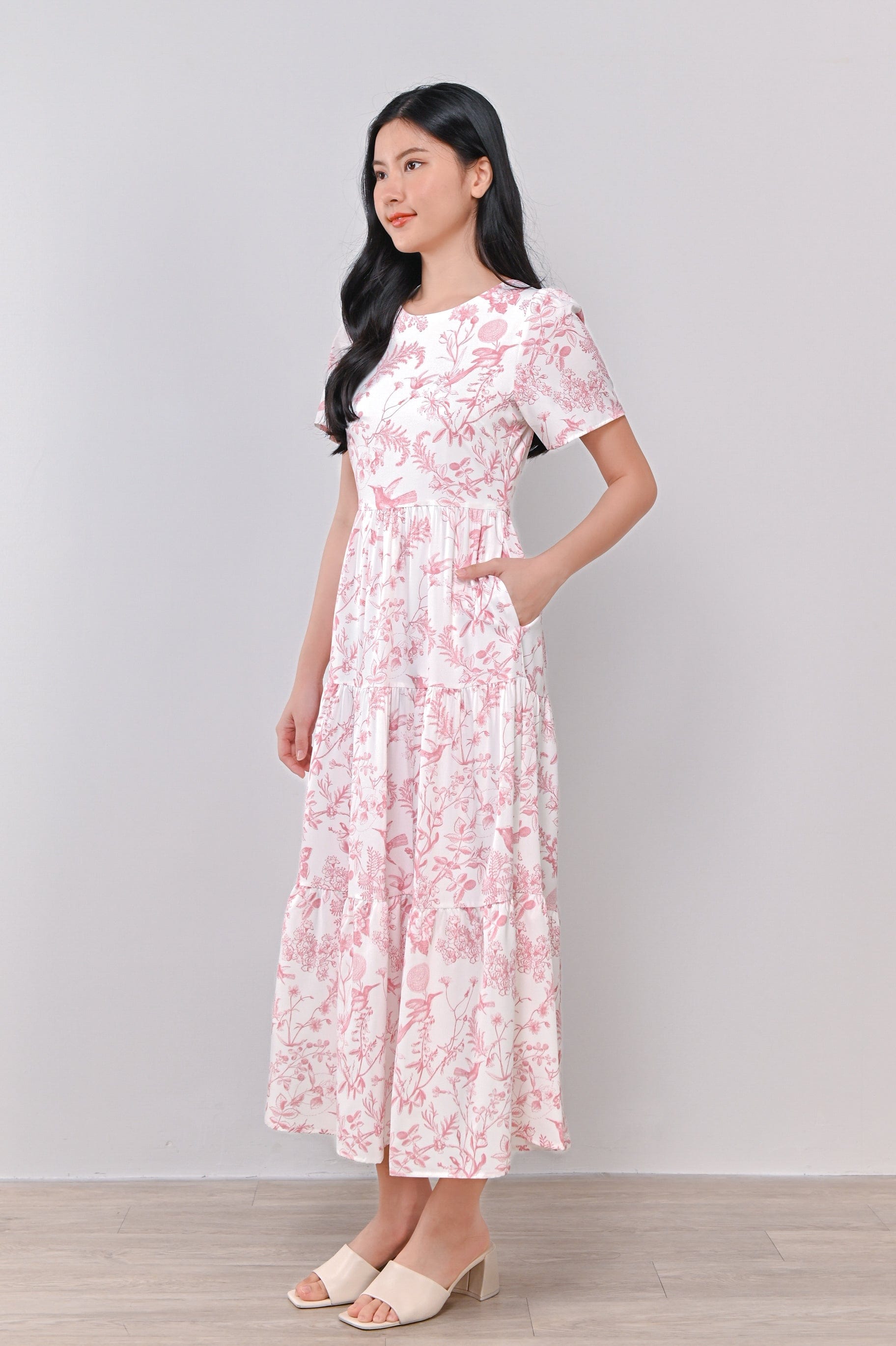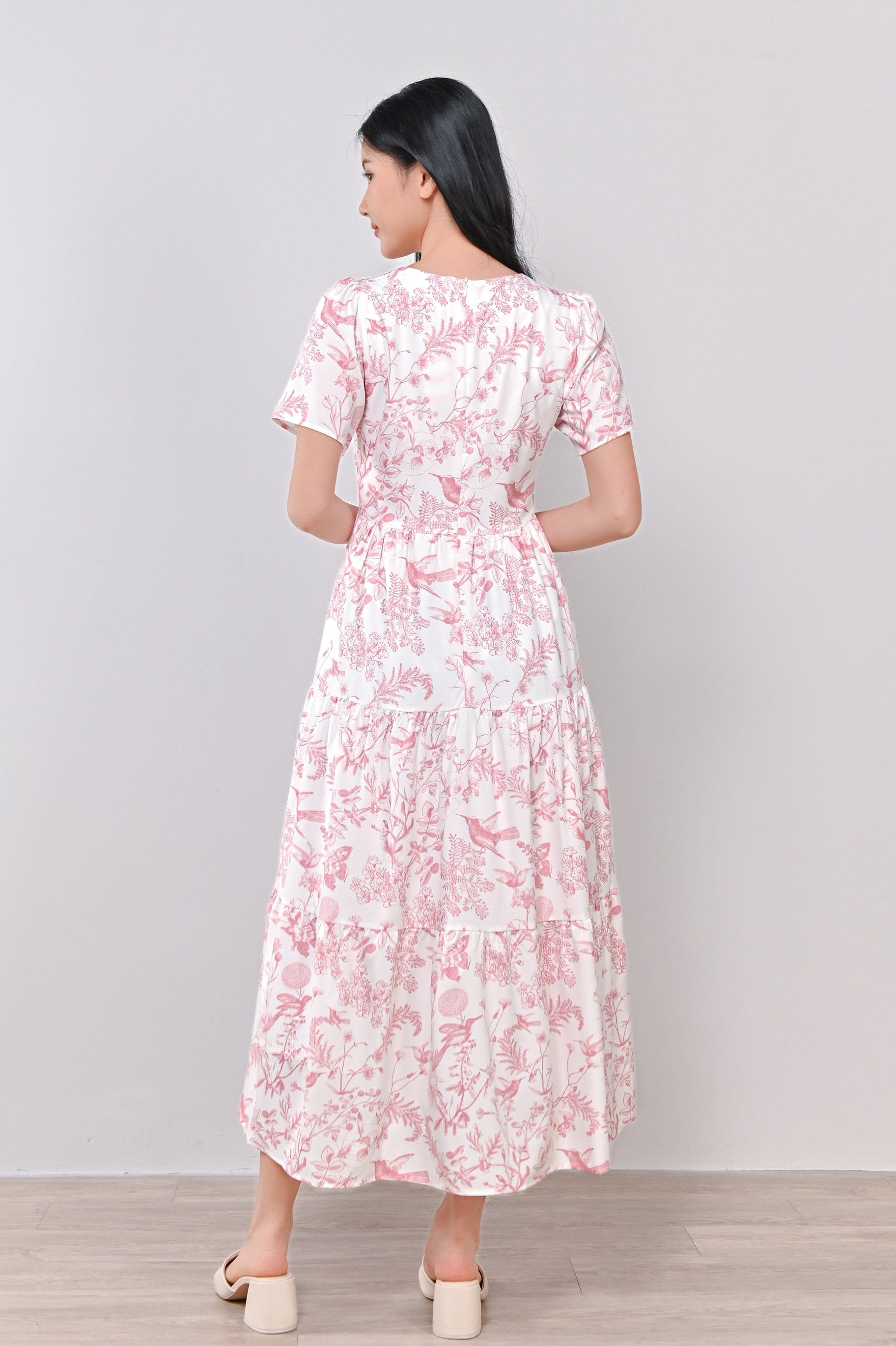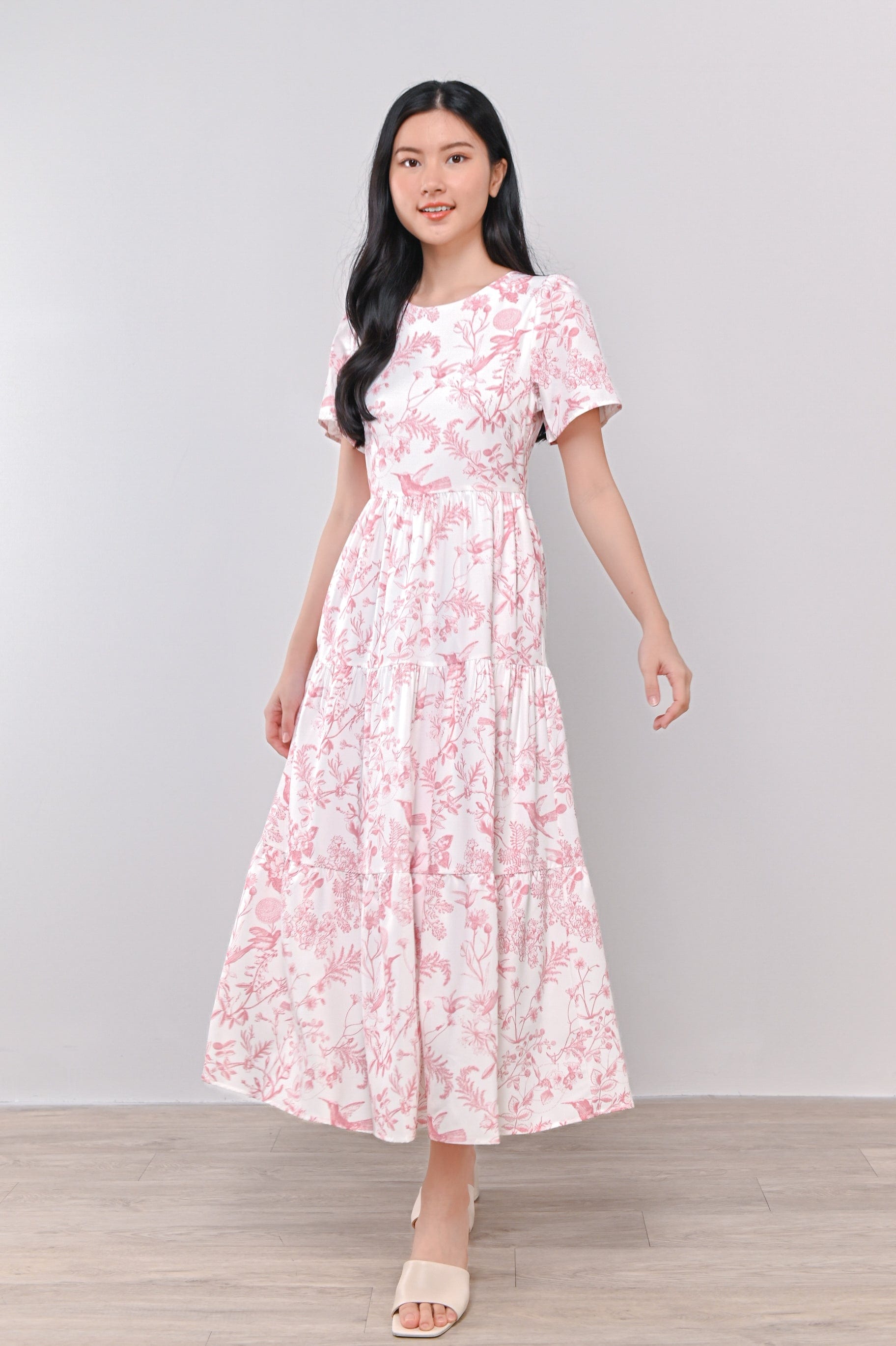 PINK HUMMINGBIRD TIERED MIDAXI DRESS