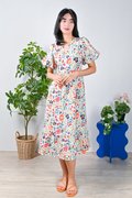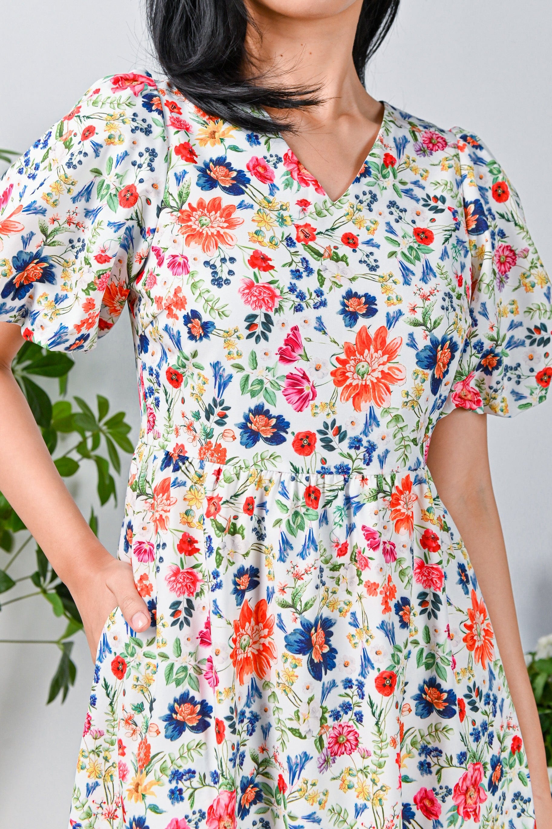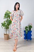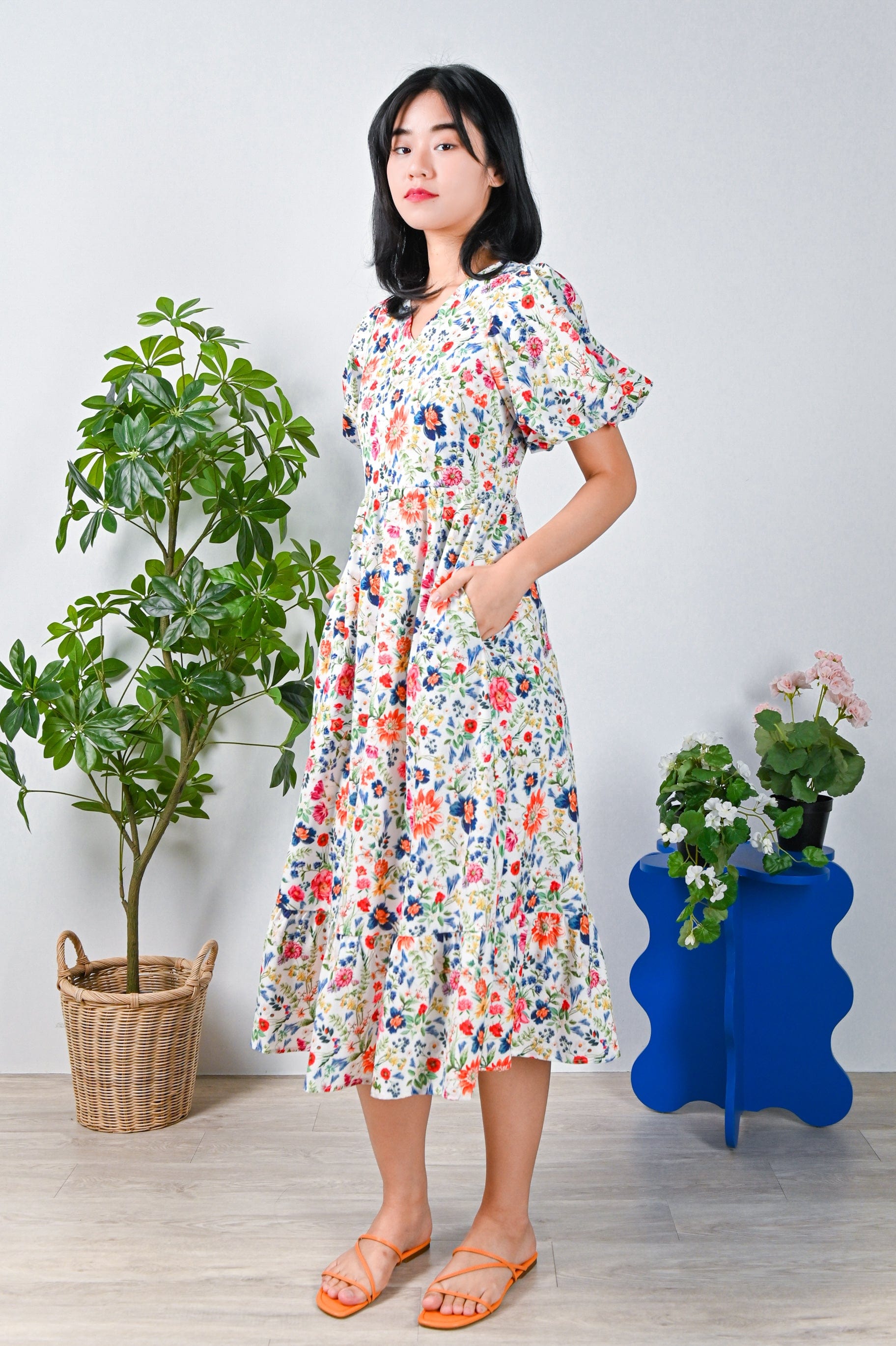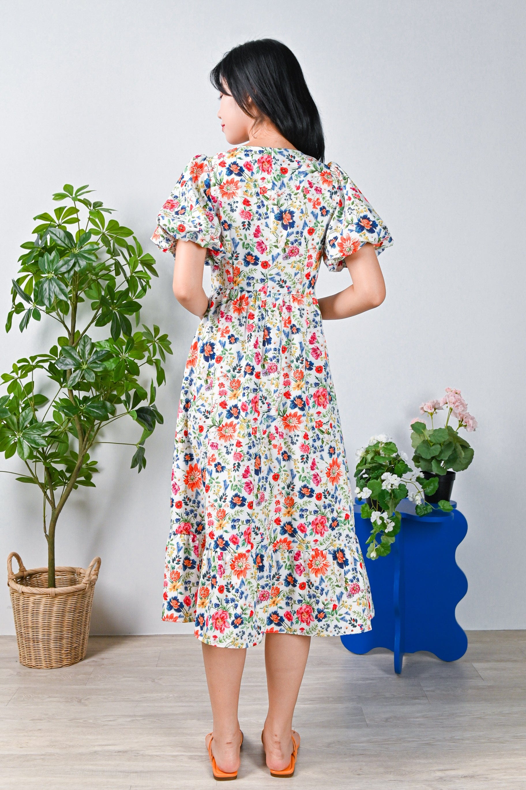 ROBUST FLORAL PUFF-SLEEVED MIDI DRESS