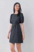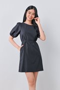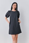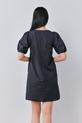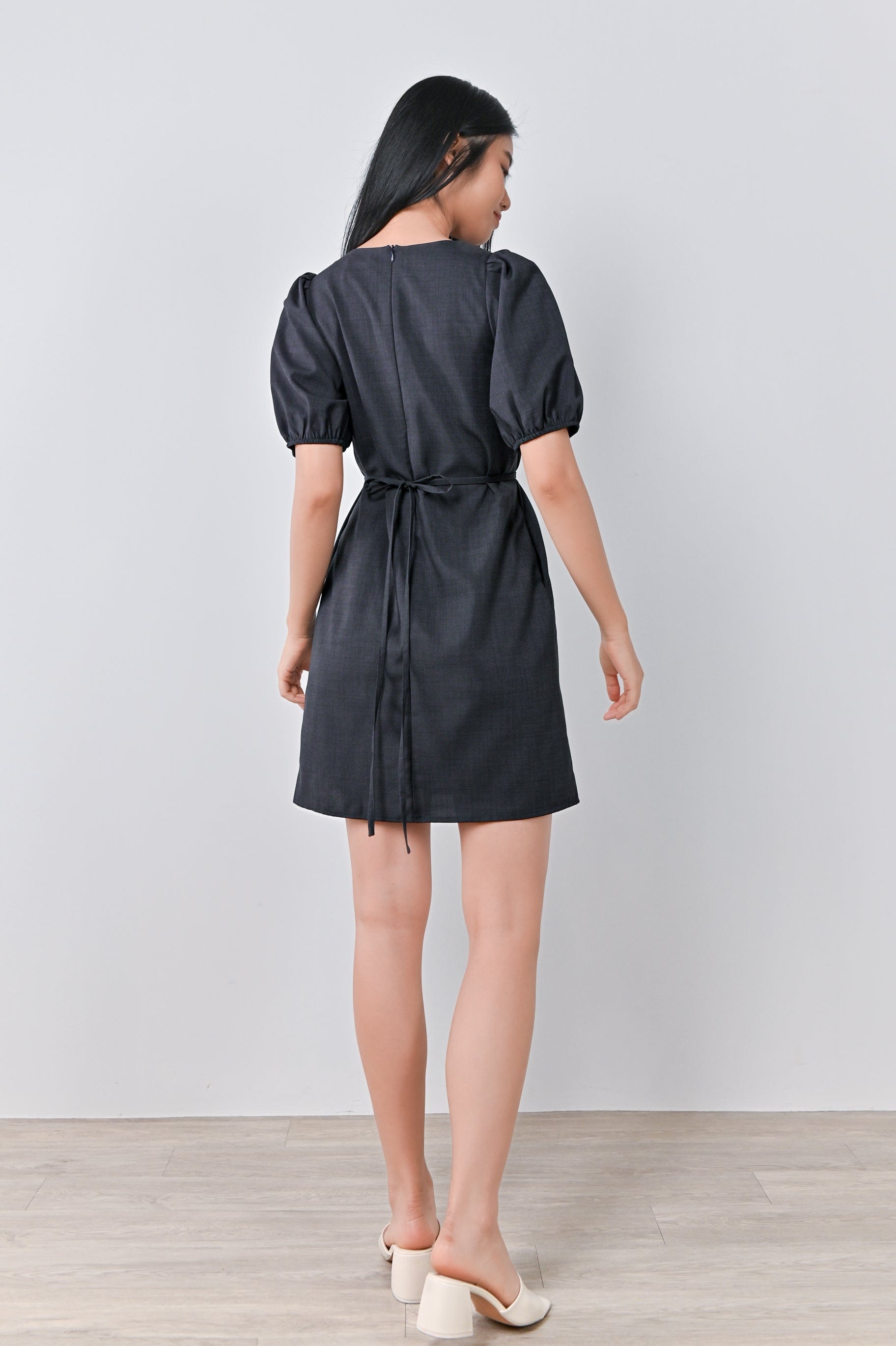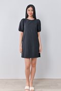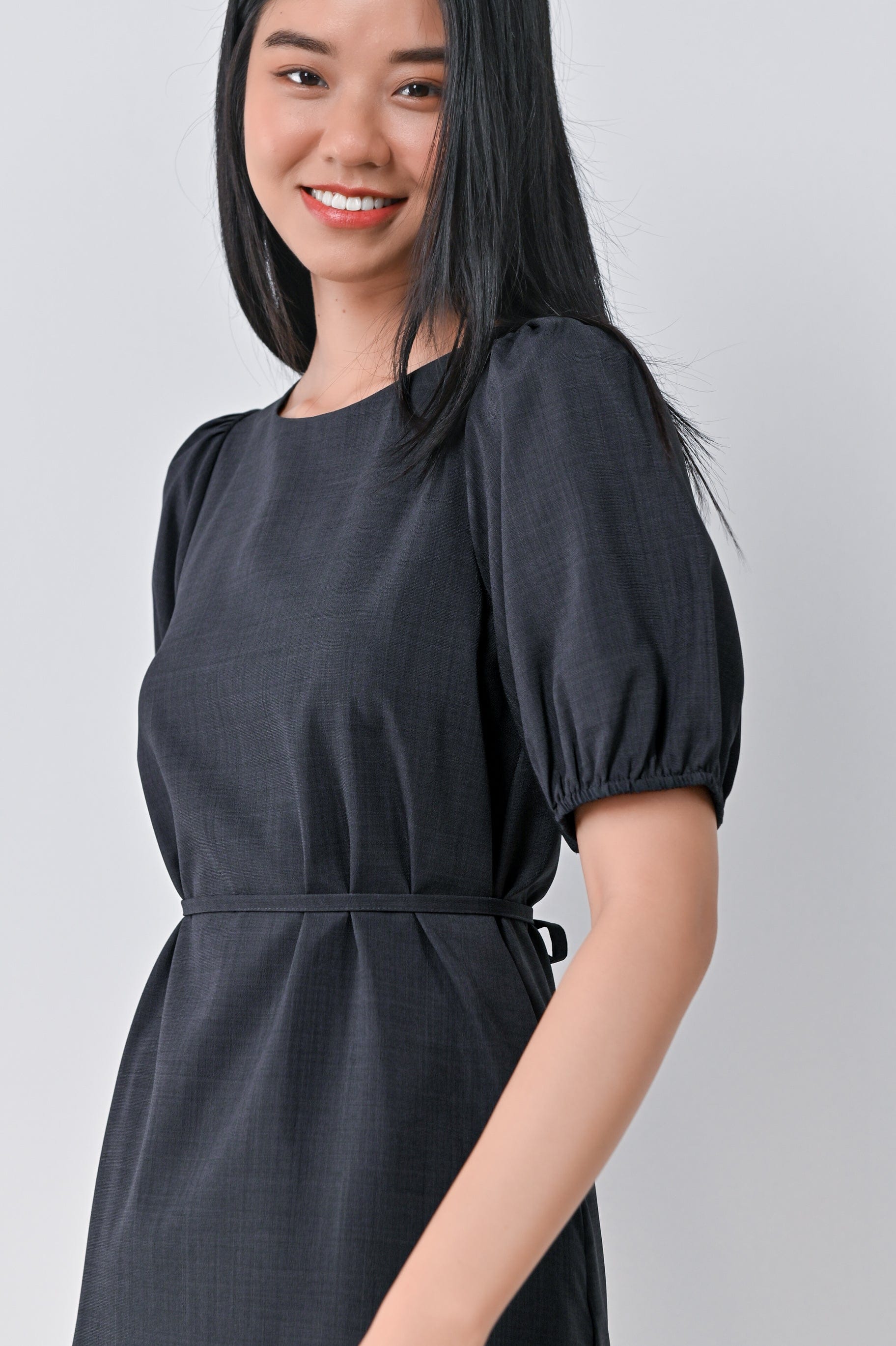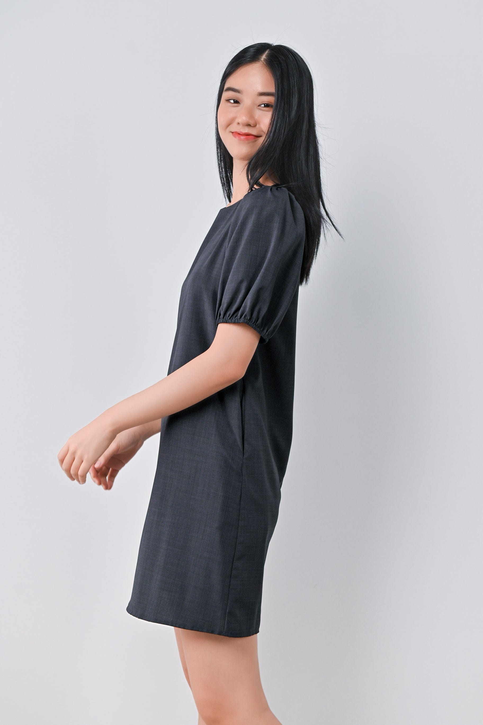 SELA TEXTURED SHIFT DRESS IN GUNMETAL