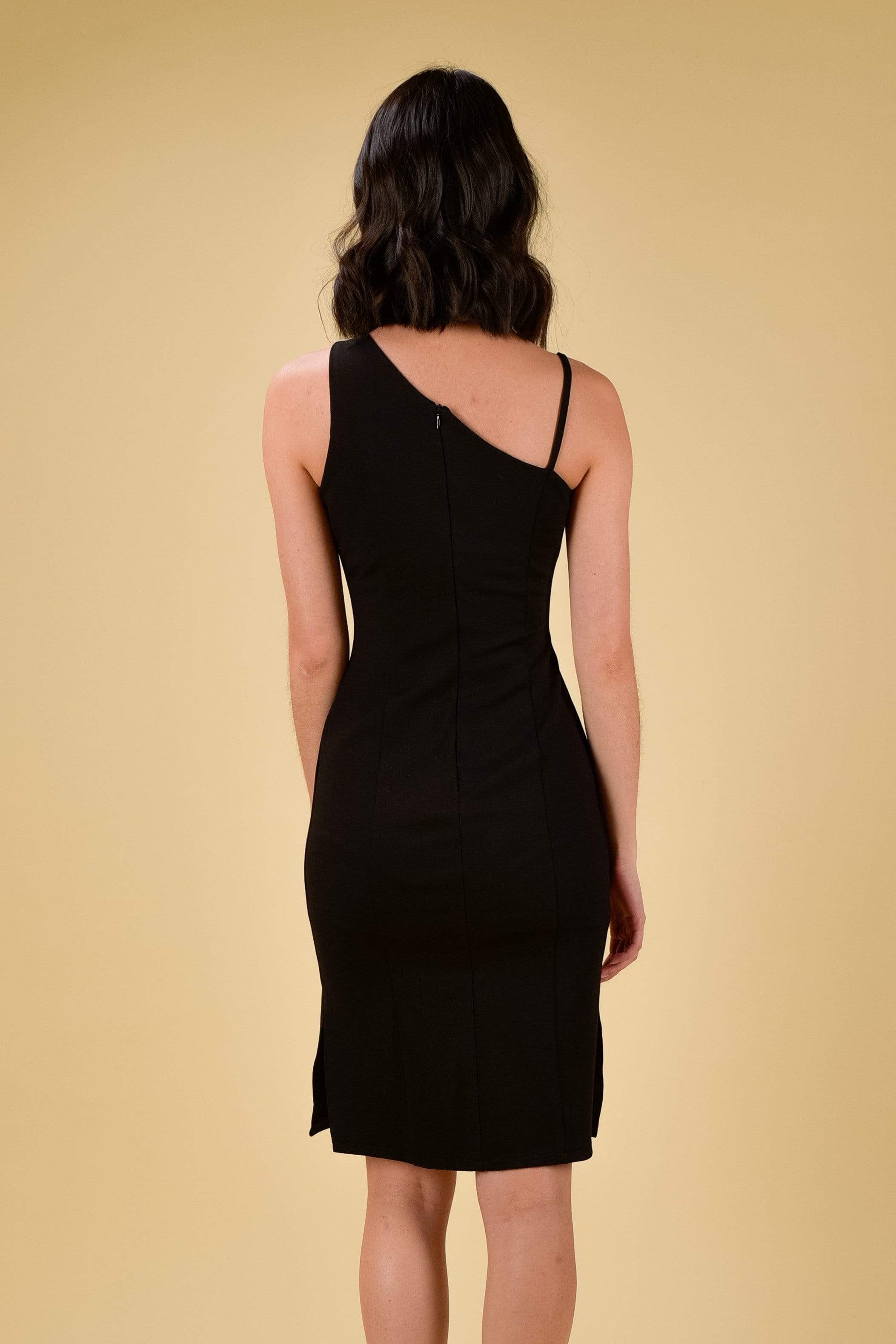 SHIRA ASYMMETRICAL BODYCON DRESS IN BLACK