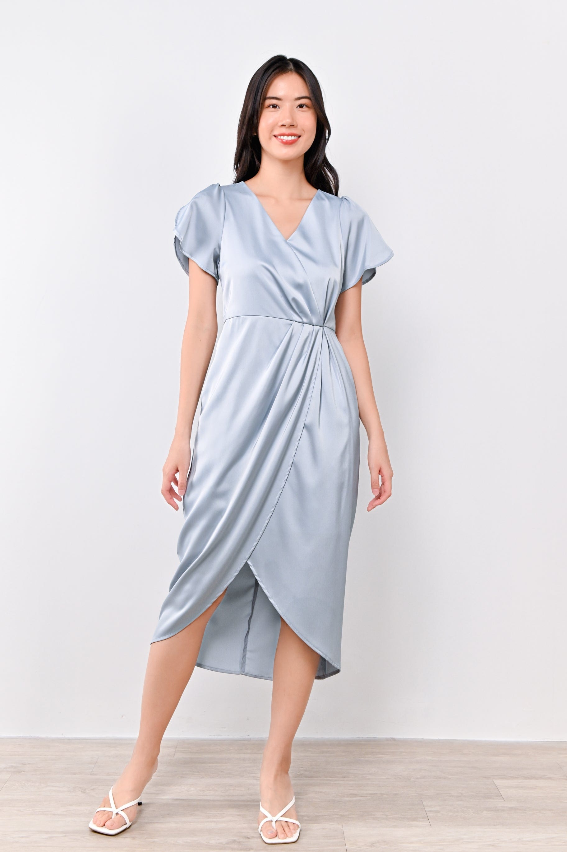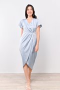 SOMI SLEEVED OVERLAP DRESS IN LIGHT-BLUE