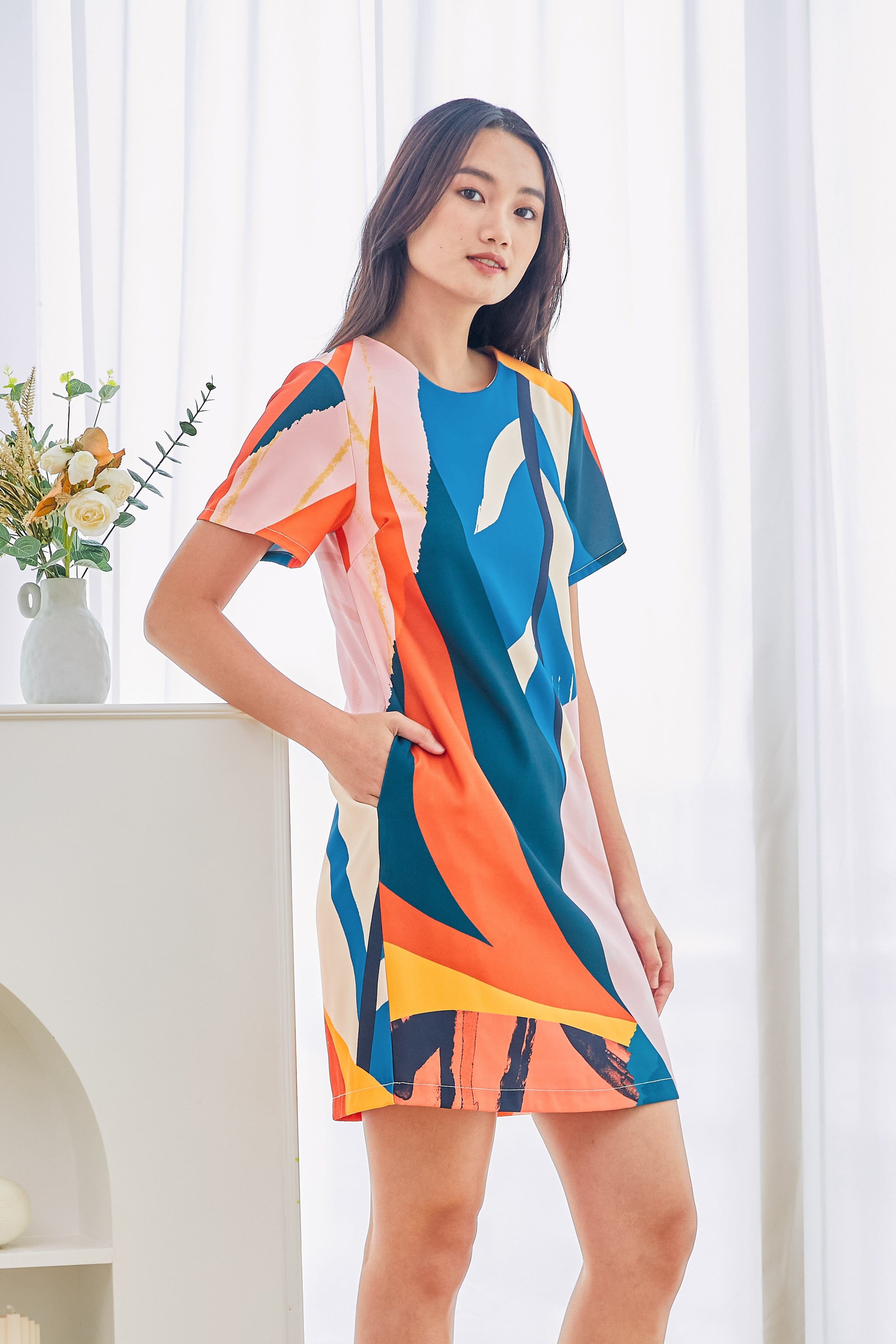 TAS X AWE SLEEVED SHIFT DRESS IN SYNGONIUM