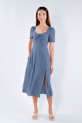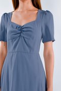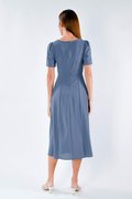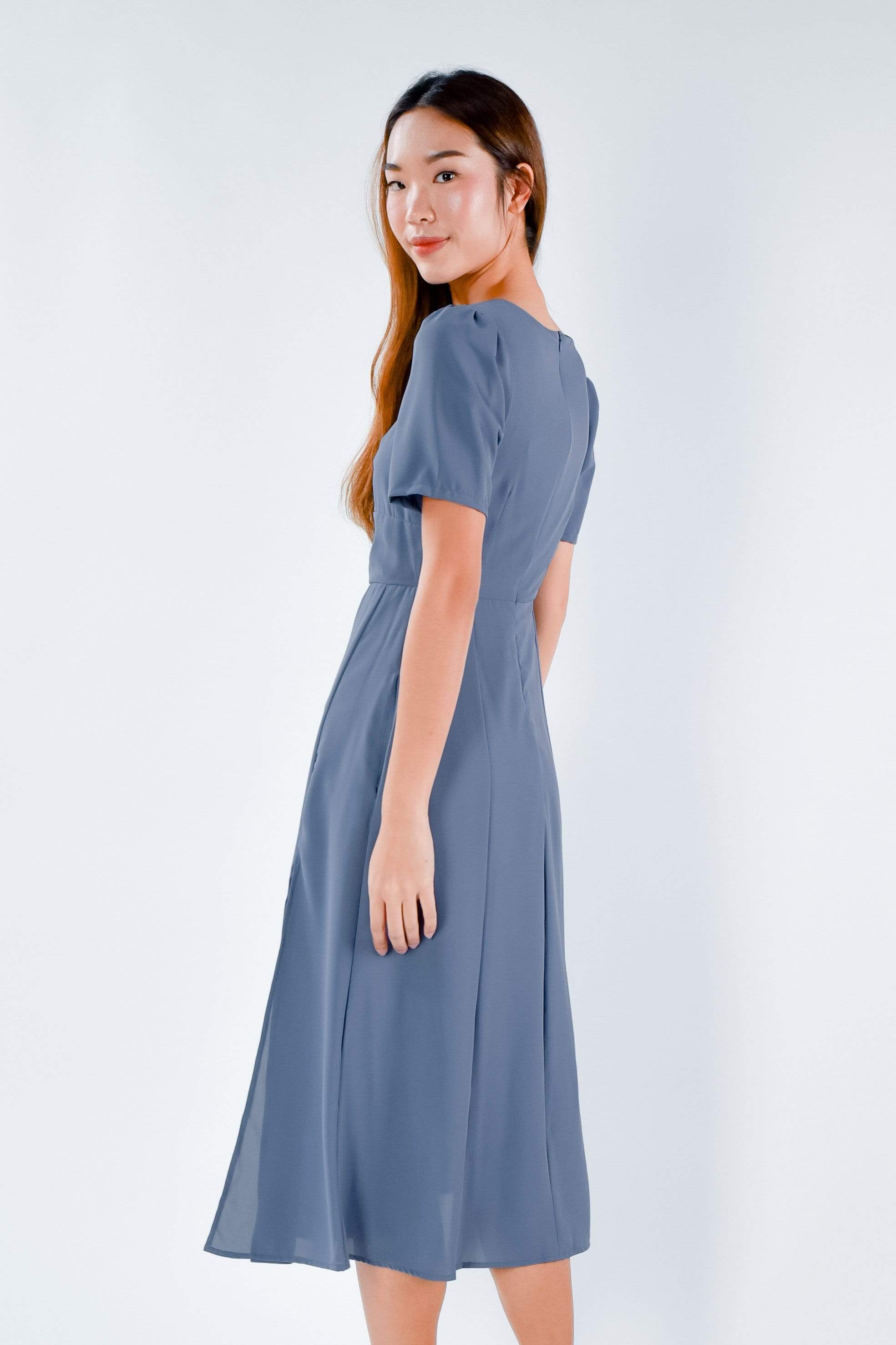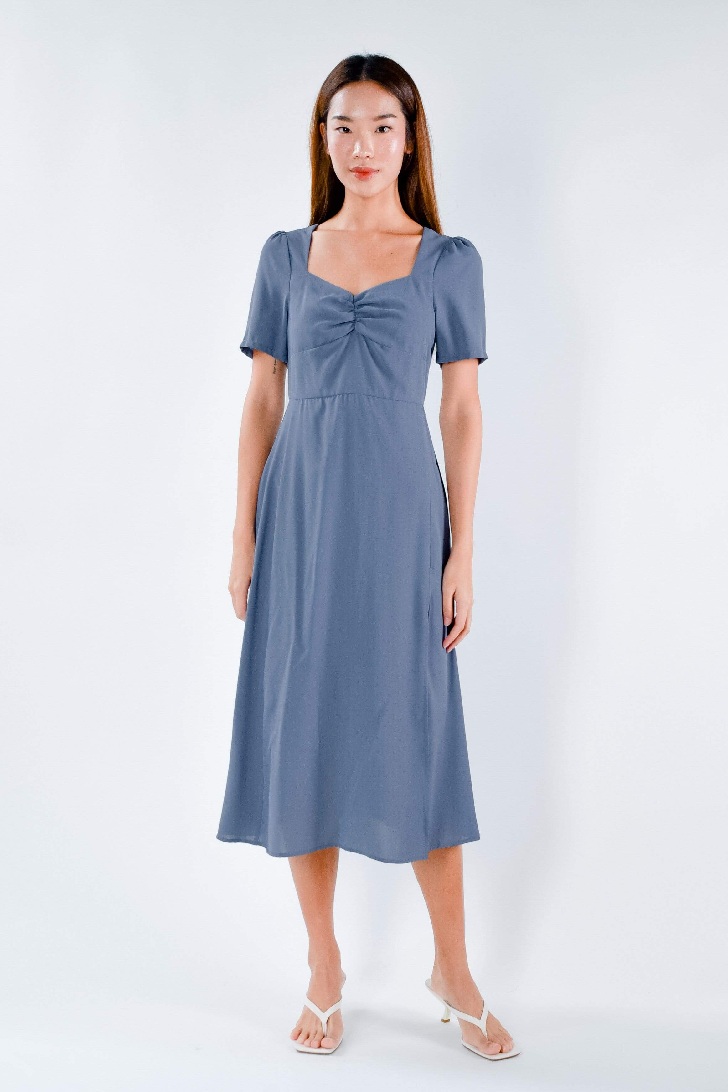 WEN SLEEVED RUCHED DRESS IN BLUE