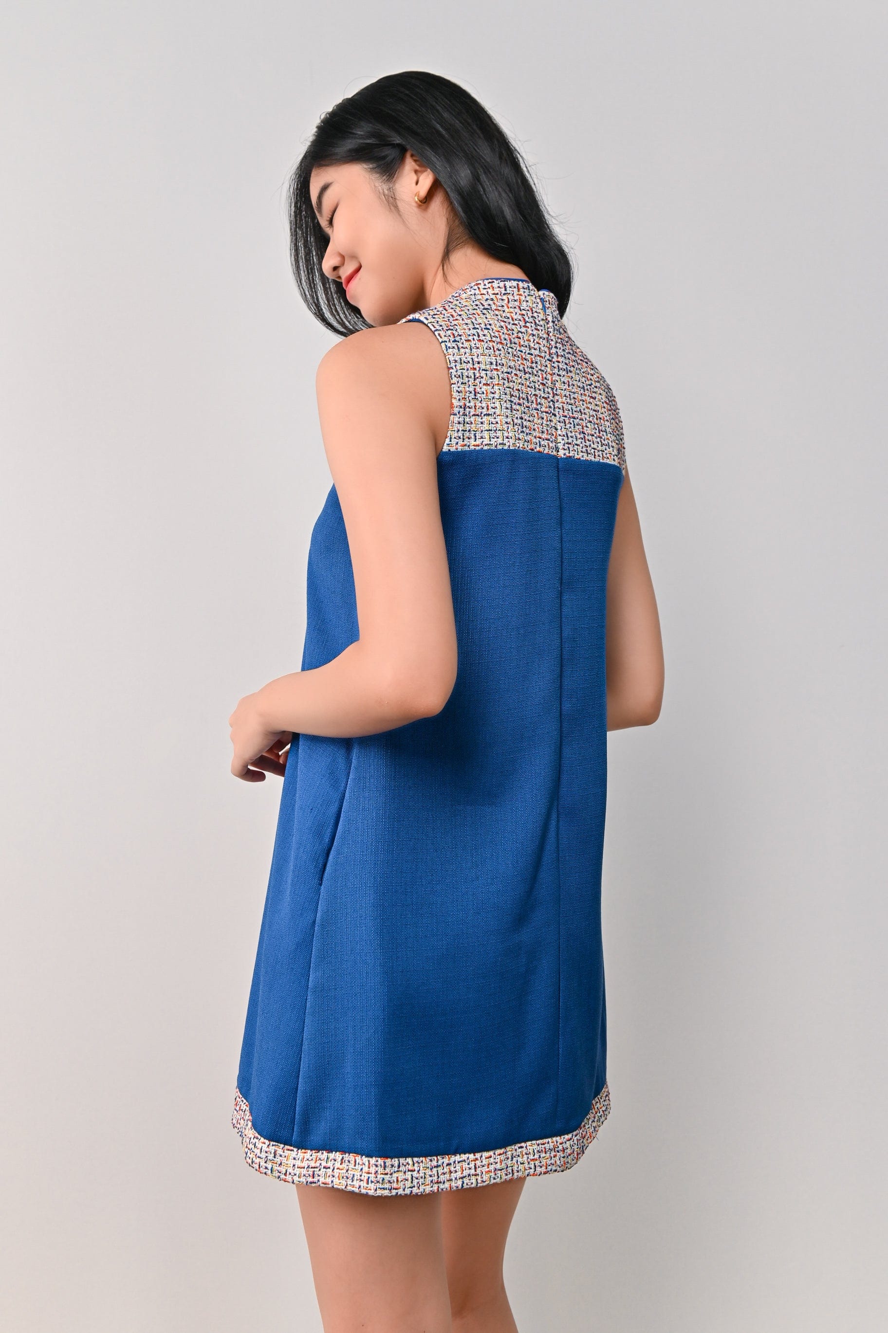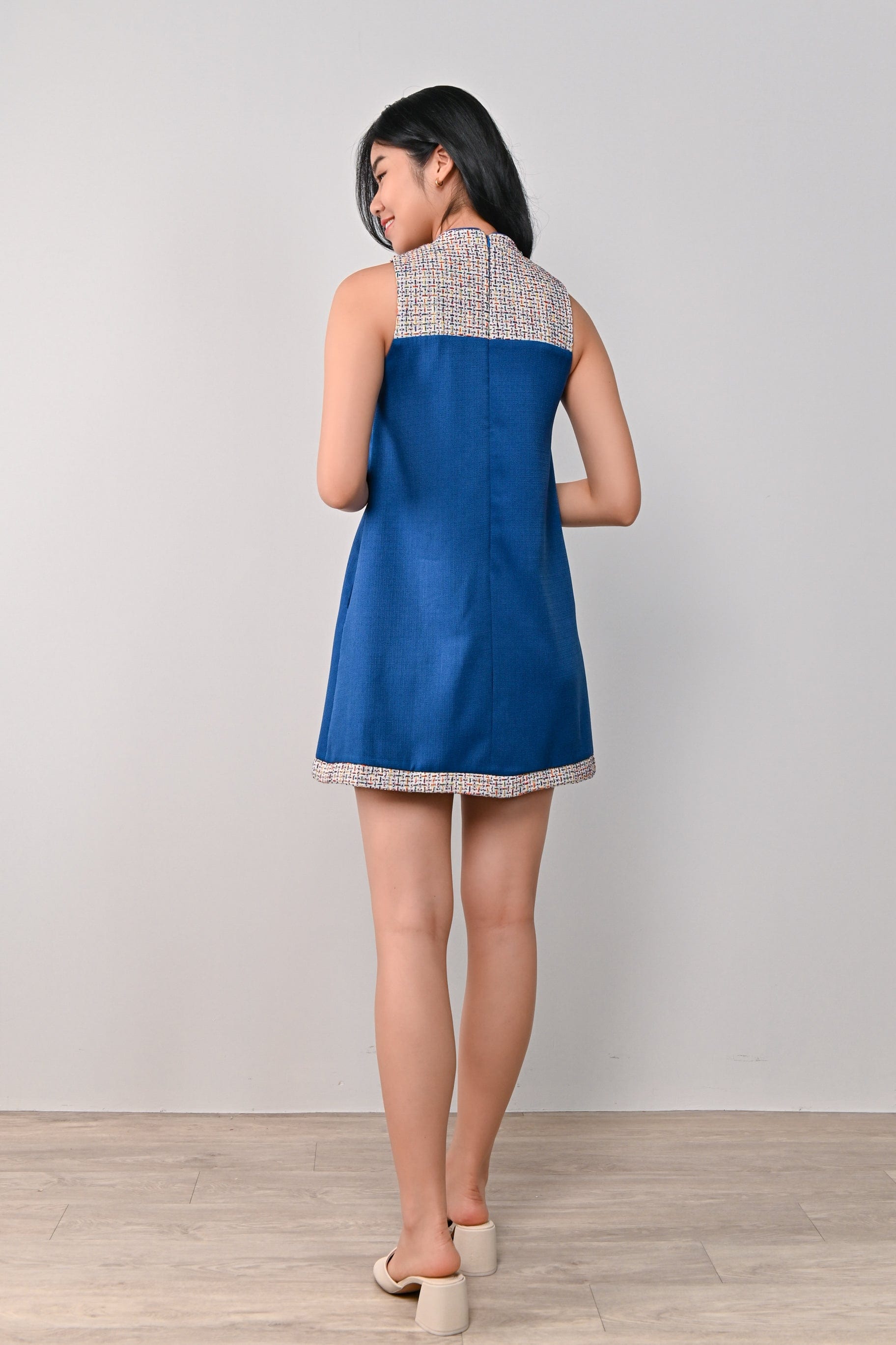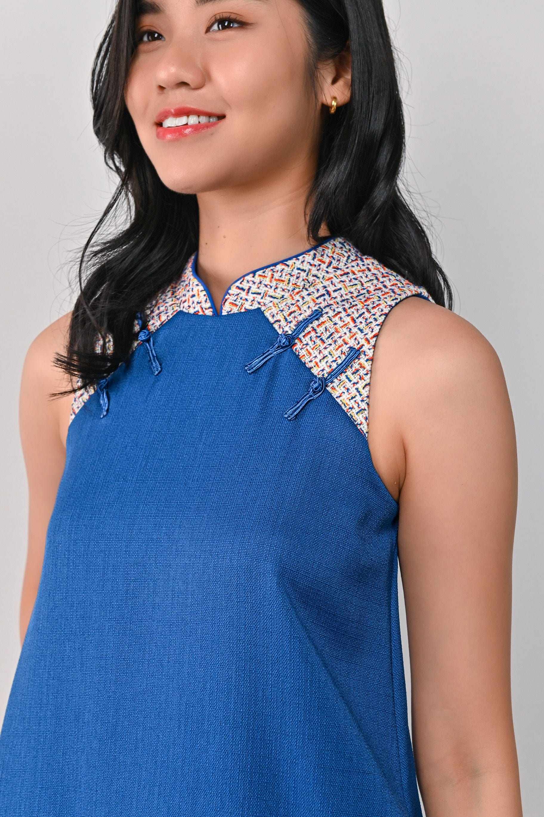 YI MIX-FABRIC CHEONGSAM IN BLUE