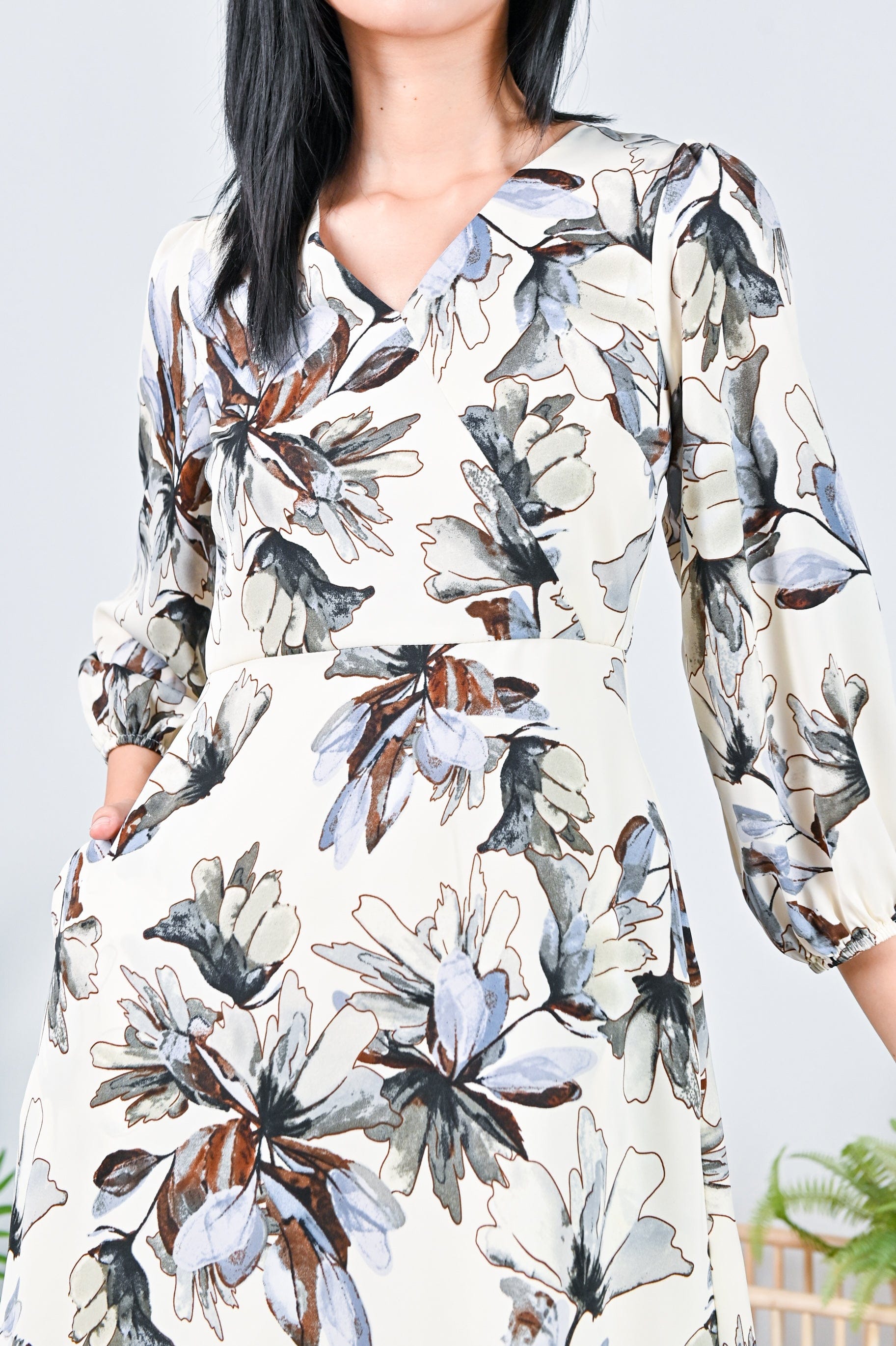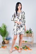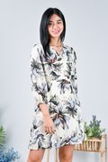 ZINCY FLORAL LONG-SLEEVE DRESS IN CREAM