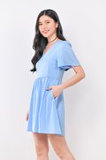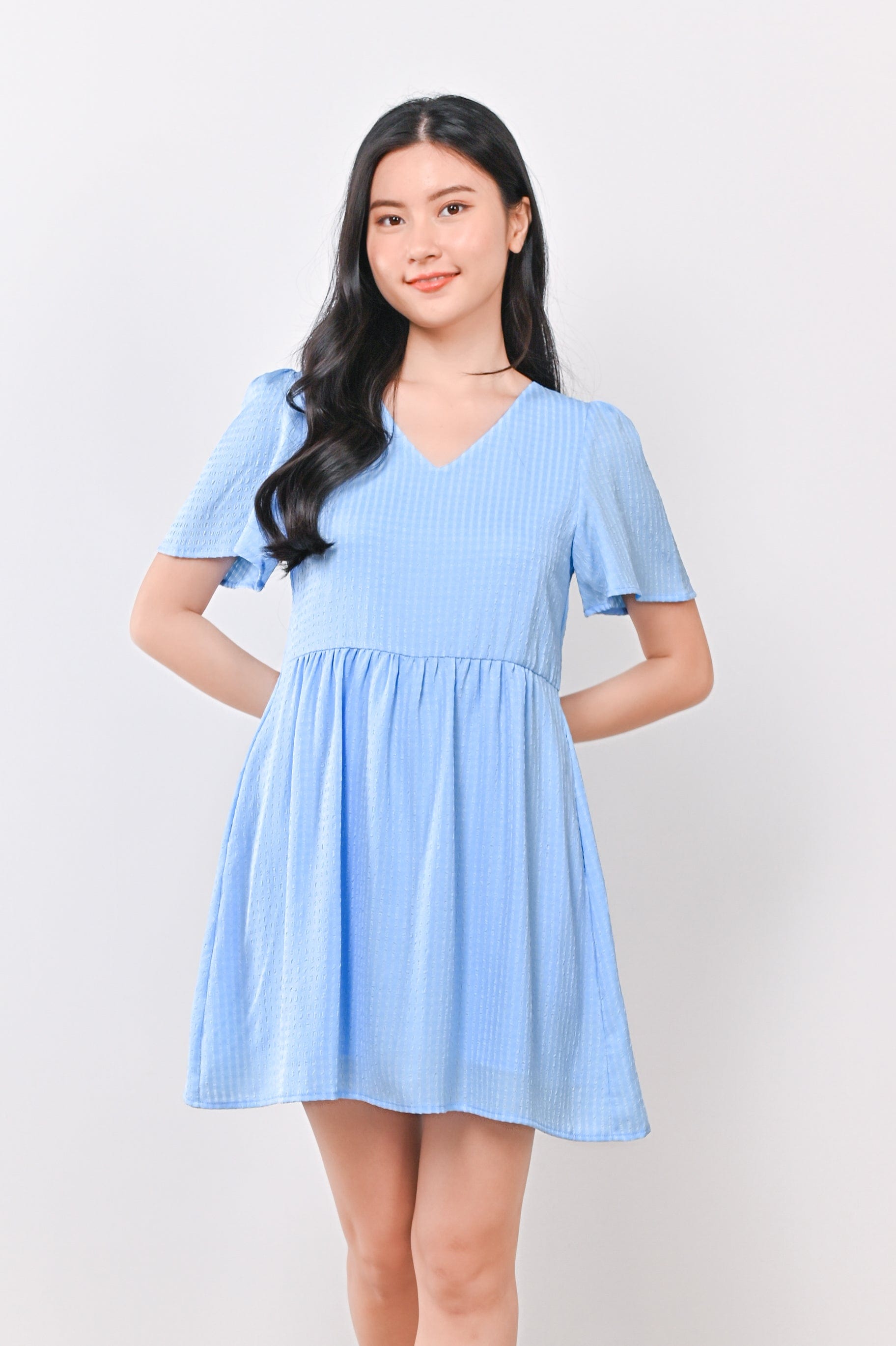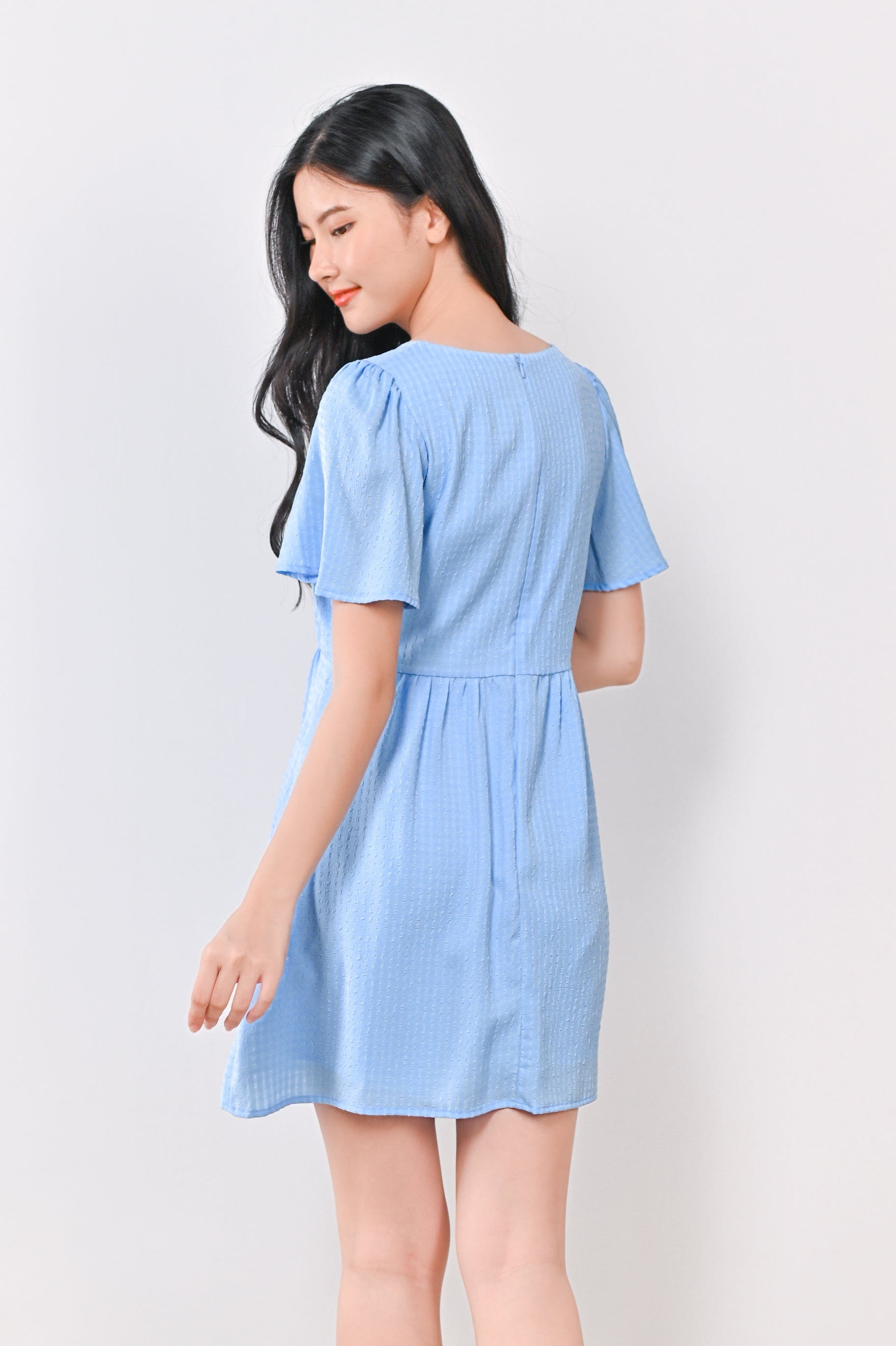 AMBER TEXTURED DRESS-ROMPER IN BLUE