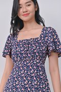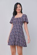 CARENE RUCHED DRESS-ROMPER IN BLUE
