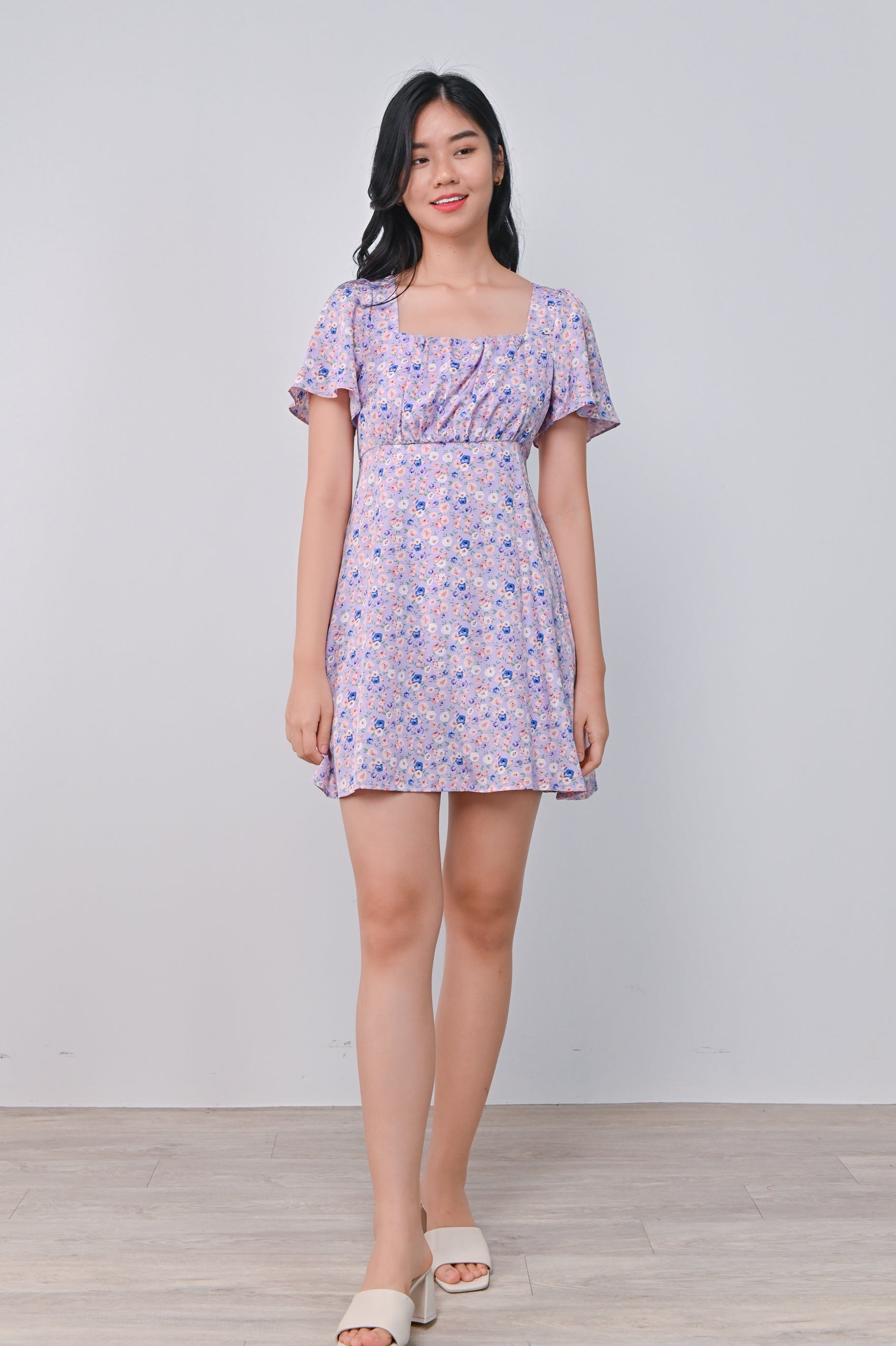 CARENE RUCHED DRESS-ROMPER IN LILAC